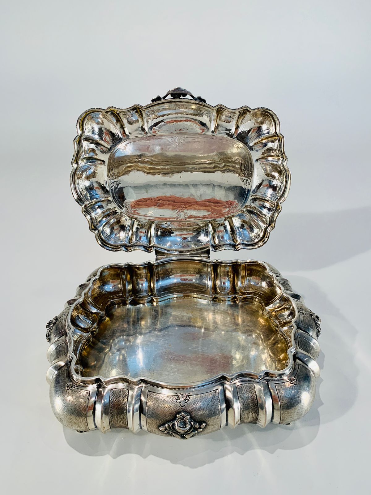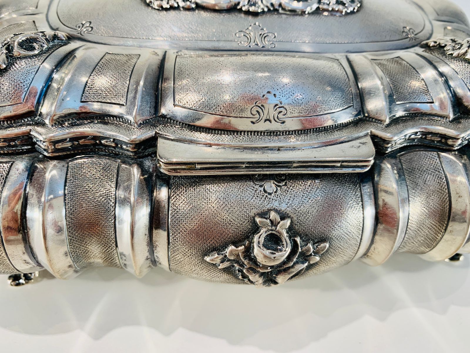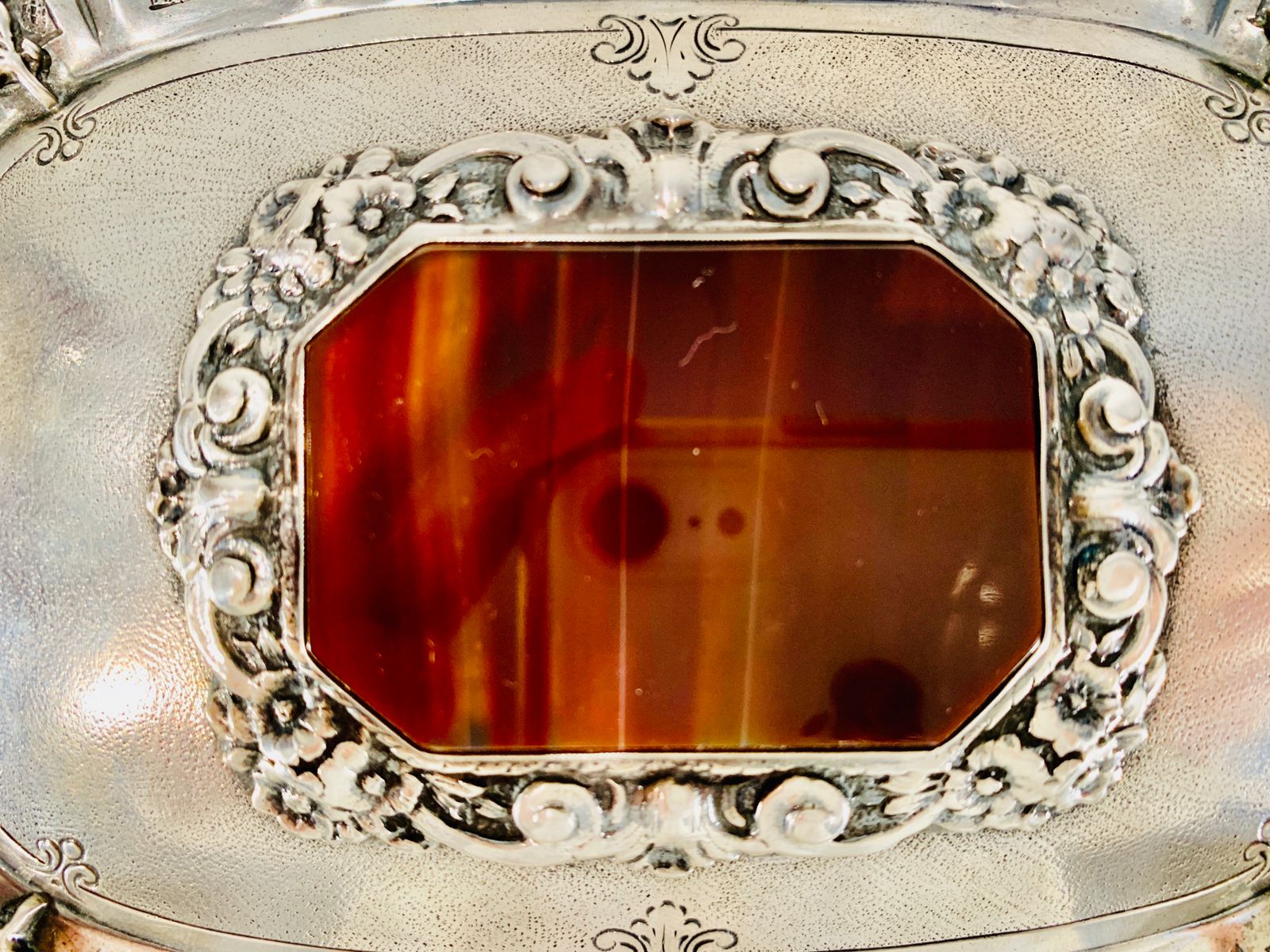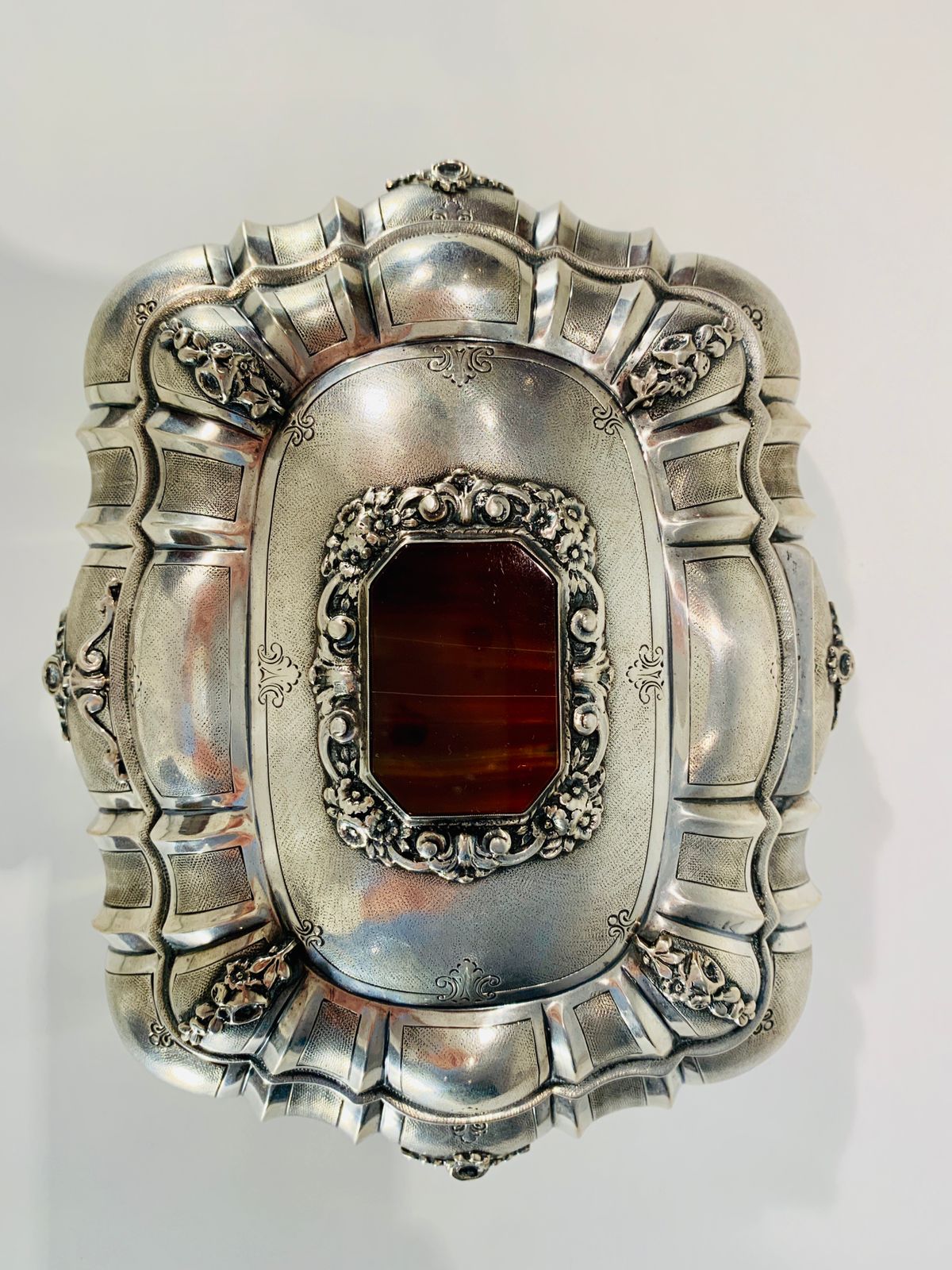 Prata portuguesa circa 1850 representando caixa com Ágata incrustada na tampa.