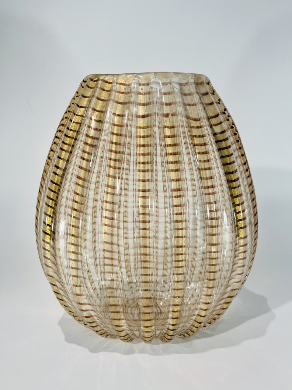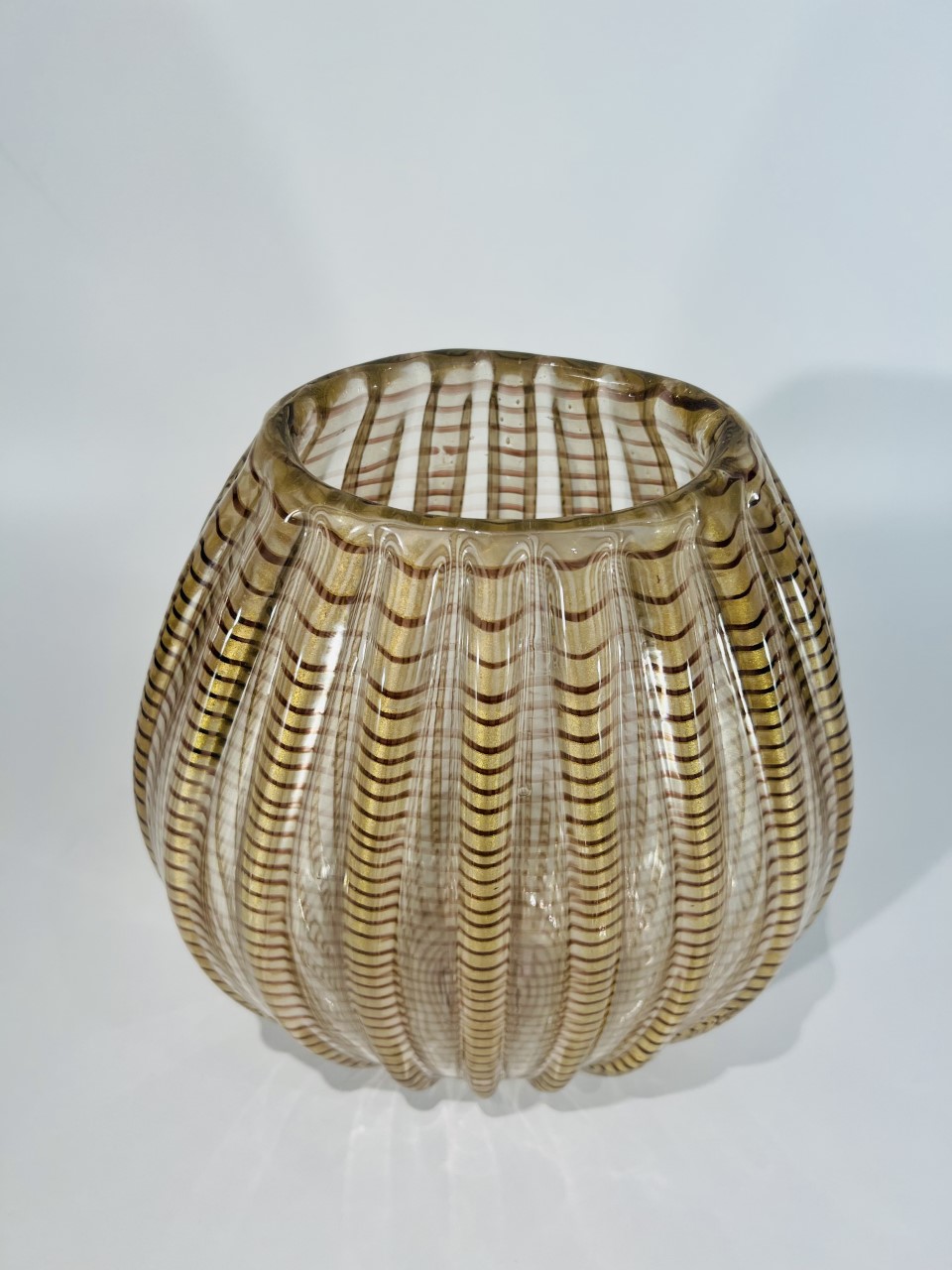 MURANO vaso em vidro artístico soprado de Murano “zebrato” Barovier&Toso 1948