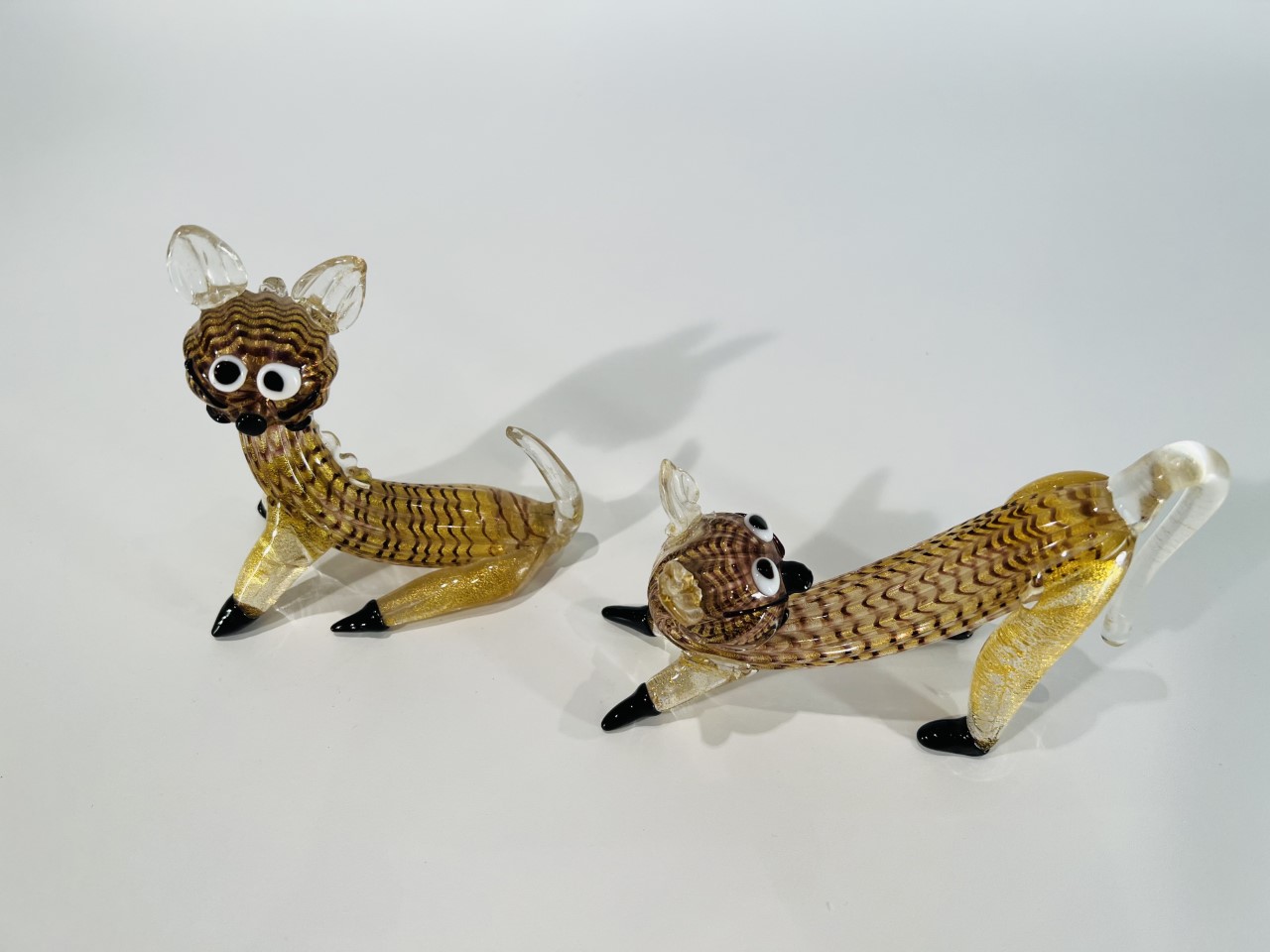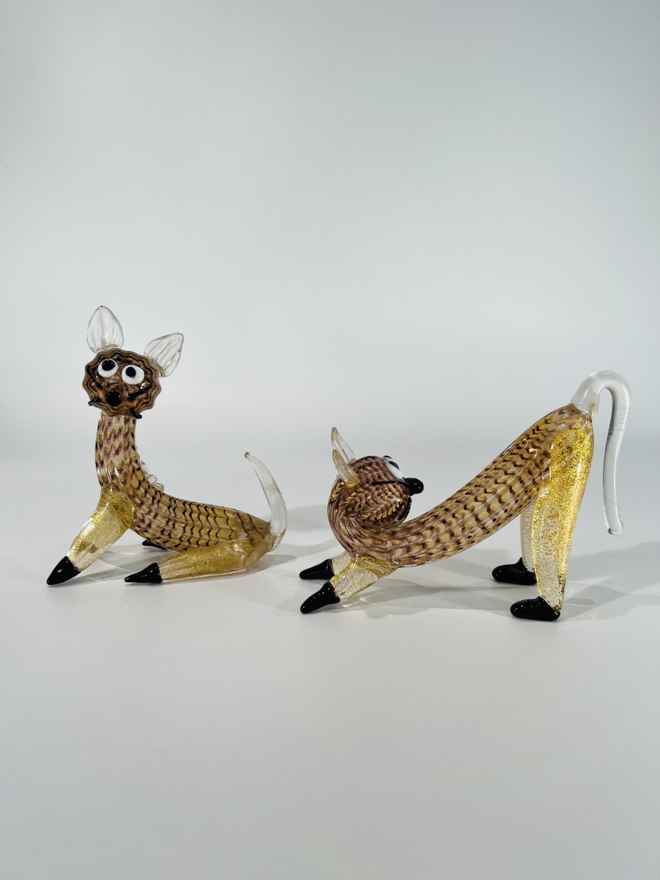 MURANO Par de esculturas em vidro artístico soprado de Murano “zebrato oro” Barovier&Toso 1948 catalogadas.