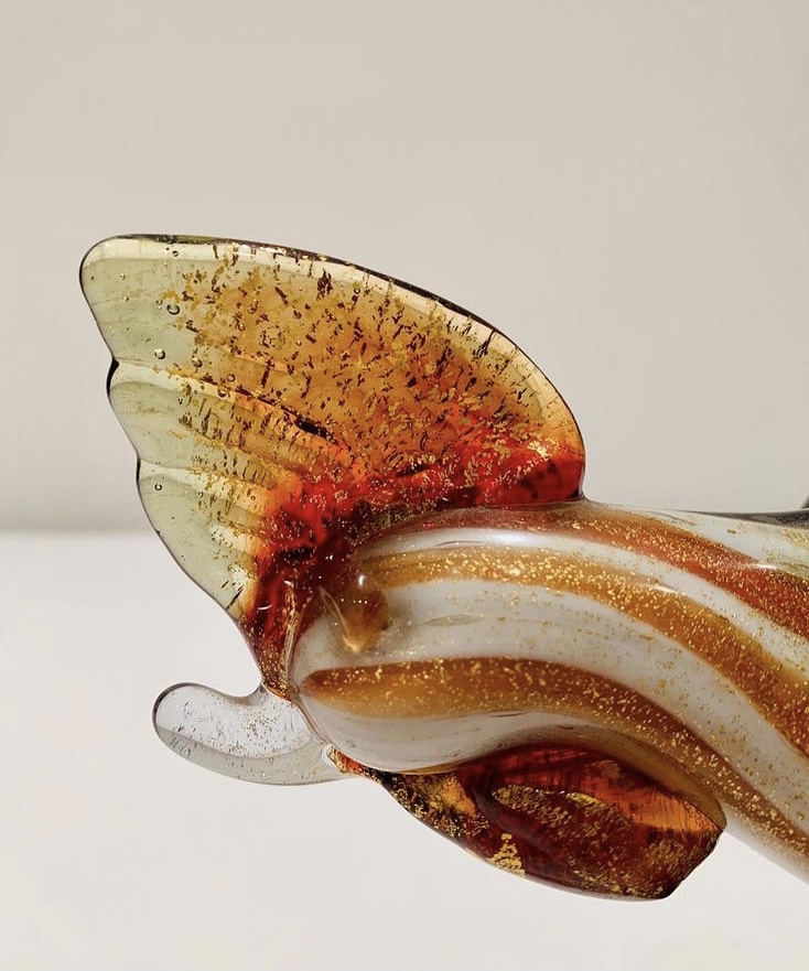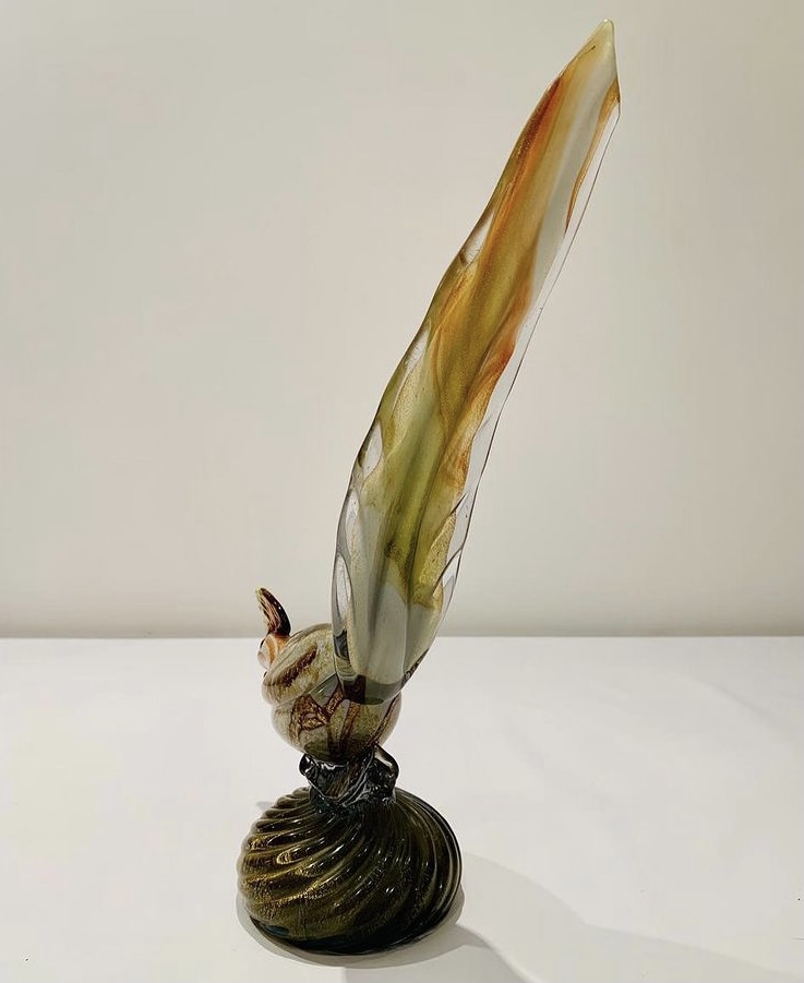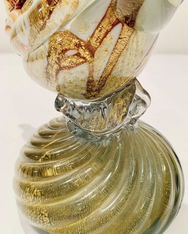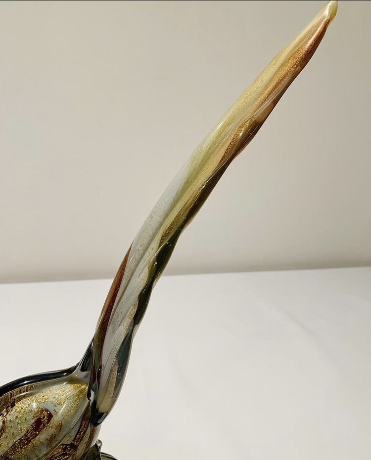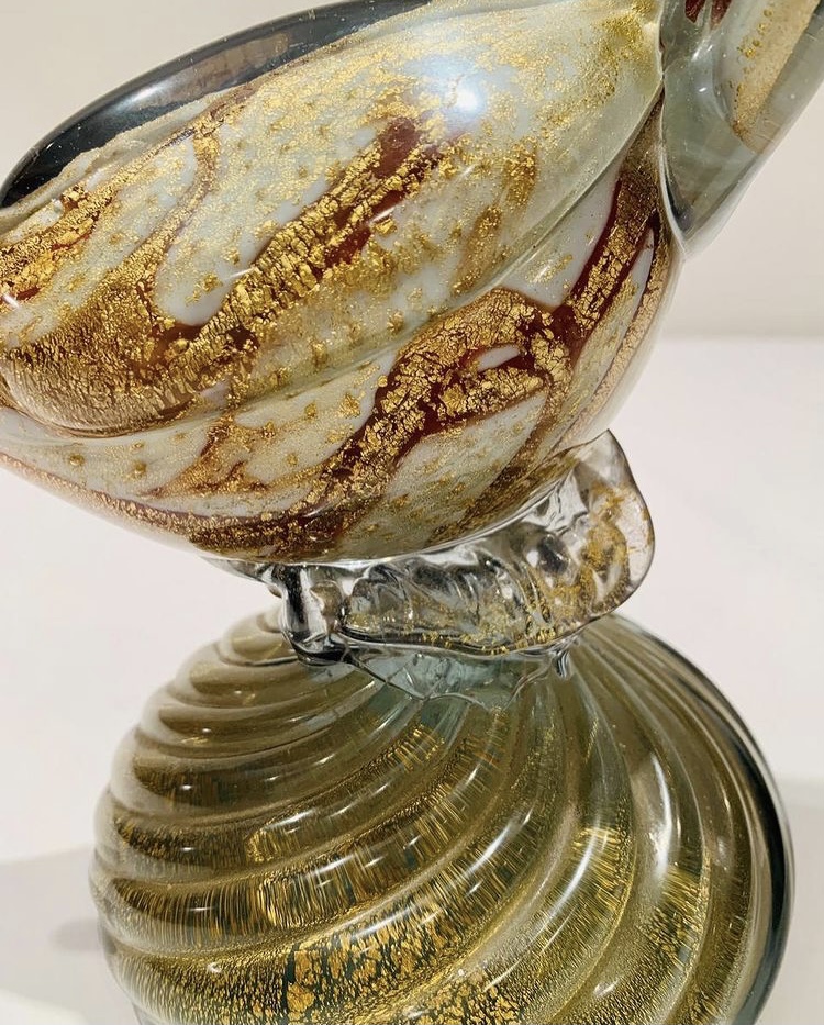 Murano ALBARELLI 1950 Escultura em vidro artístico soprado de Murano com partes aplicadas, bolhas de ar e folha de ouro. Peça única.