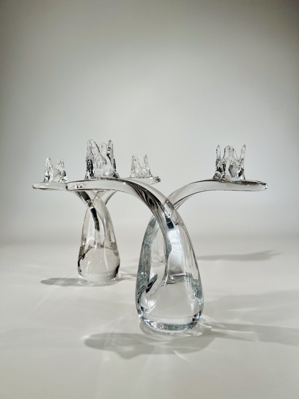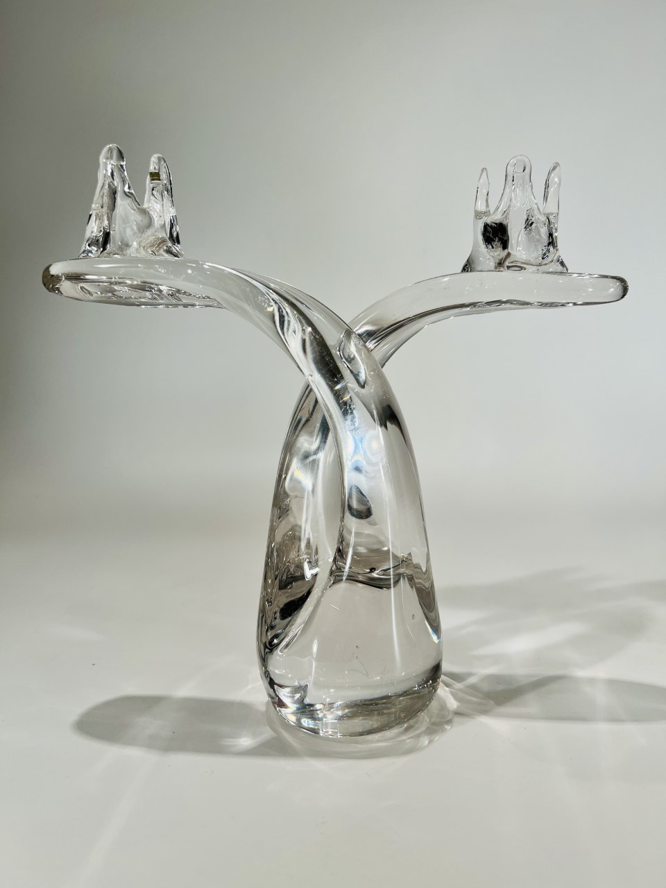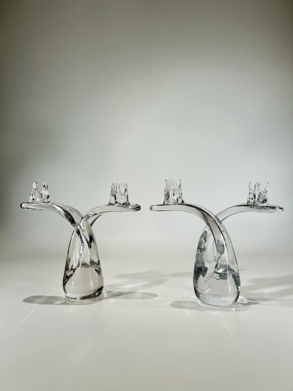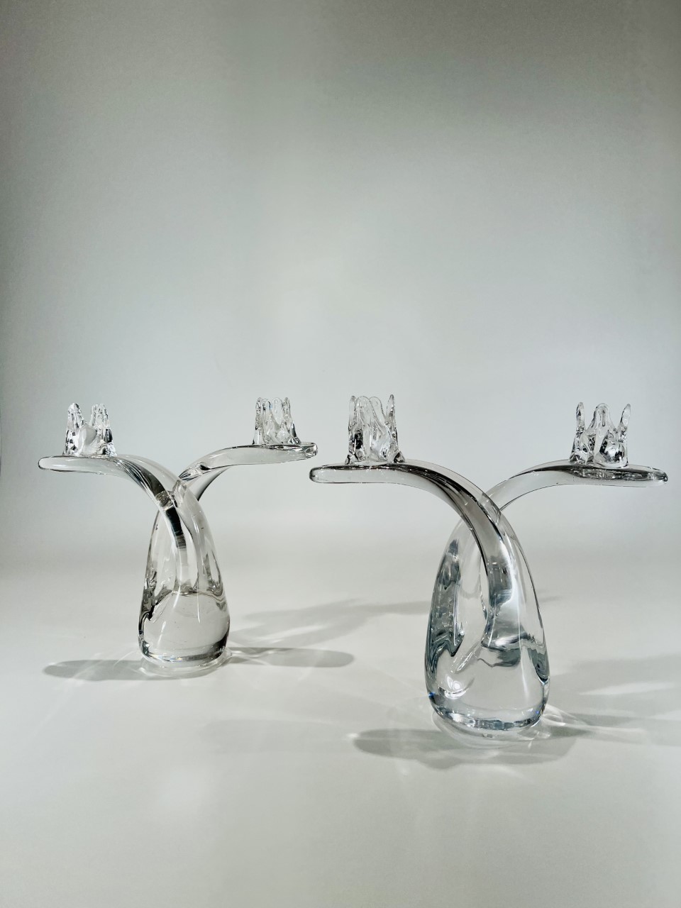 Par de candelabros em cristal europeu dos anos 1970 para duas velas