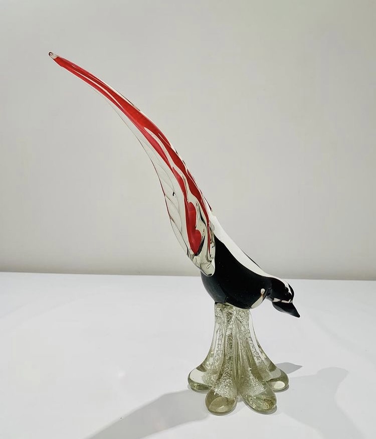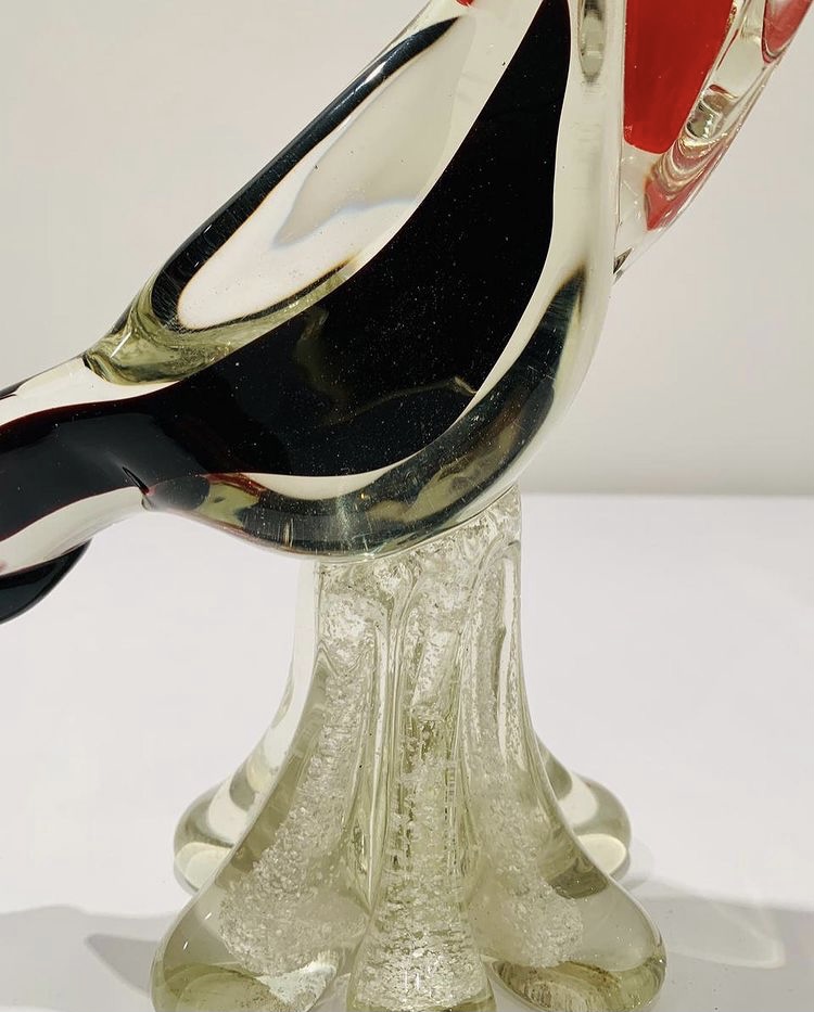 Murano ANTONIO da ROS 1950 Escultura em vidro artístico soprado de Murano com partes aplicadas e folha de prata. Peça única.