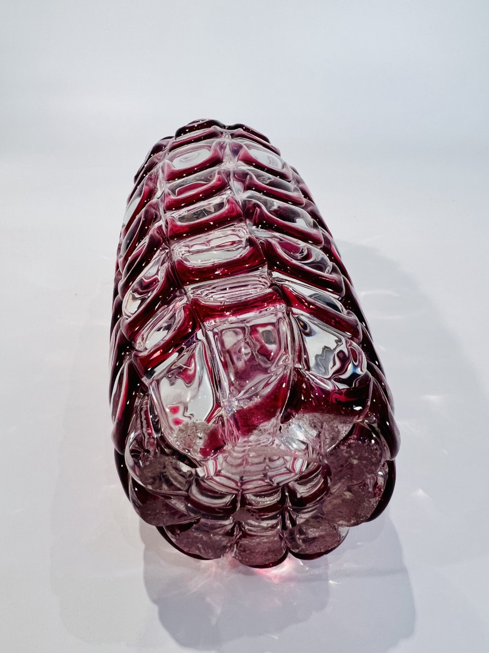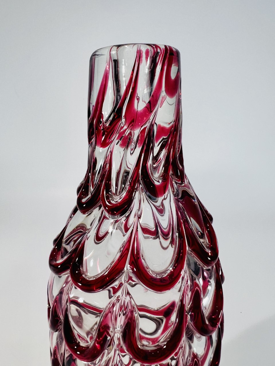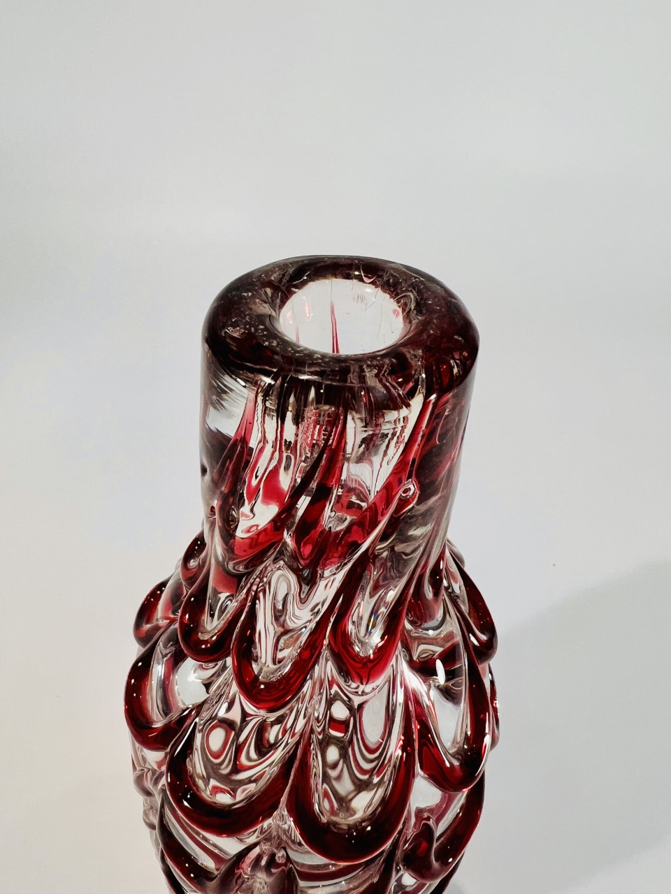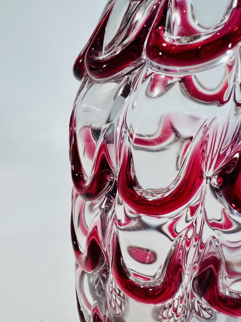 Murano vaso em vidro artístico soprado de Murano atribuído a Ercole Barovier 1955 com repuxado em “cristalo rubino”