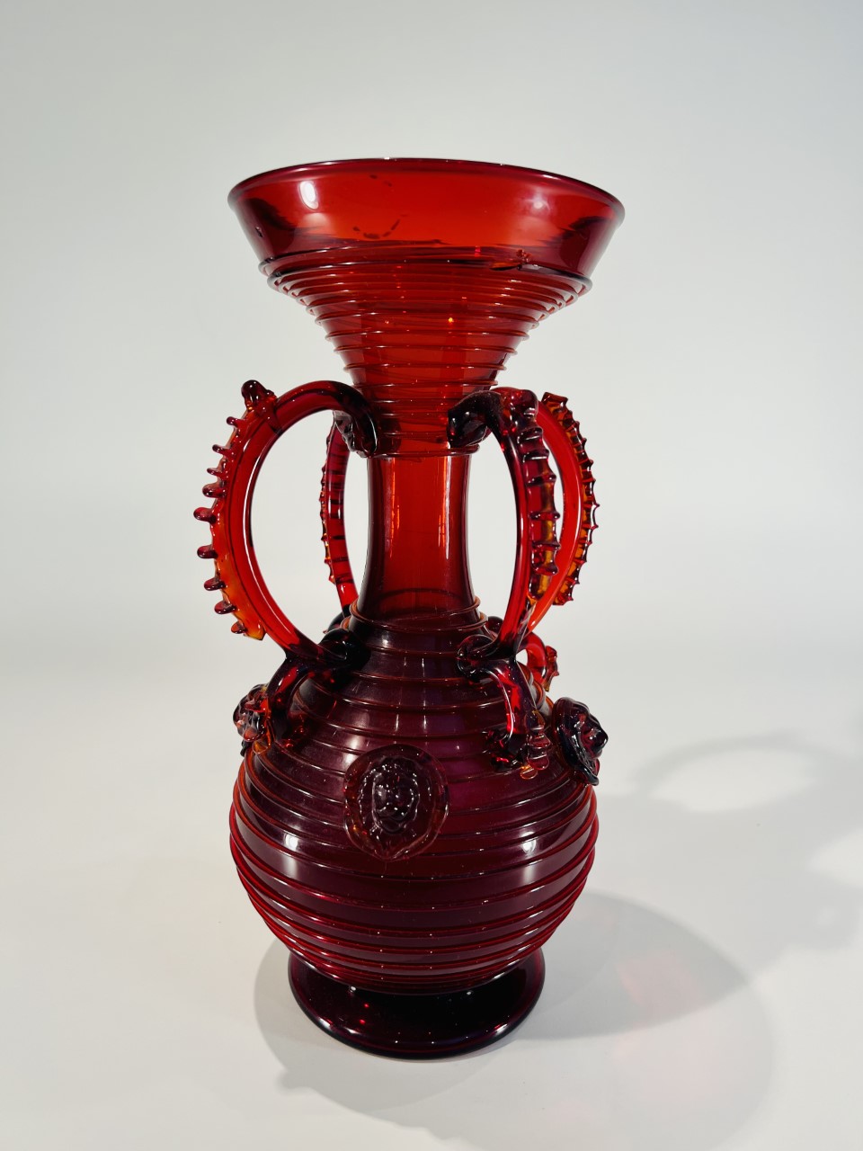 Murano vaso em vidro artístico soprado de Murano produzido por Zecchin Martinuzzi 1930 com múltiplas aplicações