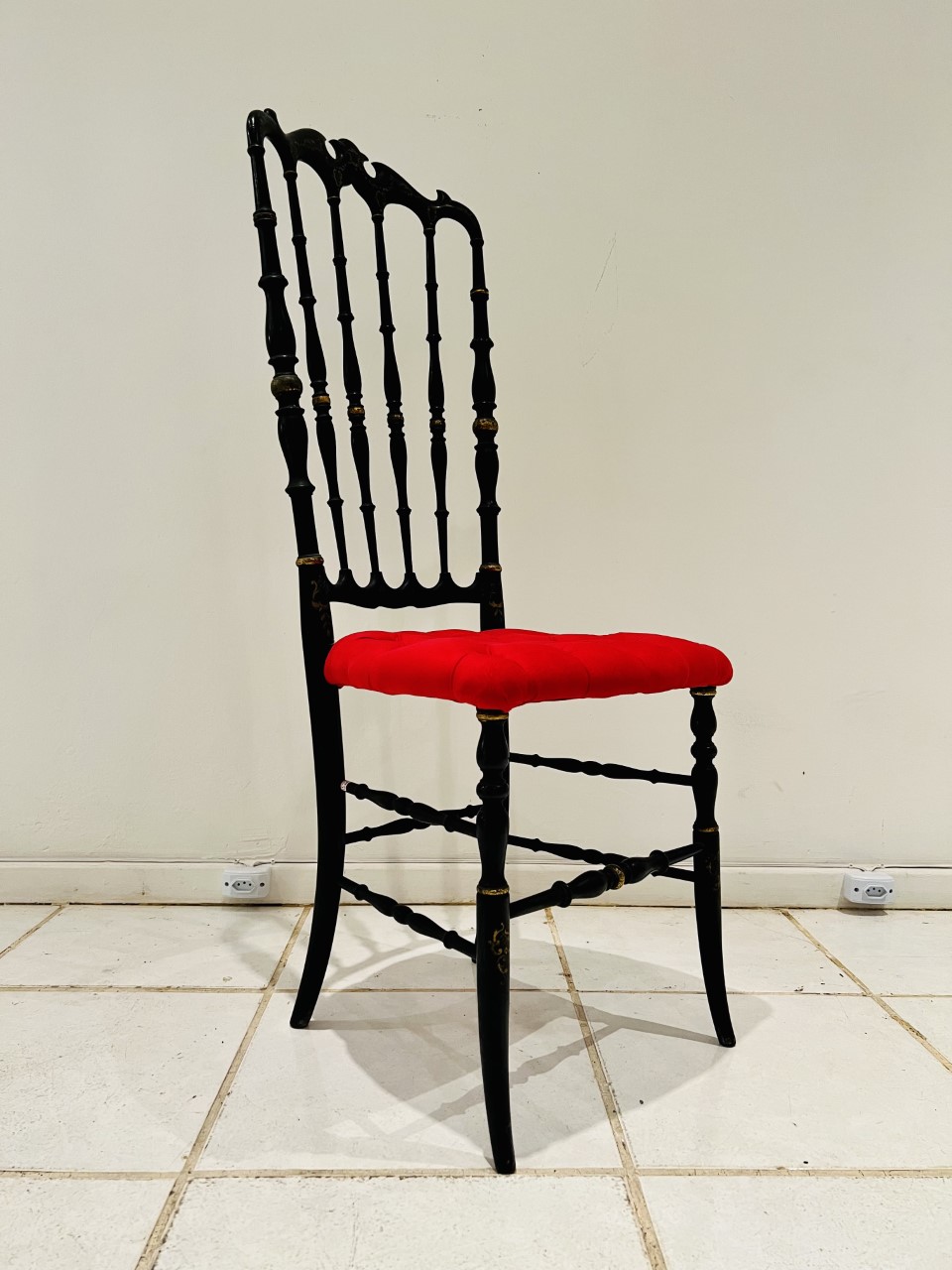 Conjunto de 4 cadeiras Venezianas em madeira laqueada e pintura com estofo em tecido sec XIX
