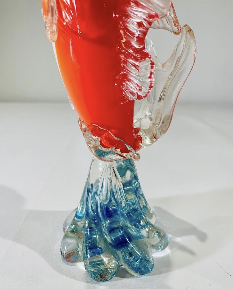 Murano ZANETT vaso escultural em vidro artístico soprado de Murano com partes aplicadas e folha de ouro, 1950. Peça única.