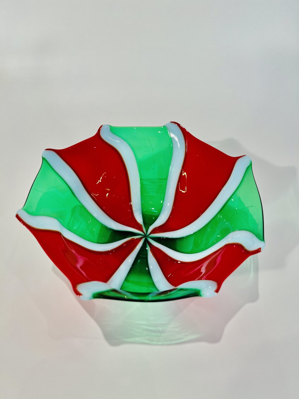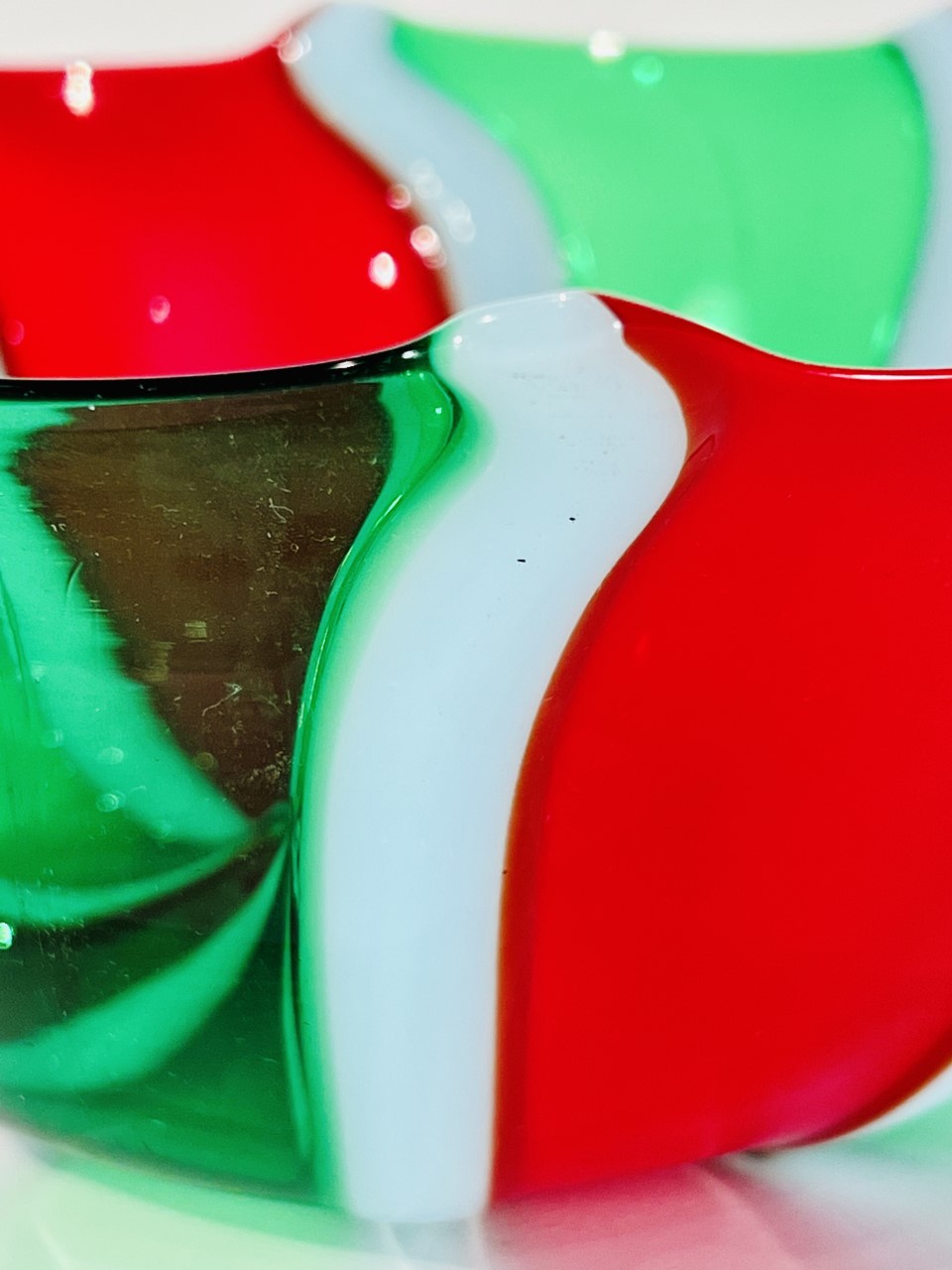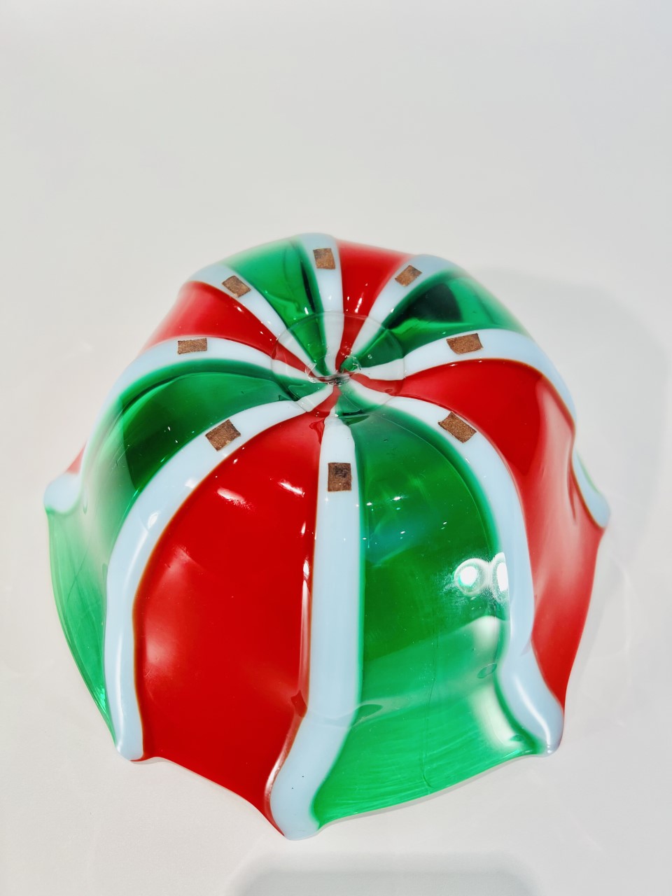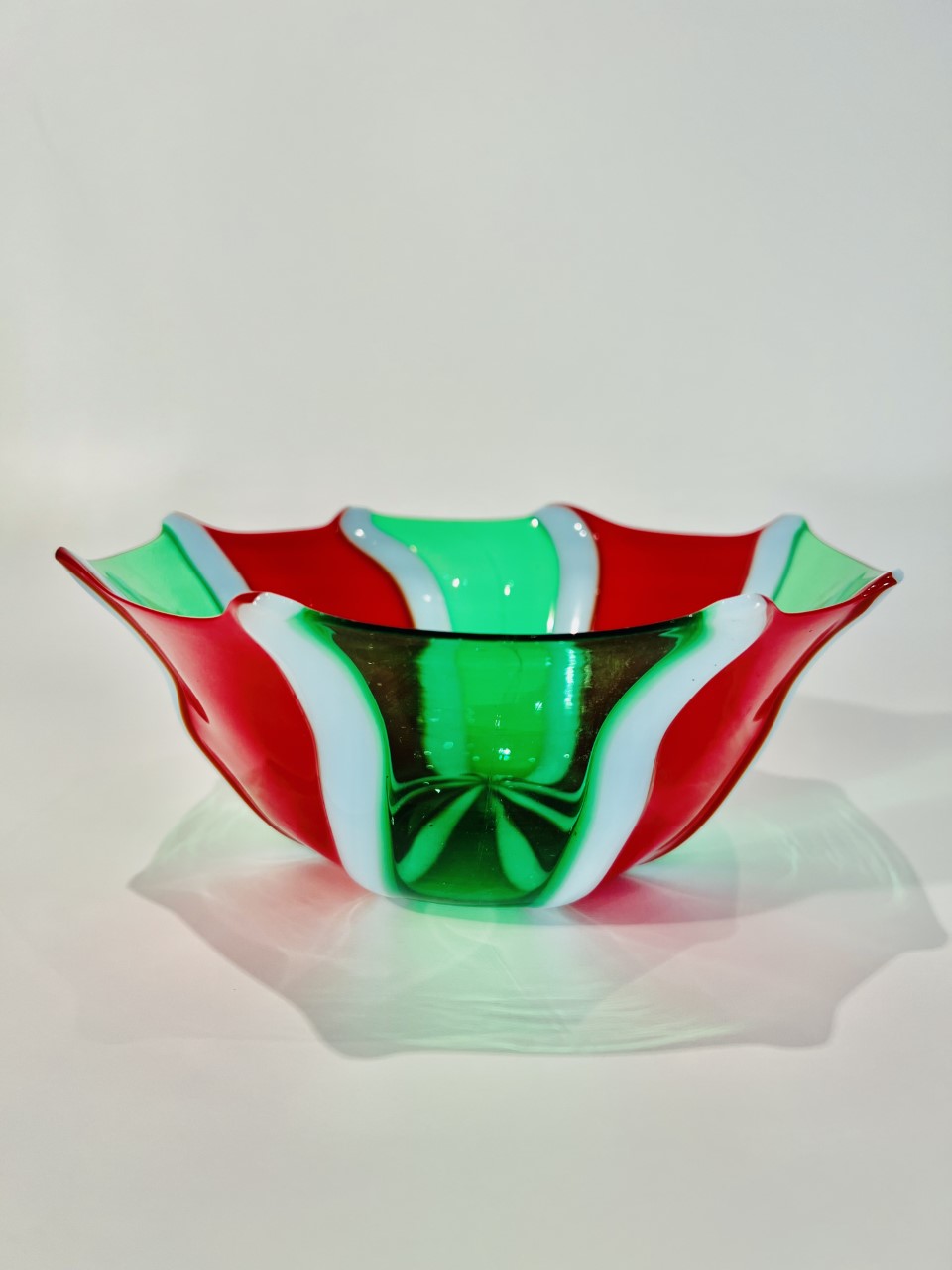 Bowl em vidro artístico soprado de Murano produzido por Fratelli Toso desenho de SILVANNI 1980