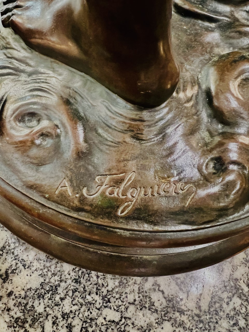 Escultura Art Nouveau em bronze francês assinada na base A.FALGUIERE circa 1900