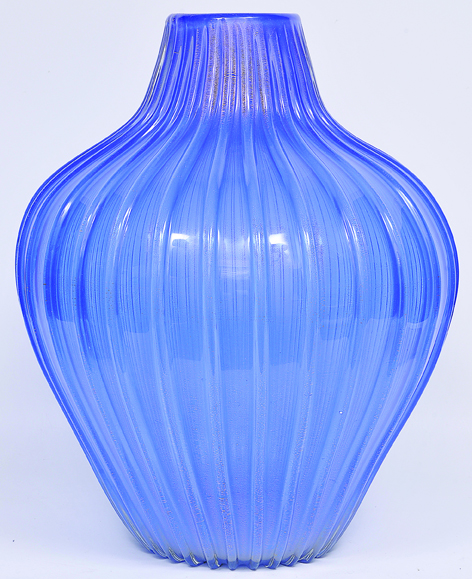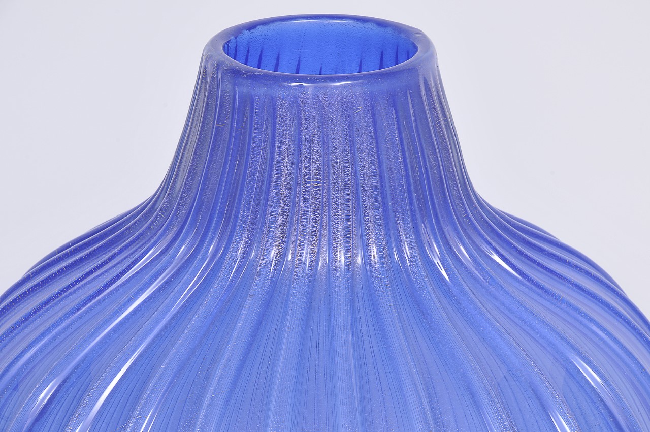 Vaso em vidro artístico soprado de Murano desenho de Archimede Seguso 1950 “costolato oro”