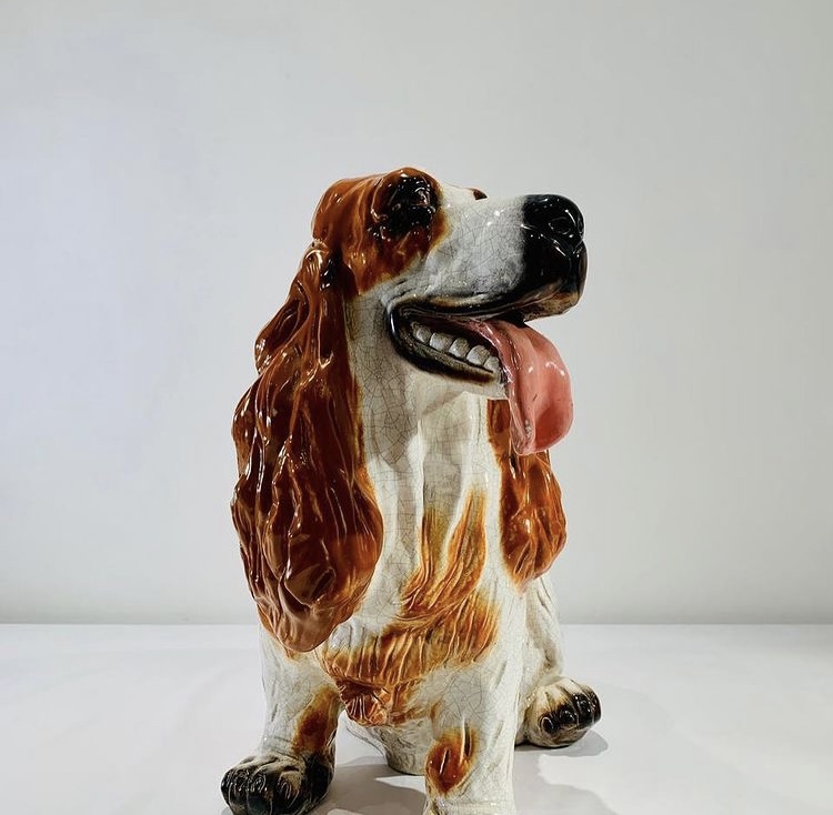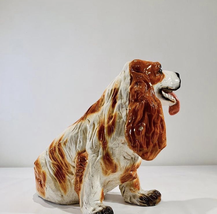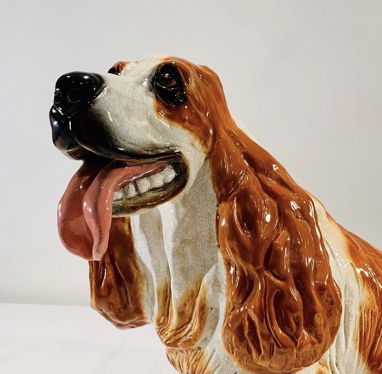 Cocker Spaniel em porcelana italiana policromada em tamanho natural.