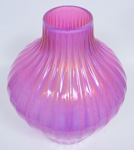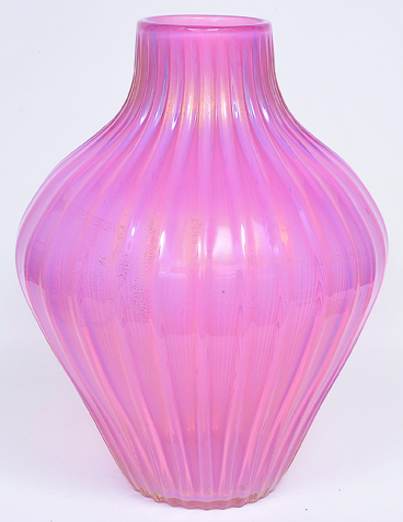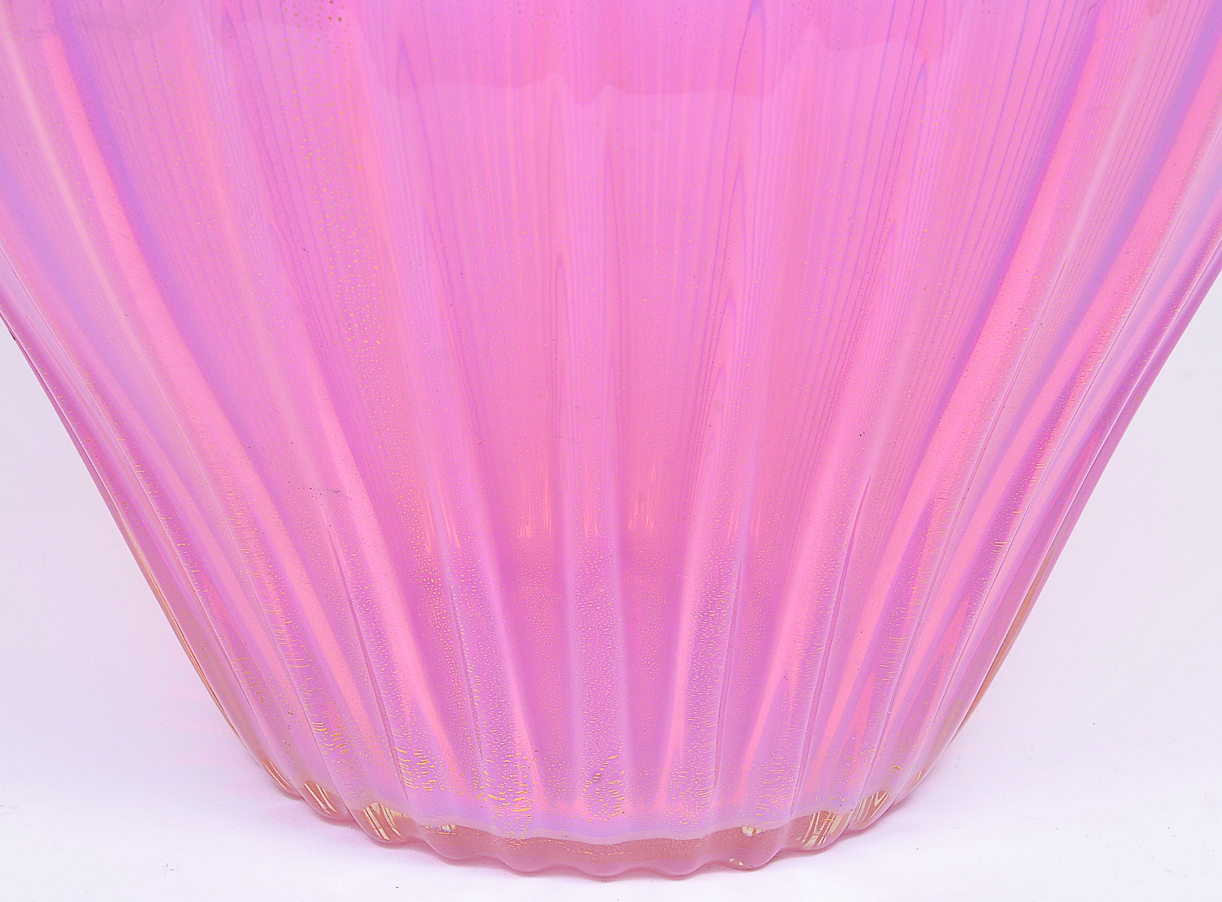 Vaso em vidro artístico soprado de Murano produzido por ARCHIMEDE SEGUSO 1950 “Costolato oro”