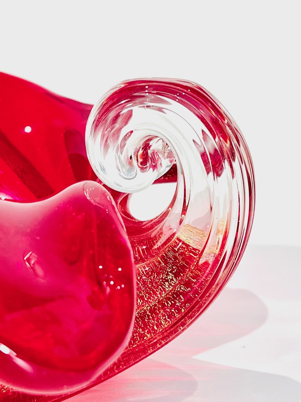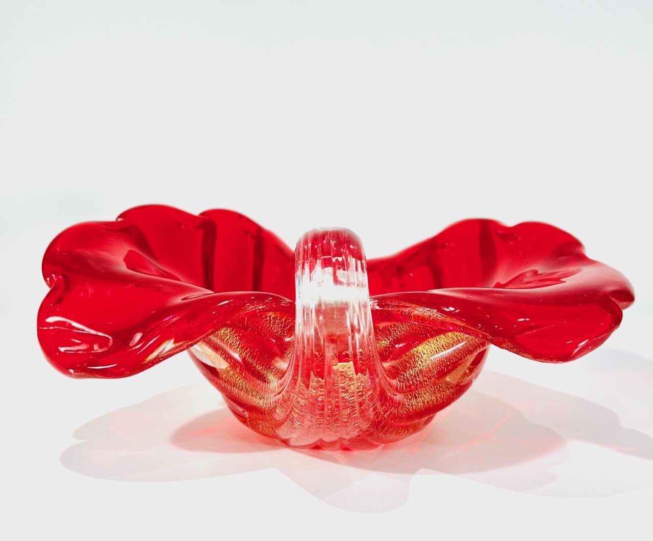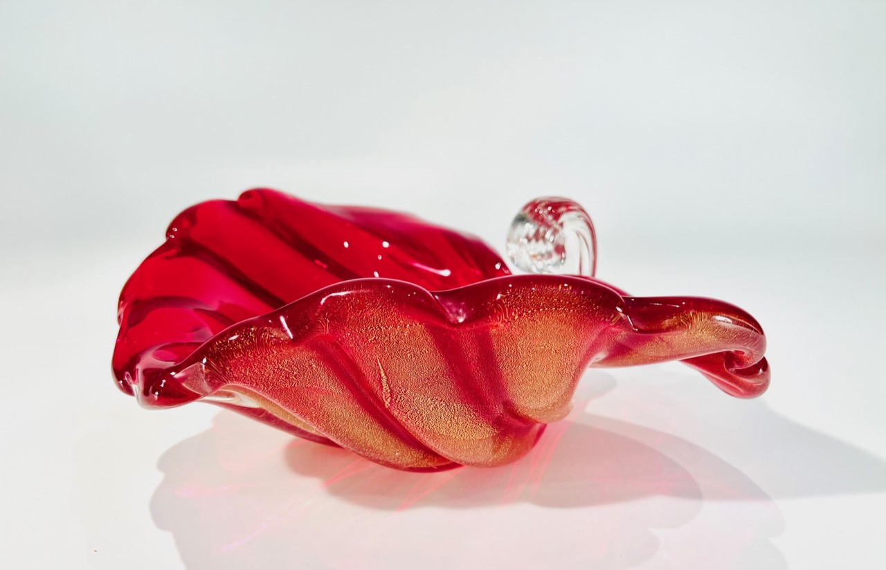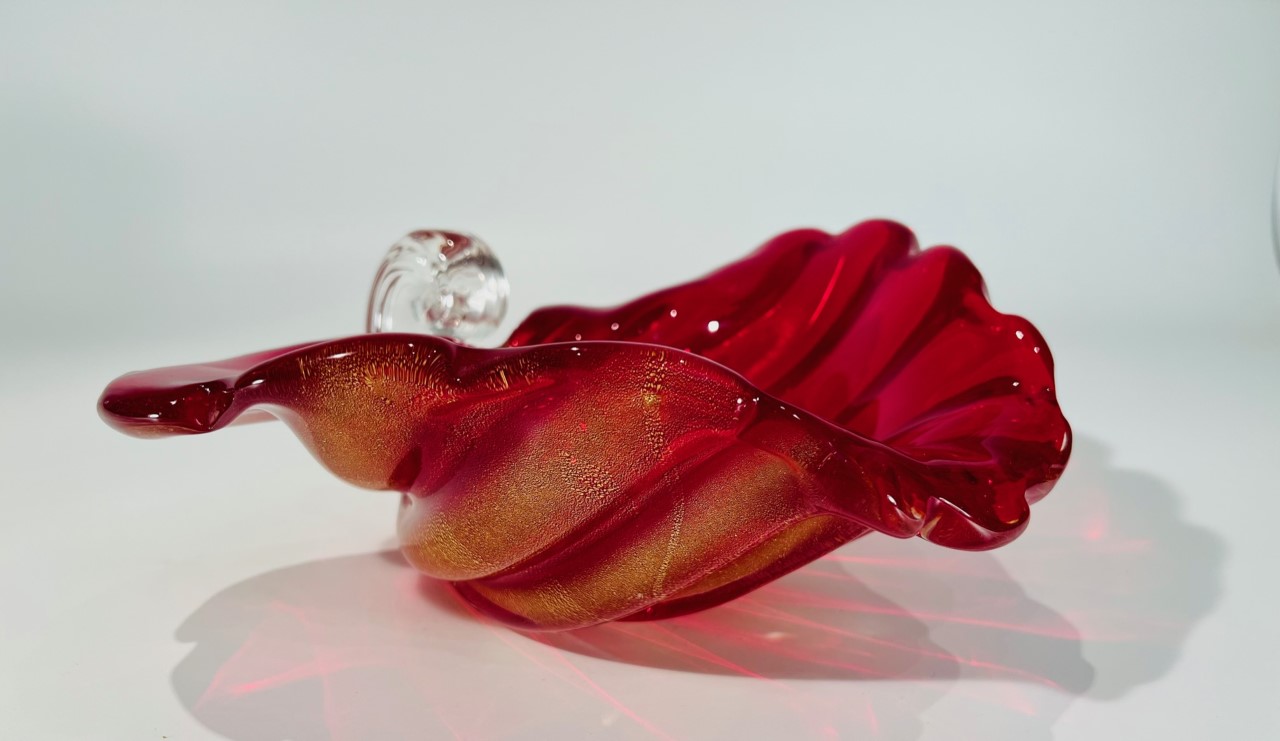 Cornucópia em vidro artístico soprado de Murano ARCHIMEDE SEGUSO 1950 “Rubino costolato oro”