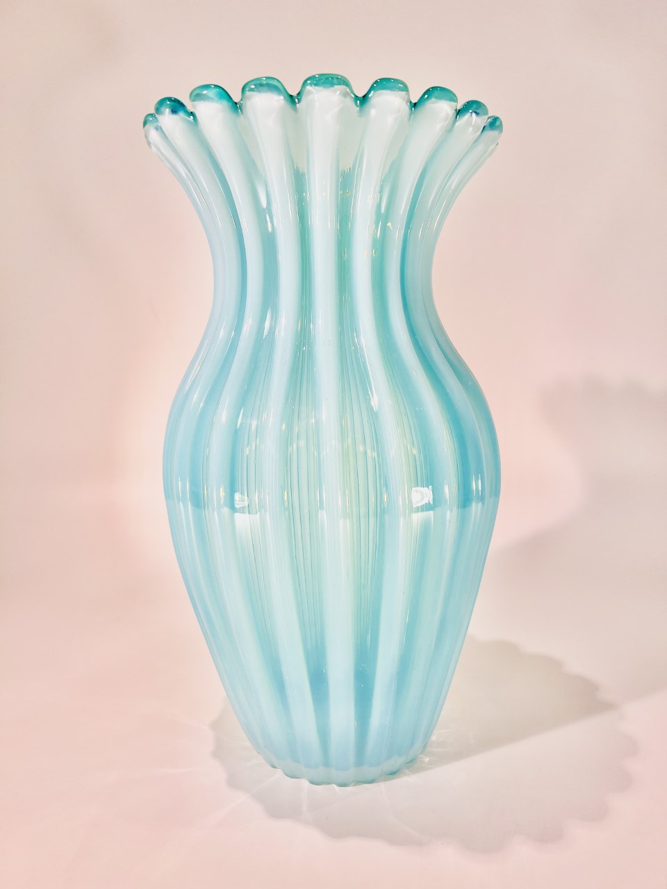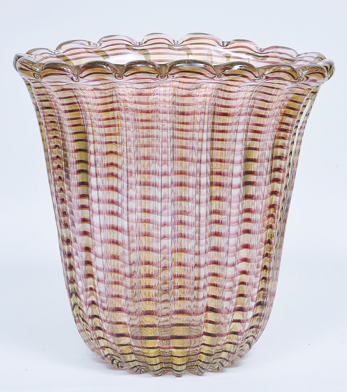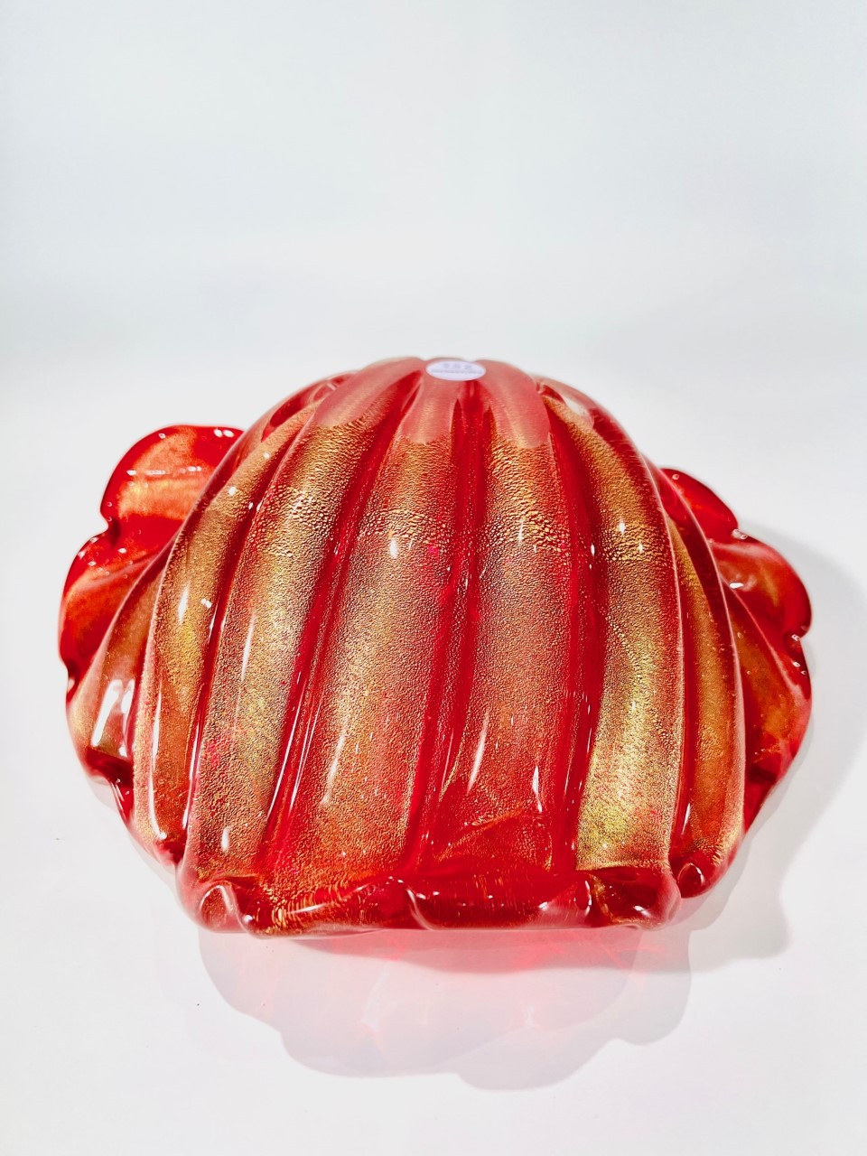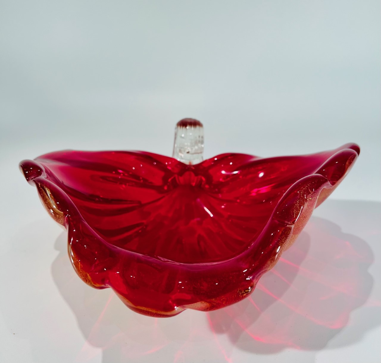 Cornucópia em vidro artístico soprado de Murano ARCHIMEDE SEGUSO 1950 “Rubino costolato oro”