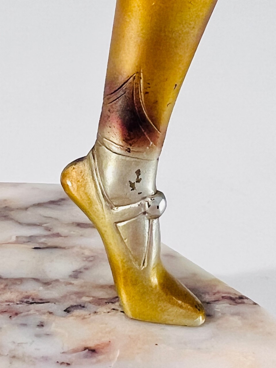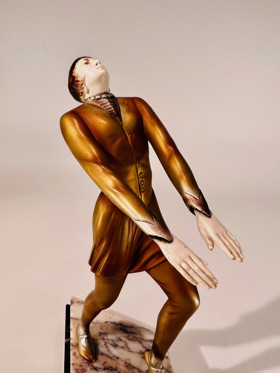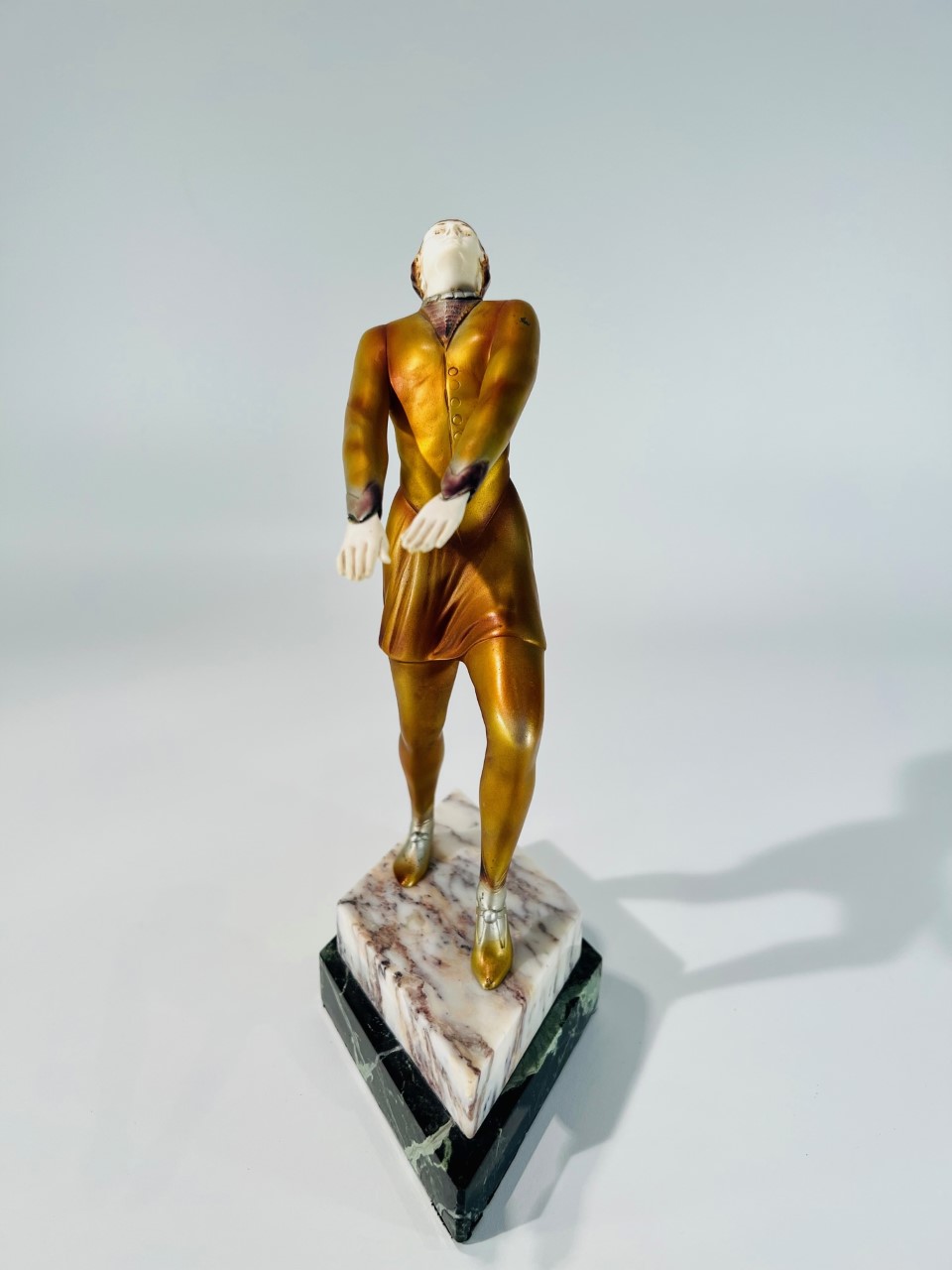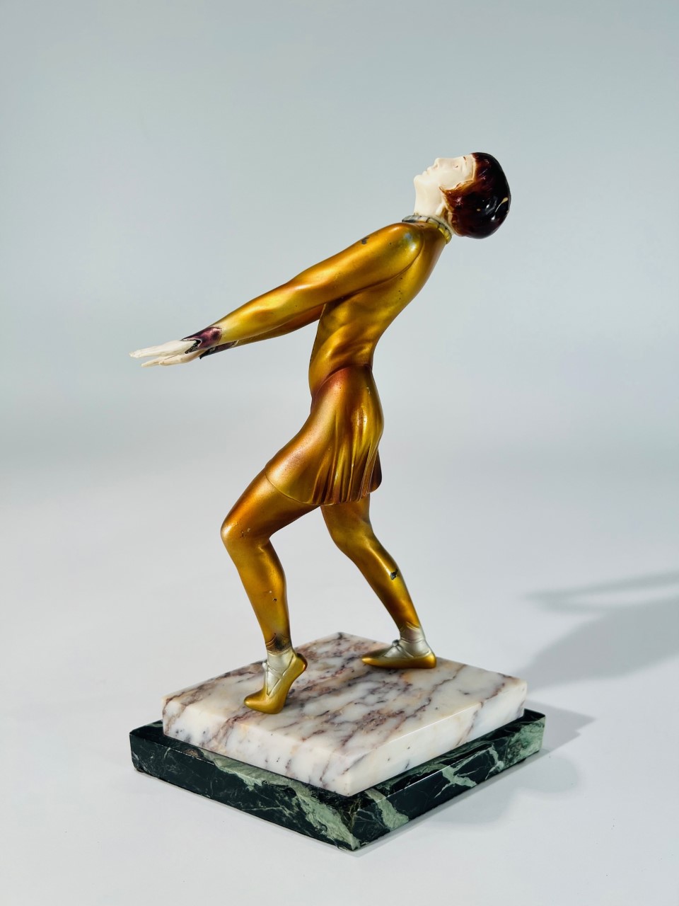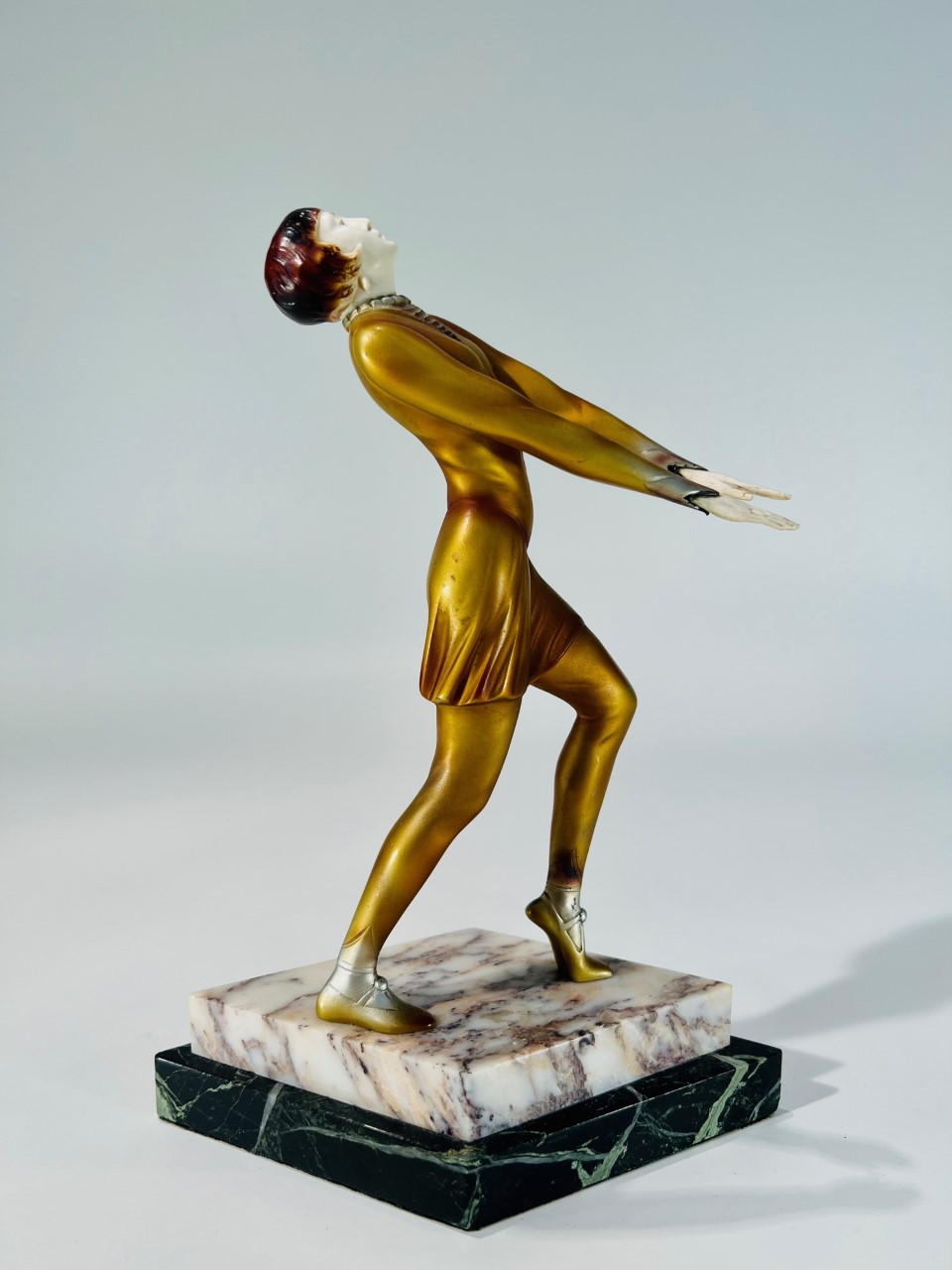 Escultura em bronze e marfim Art Déco com policromia sobre base de dois tipos de mármore atribuída a ROLAND PARIS 1930.