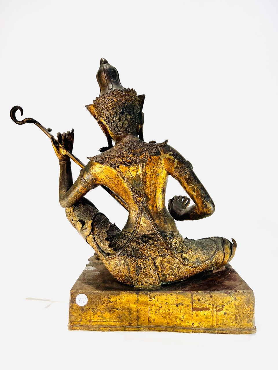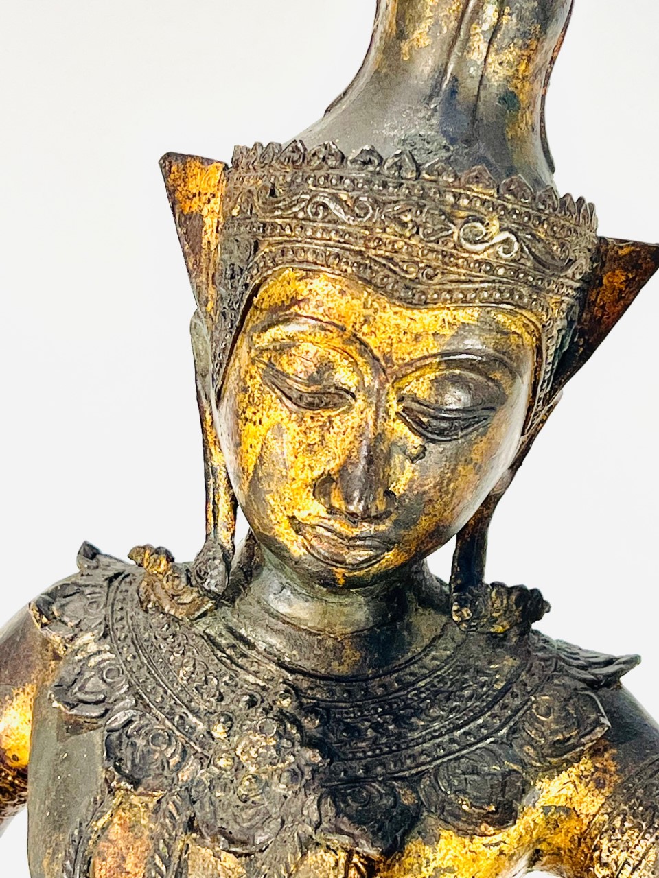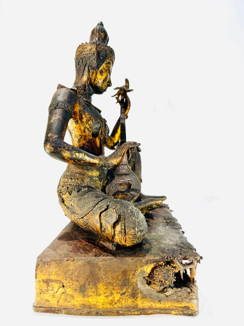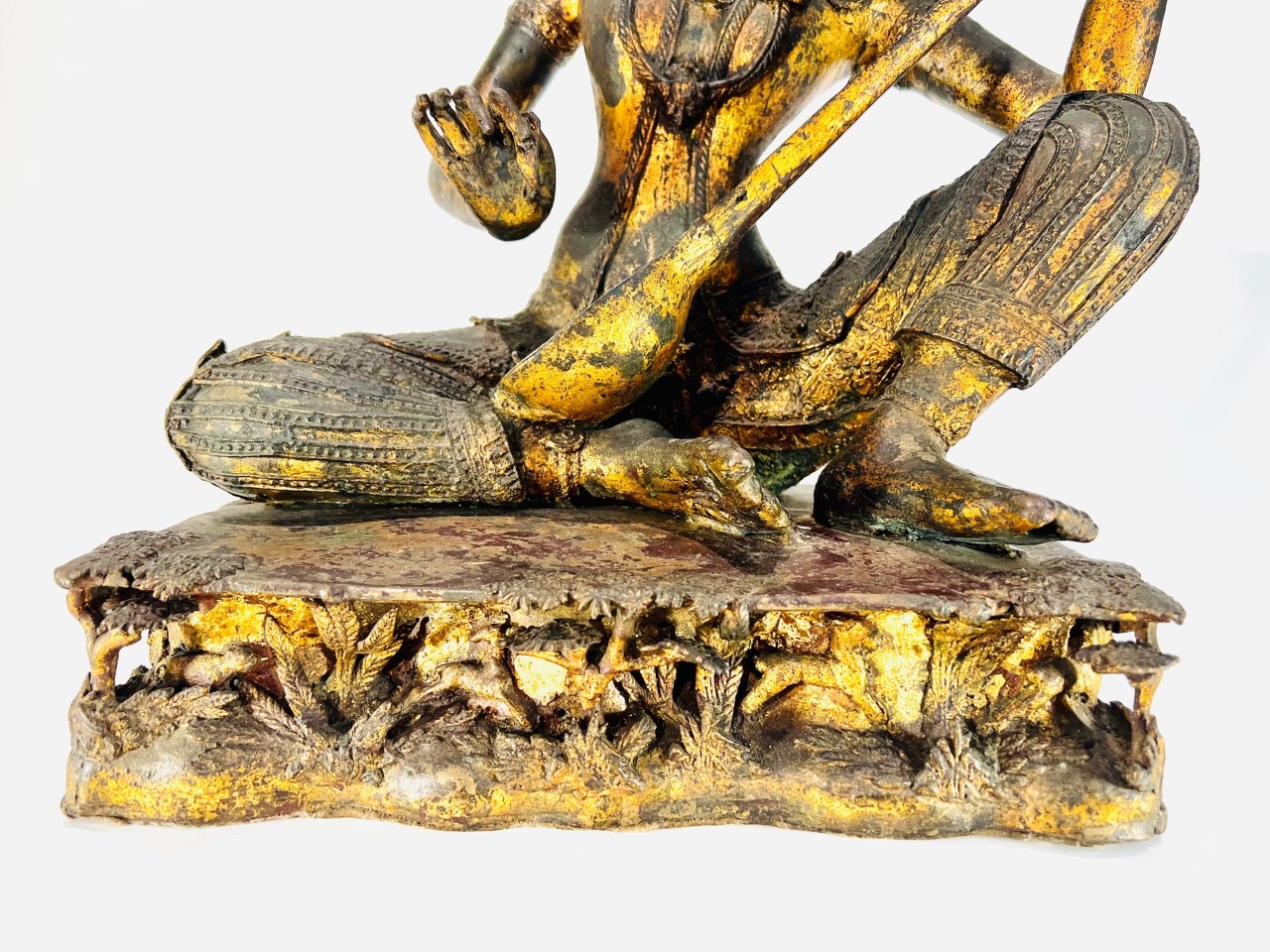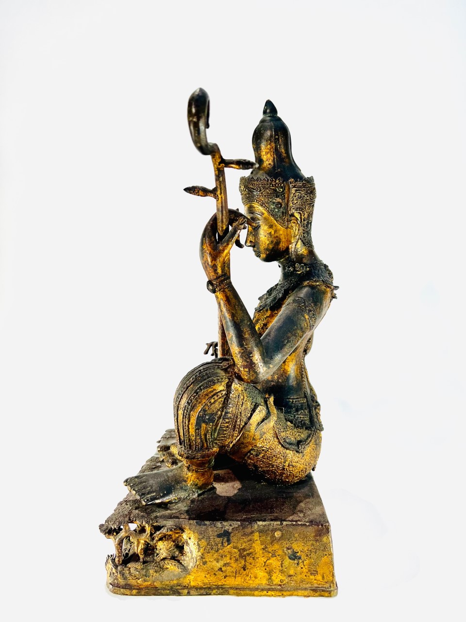 Escultura balinesa antiga em bronze banhado à ouro representando musicista, circa 1800.