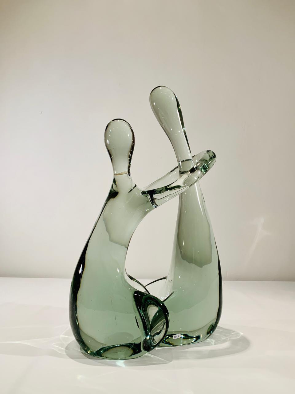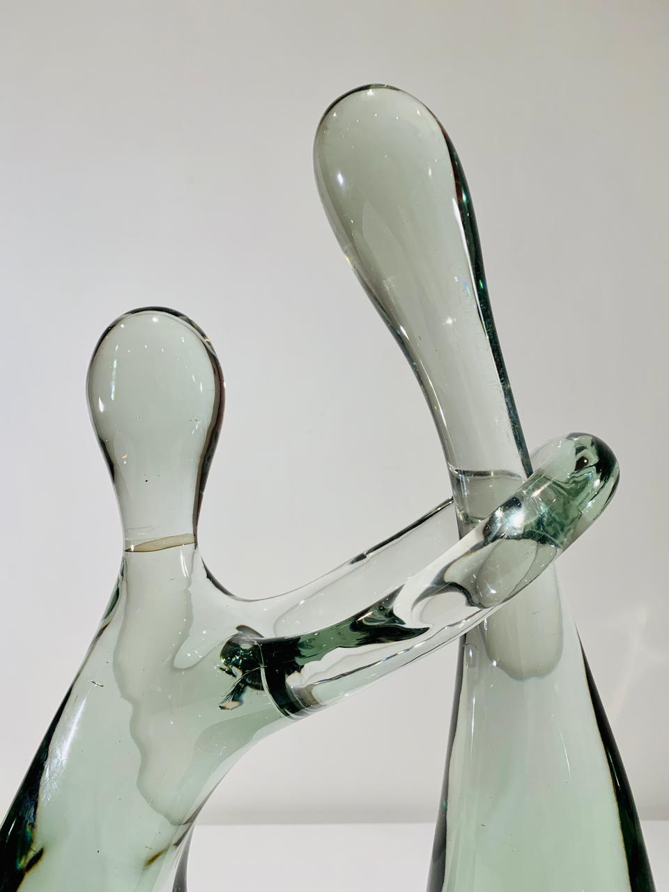 Murano ANGELO SEGUSO 1972 escultura em vidro artístico soprado de Murano produzido por Seguso Vetri d’Arte, representação moderna do abraço. Peça única.