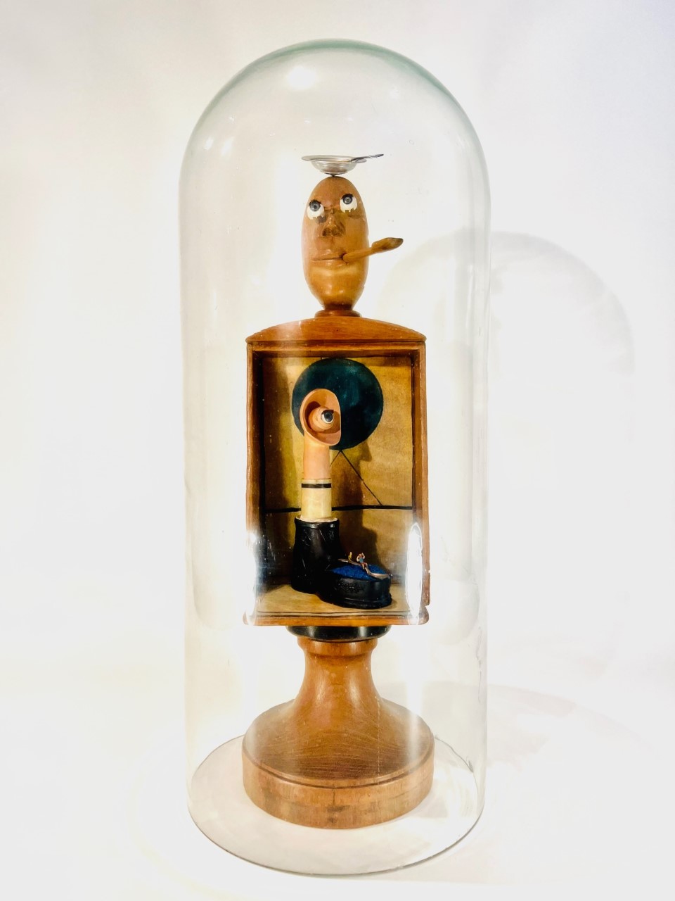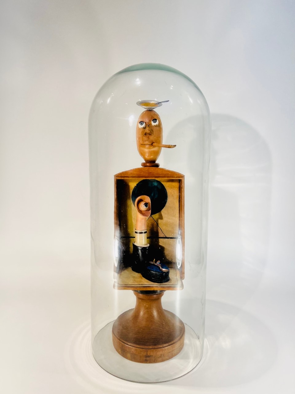 Escultura em vários materiais com redoma de cristal assinado por AIRIM CANEDO