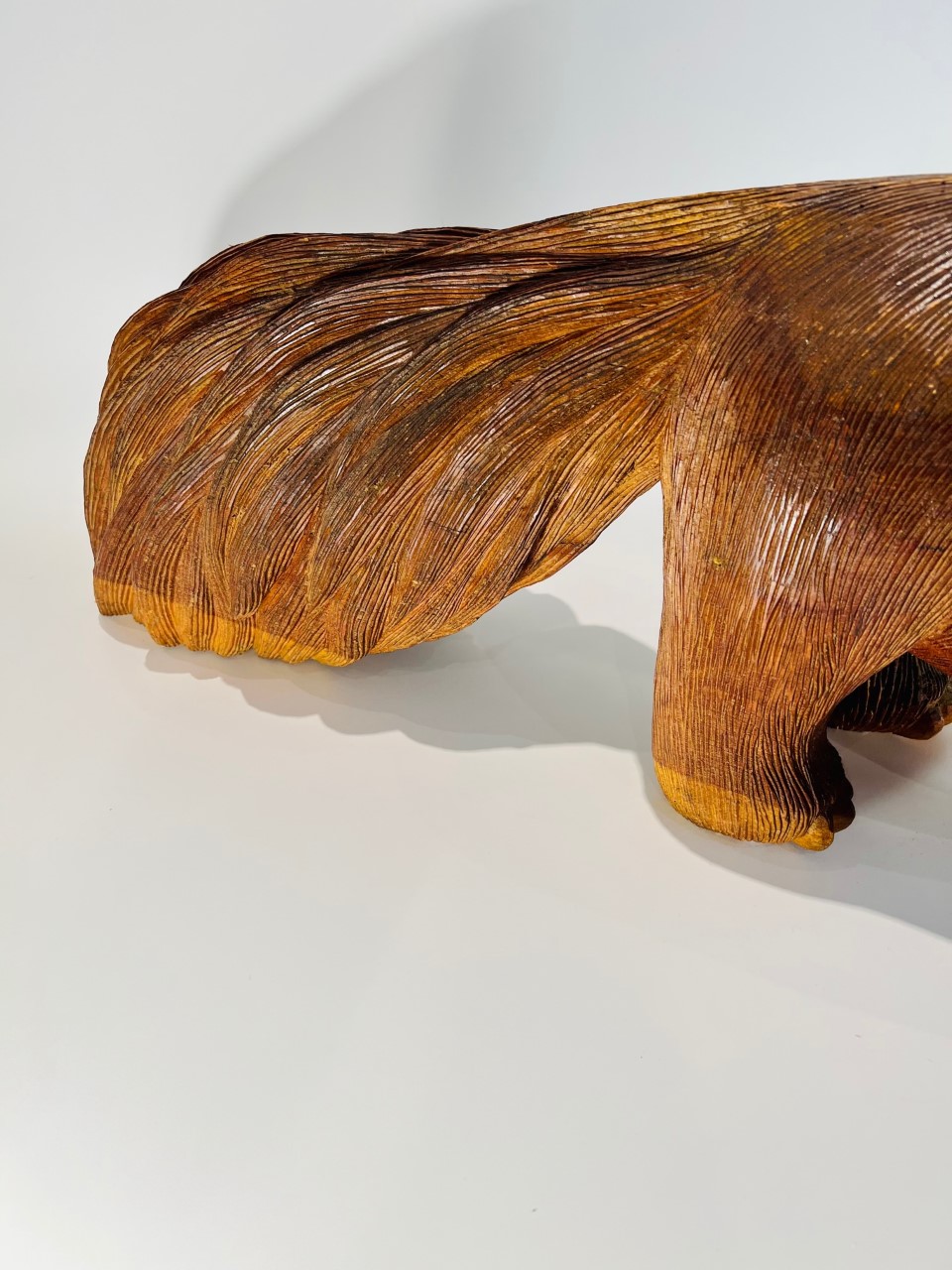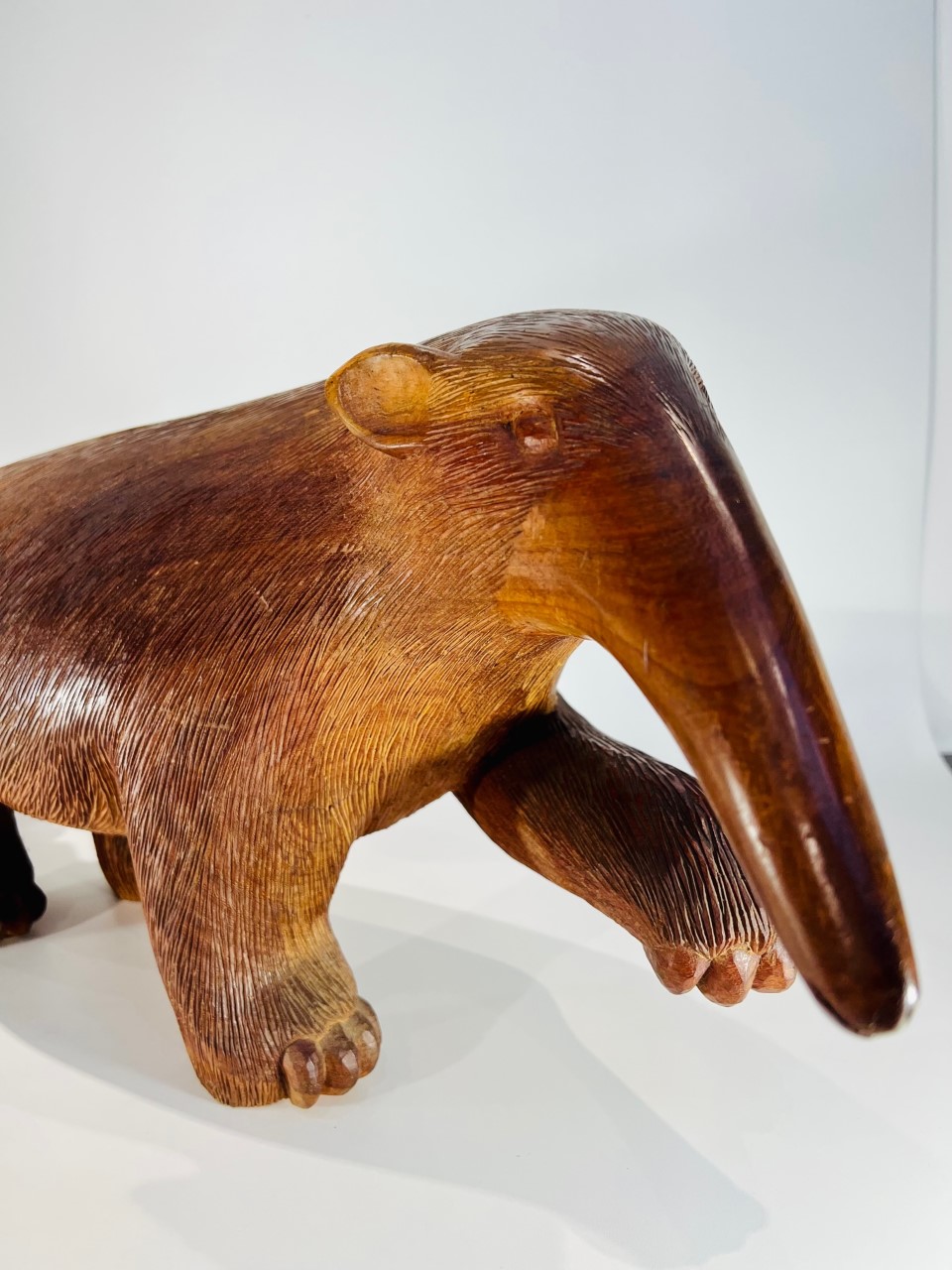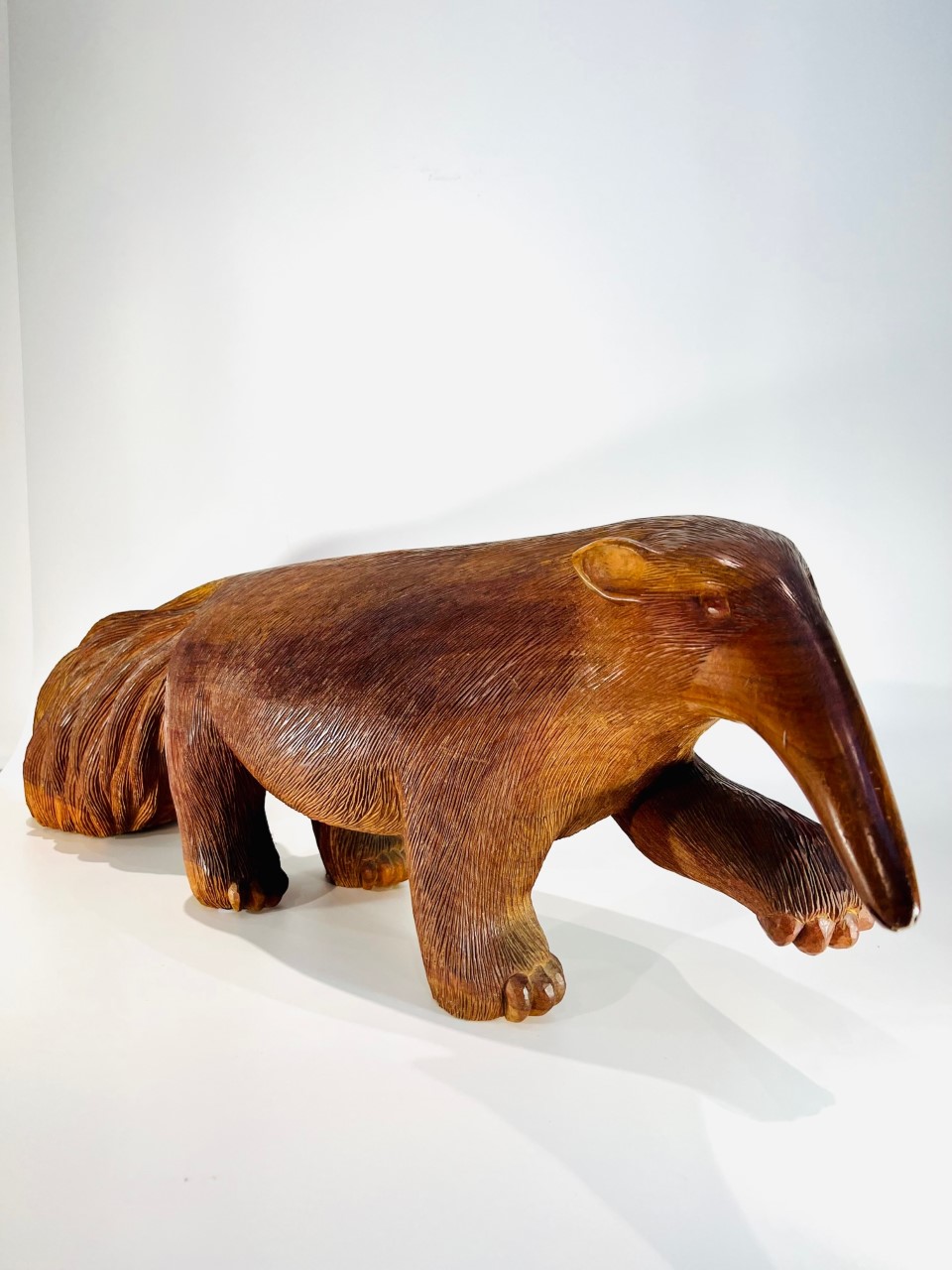Escultura em madeira representando Tamanduá Bandeira artesanato brasileiro circa 1950