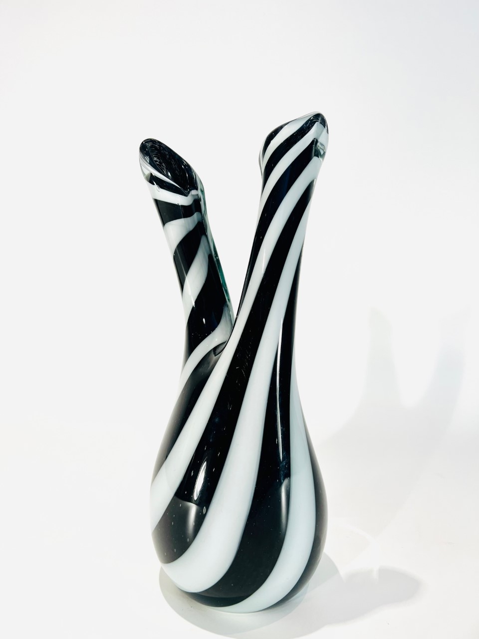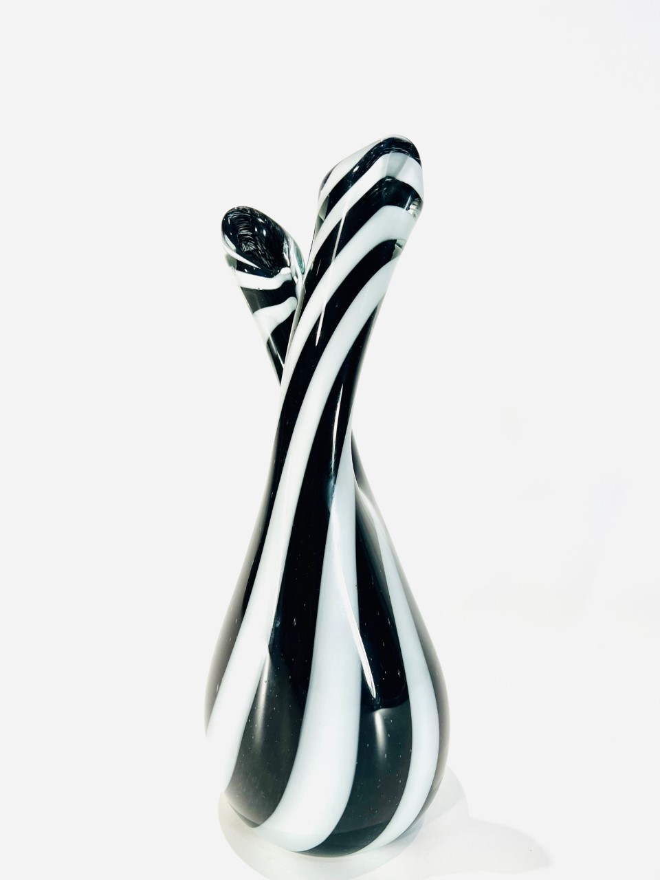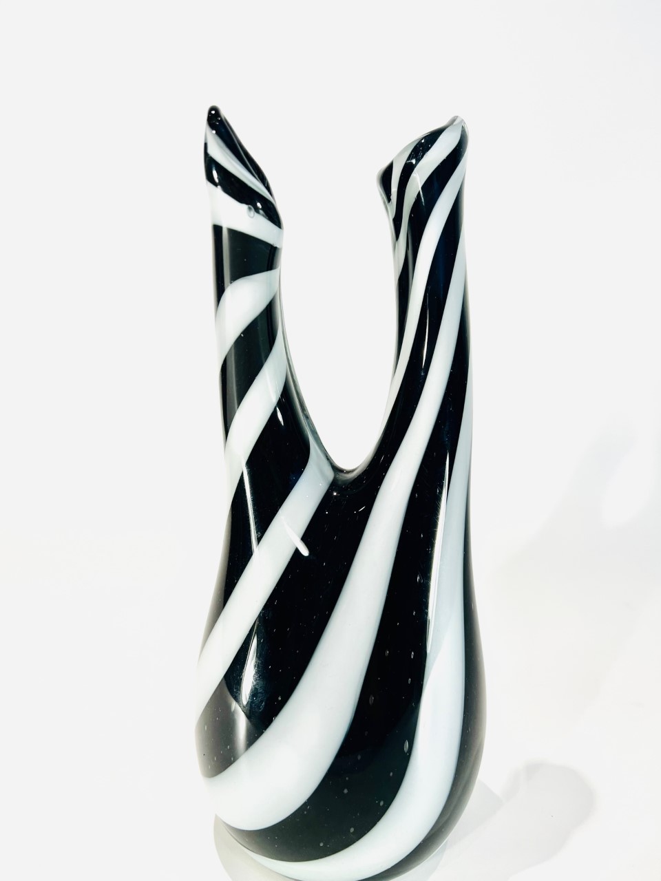 Vaso em vidro artístico soprado de Murano em vidro negro e branco atribuído a PAULI&C circa 1990