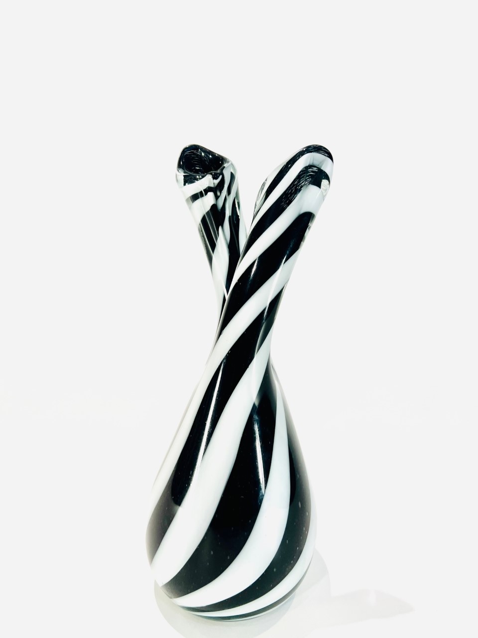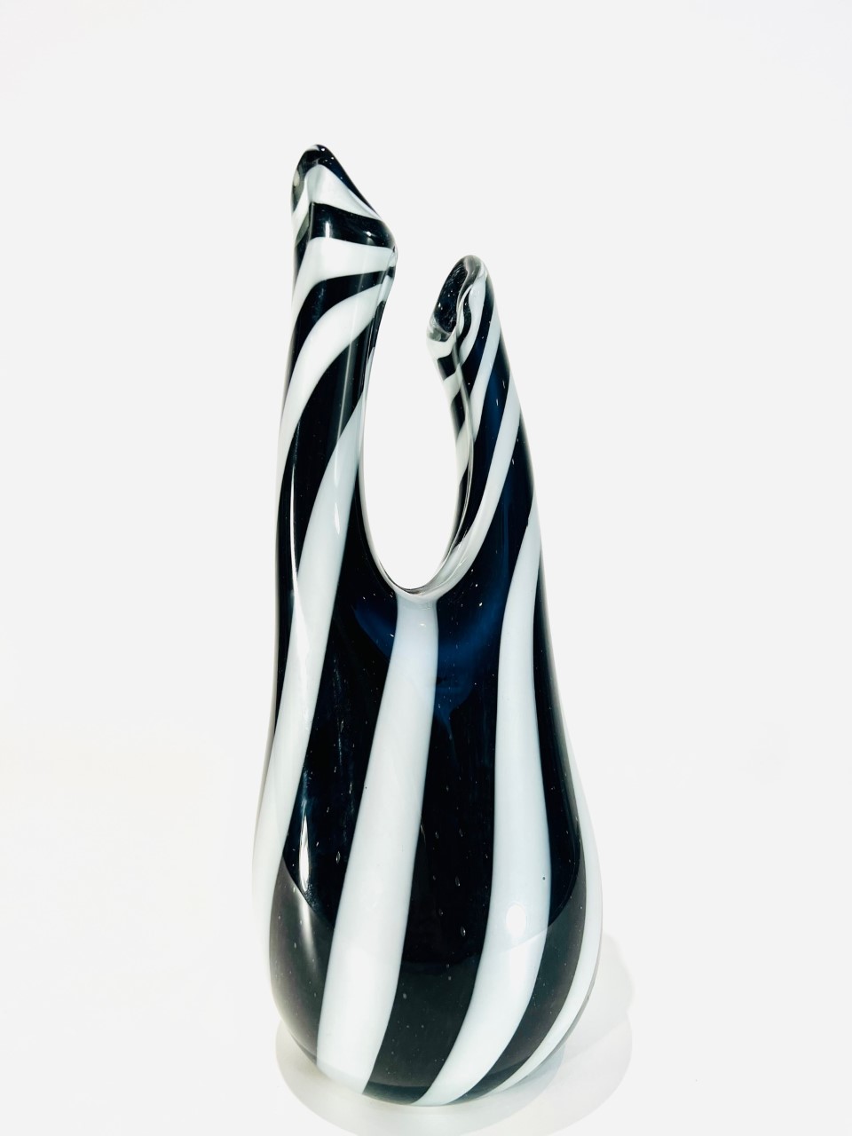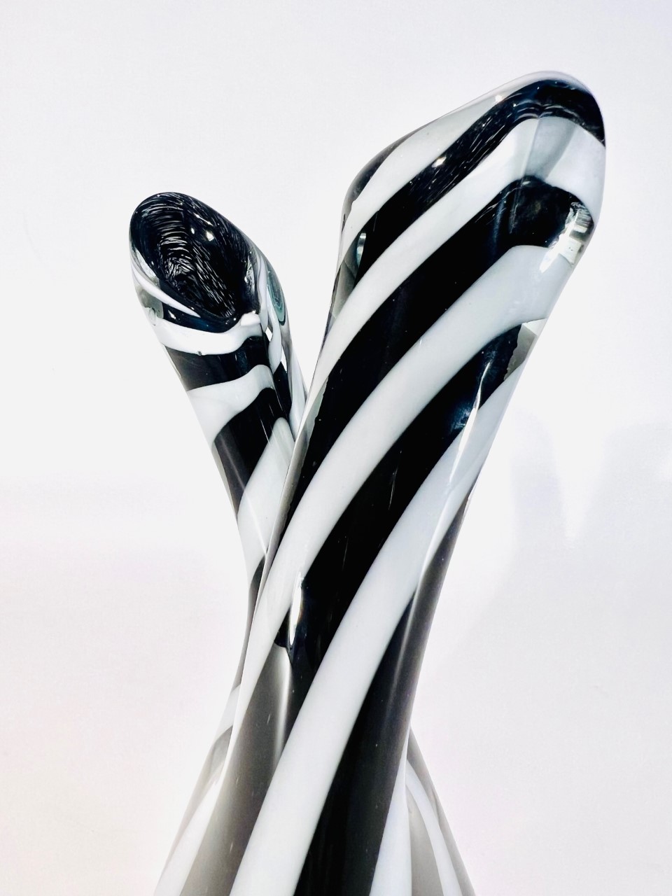 Vaso em vidro artístico soprado de Murano em vidro negro e branco atribuído a PAULI&C circa 1990