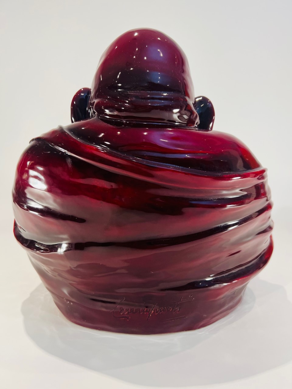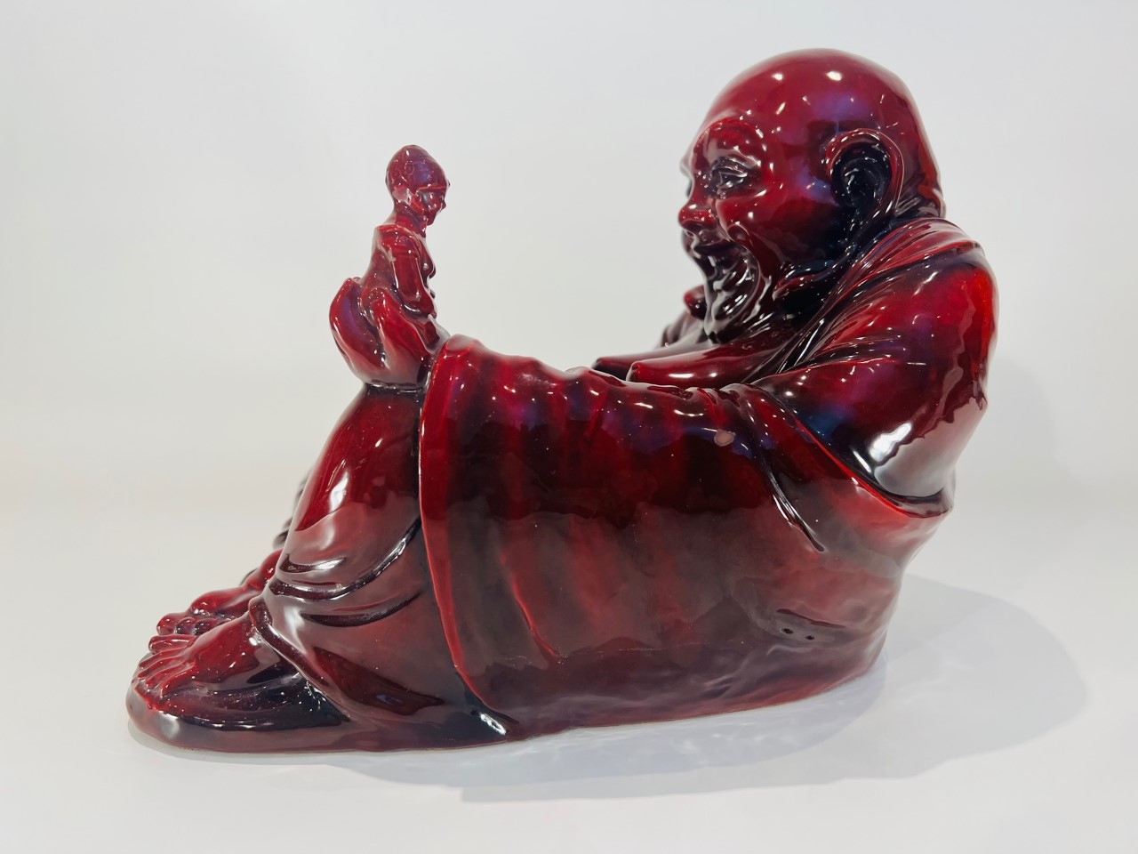 Escultura em porcelana italiana assinado e etiquetado Cacciapuoti circa 1950 representando adorador de Buda