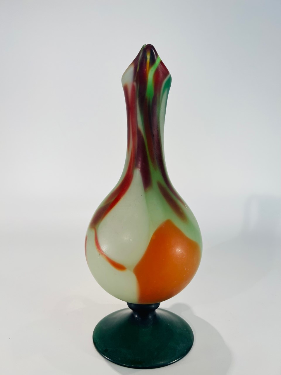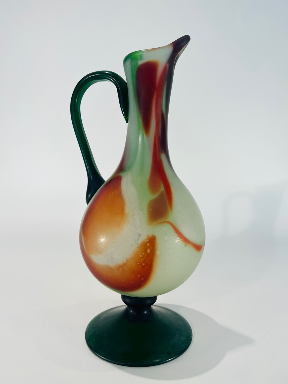 Jarro em vidro artístico soprado de Murano multicolorido com alça e base aplicadas circa 1950