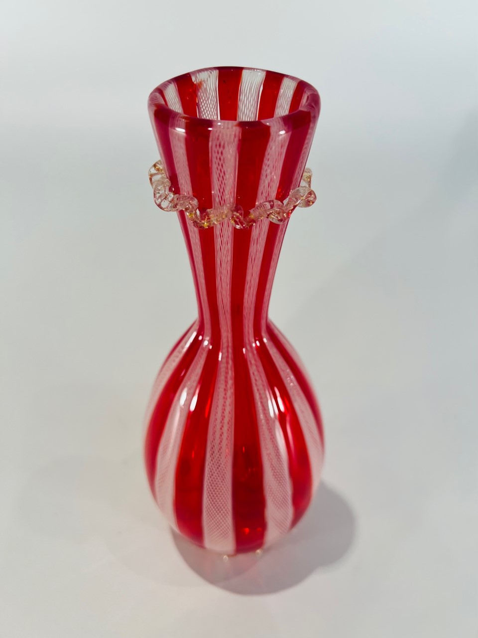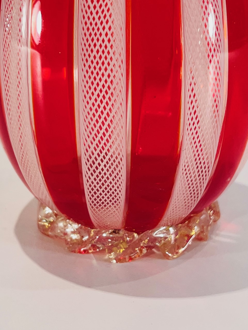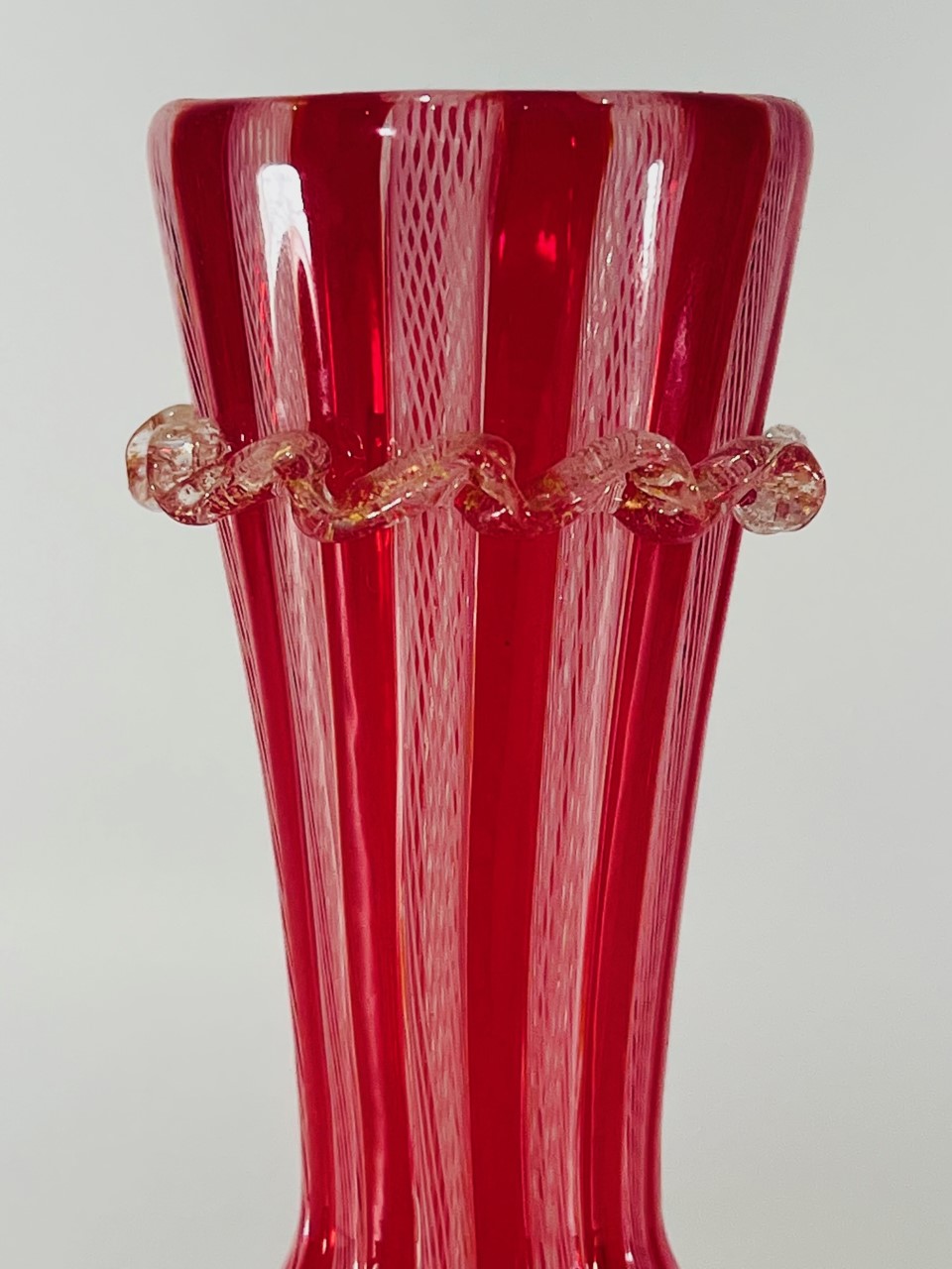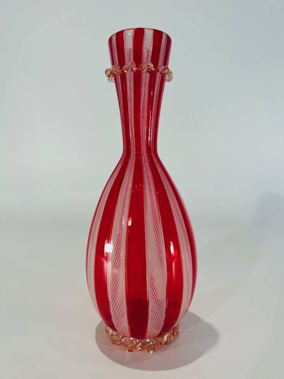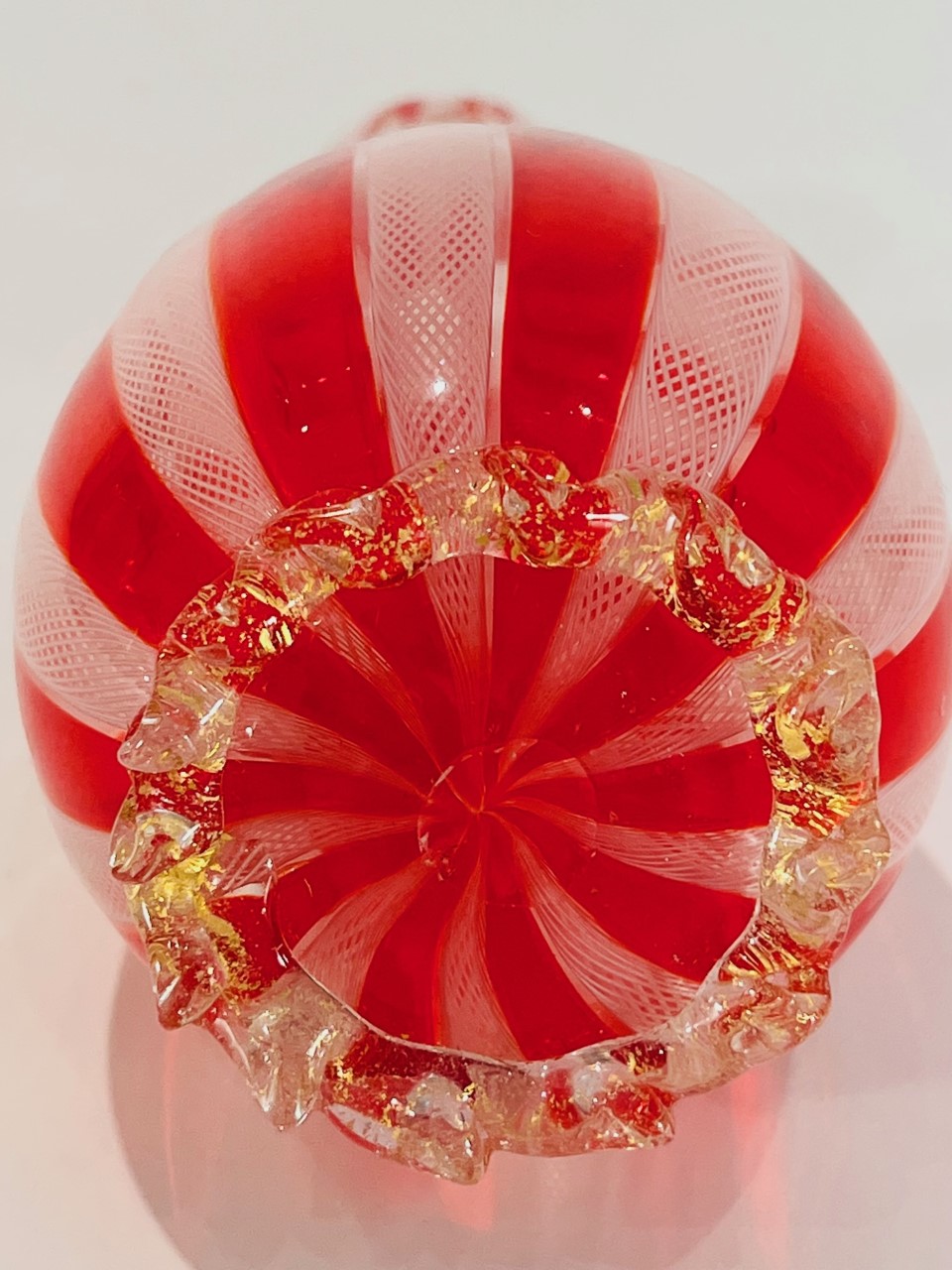 Vaso em vidro artístico soprado de Murano atribuído a DINO MARTENS por Aureliano Toso 1950 “Zanfiroco” e aplicações a ouro.
