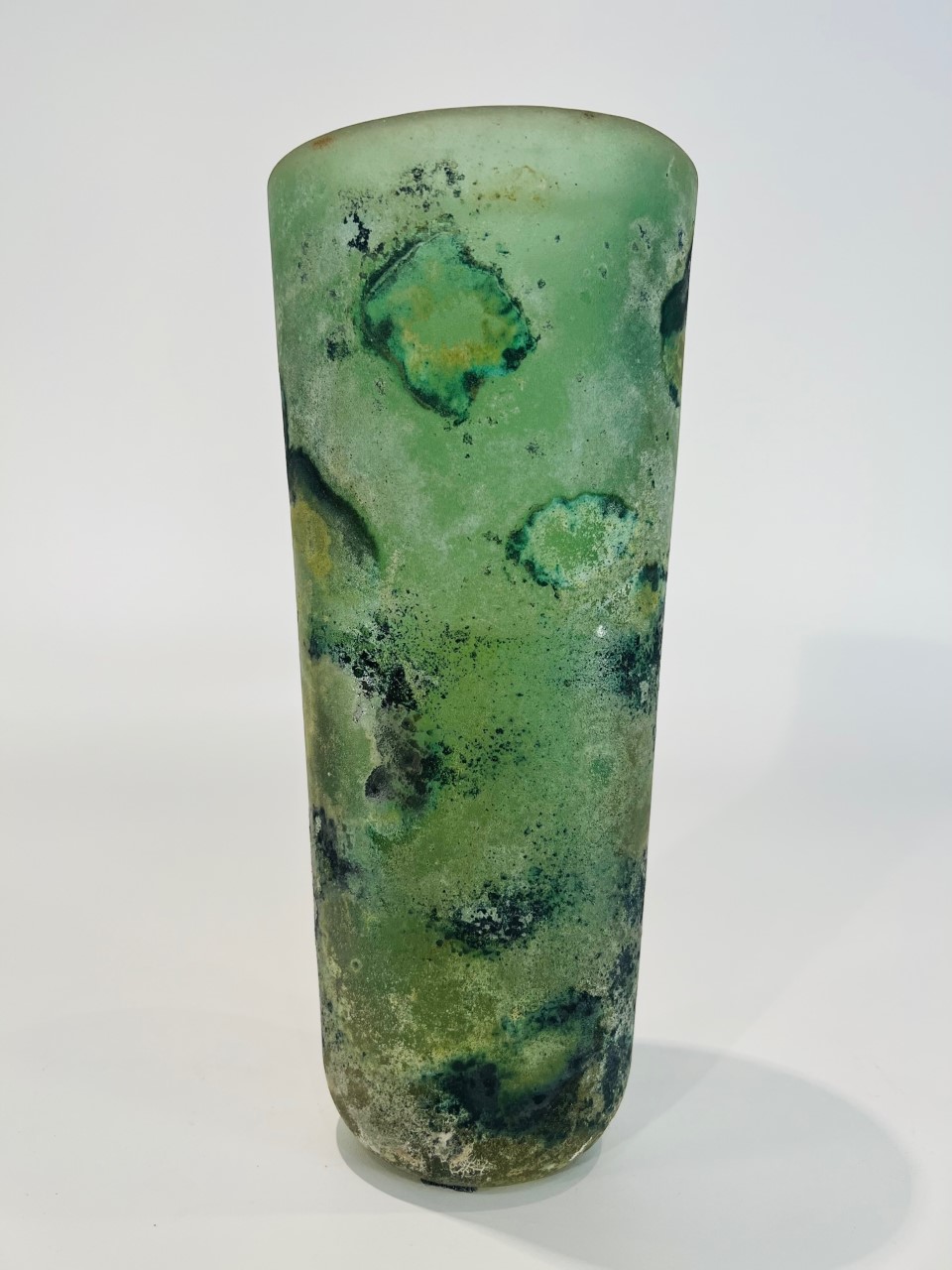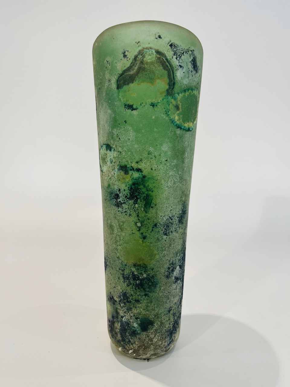 Vaso em vidro artístico soprado de Murano Seguso Vetri d’Arte 1950 “corroso”