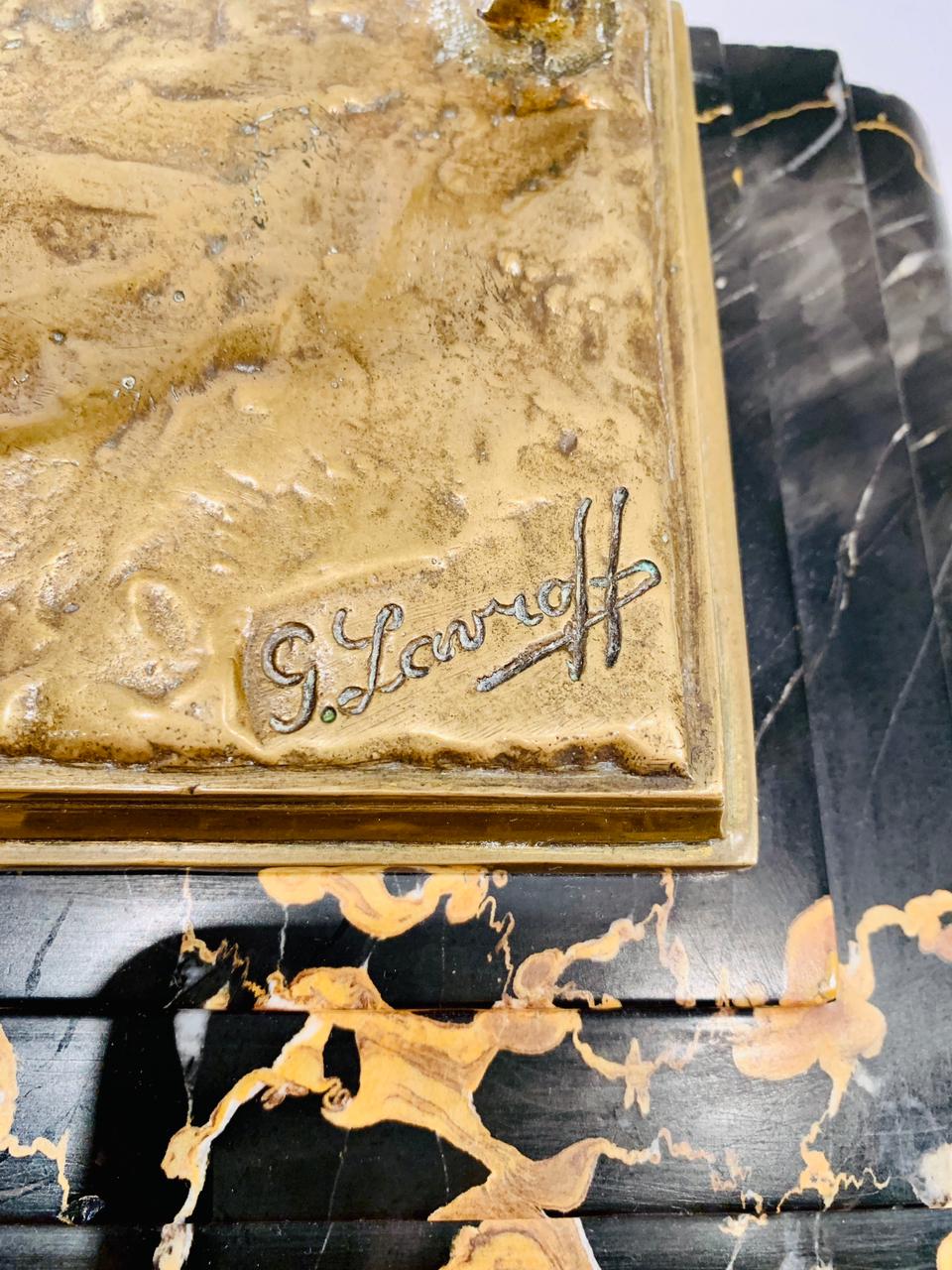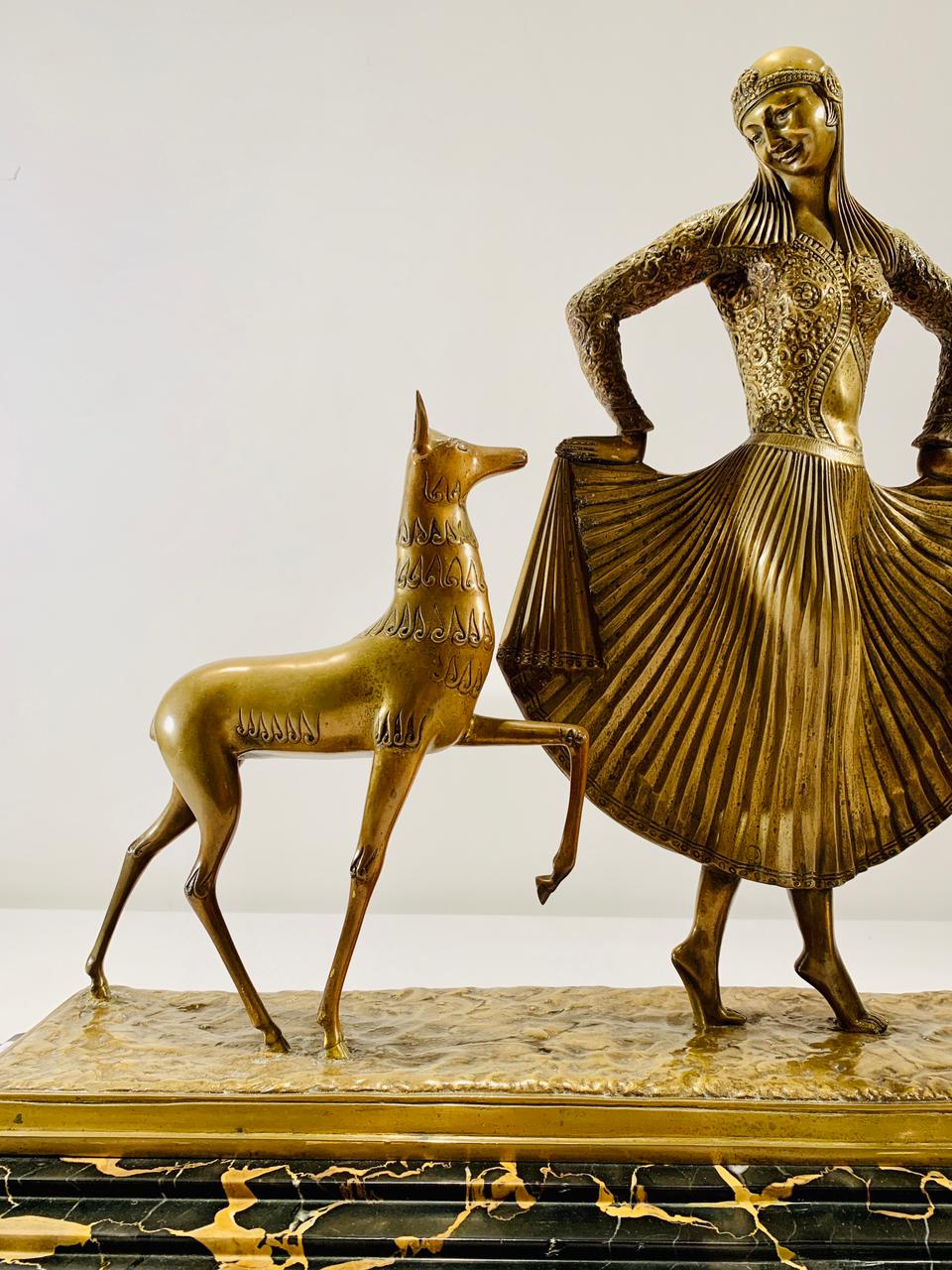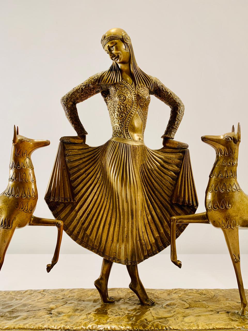 Art Déco 1930. Bronze representando bailarina russa com dois cervos estilizados em base de mármore assinada por GEORGES Lavroff.