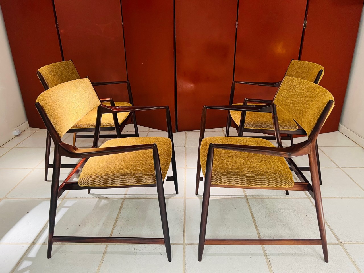 GERALDO DE BARROS circa 1960, conjunto de quatro poltronas em Jacarandá e tecido.