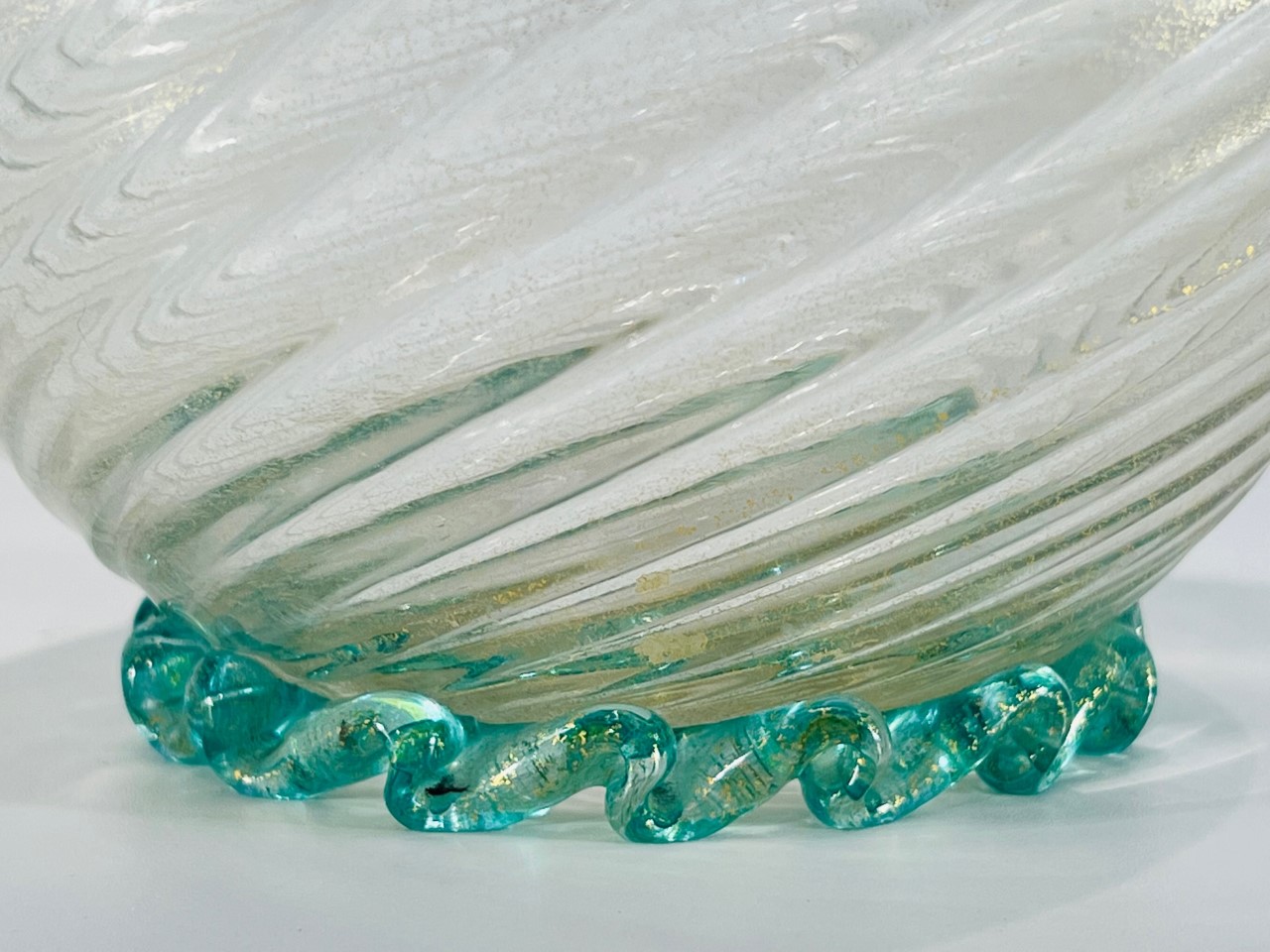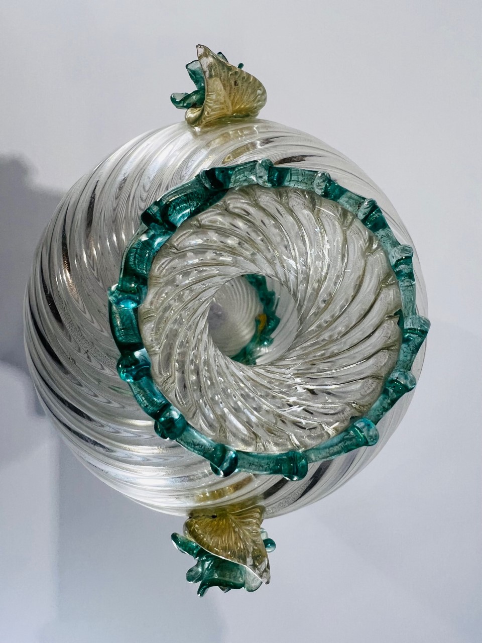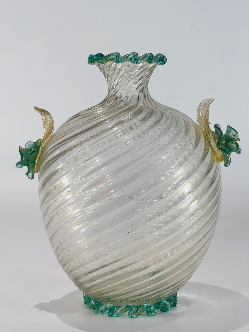 Vaso em vidro artístico soprado de Murano com aplicações e folha de ouro produzido por BAROVIER&TOSO circa 1940