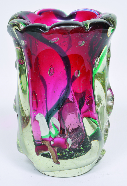 Vaso em vidro artístico soprado de Murano assinado na base LIBERO