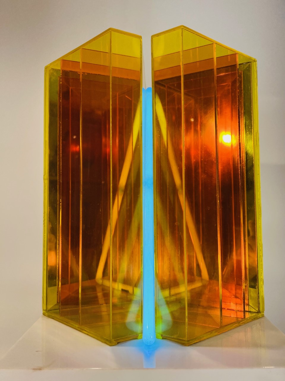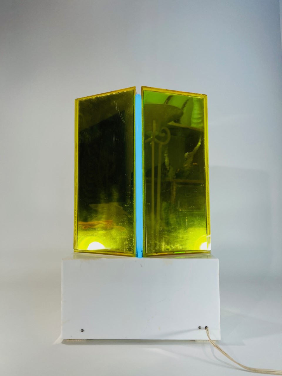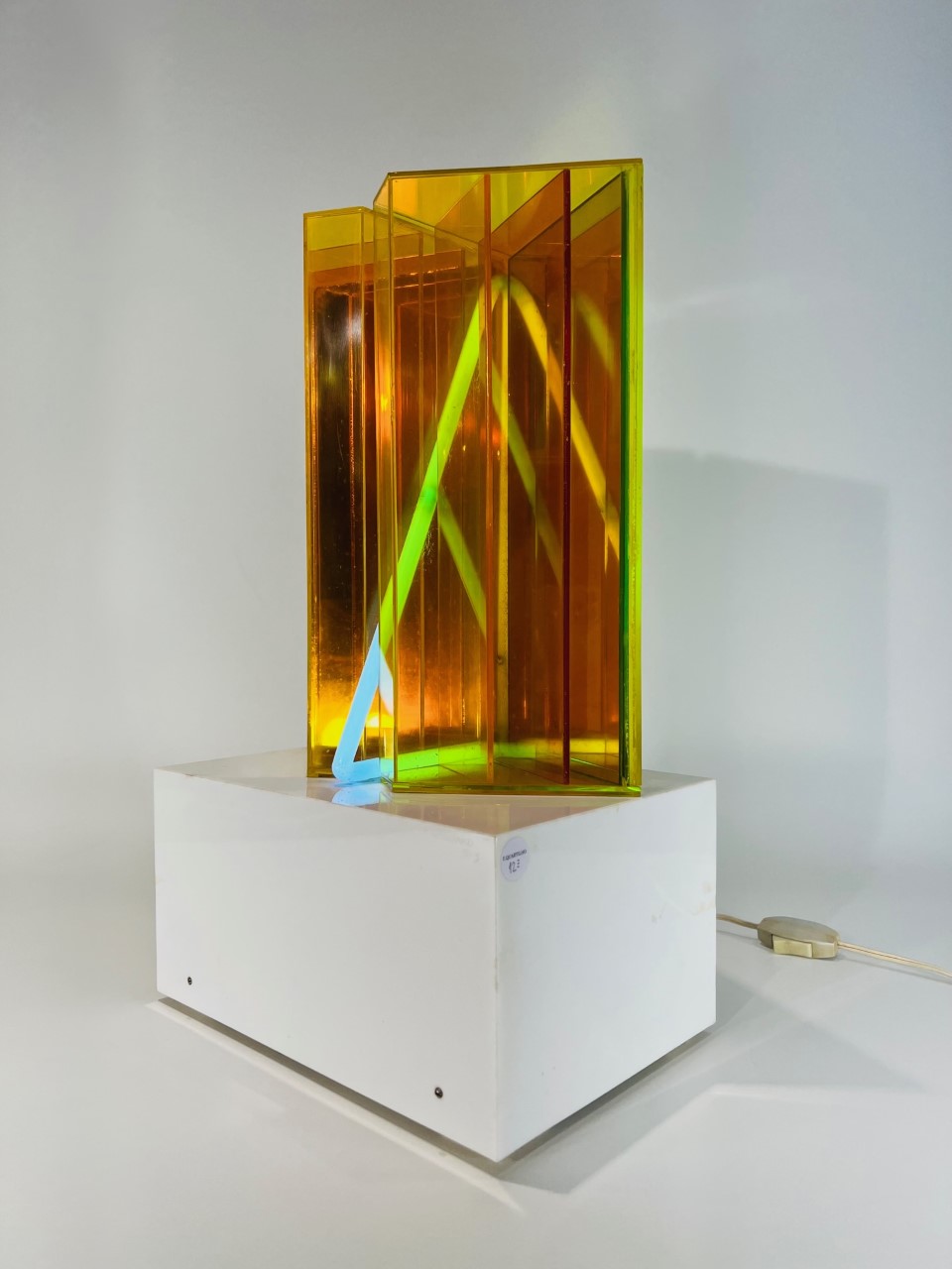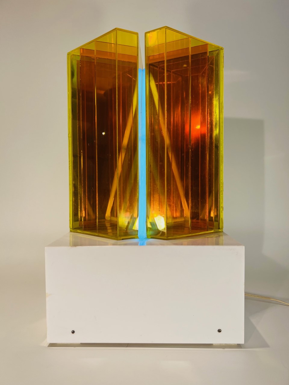 Luminária em acrílico e neon assinada por Victor Gehard 1973.