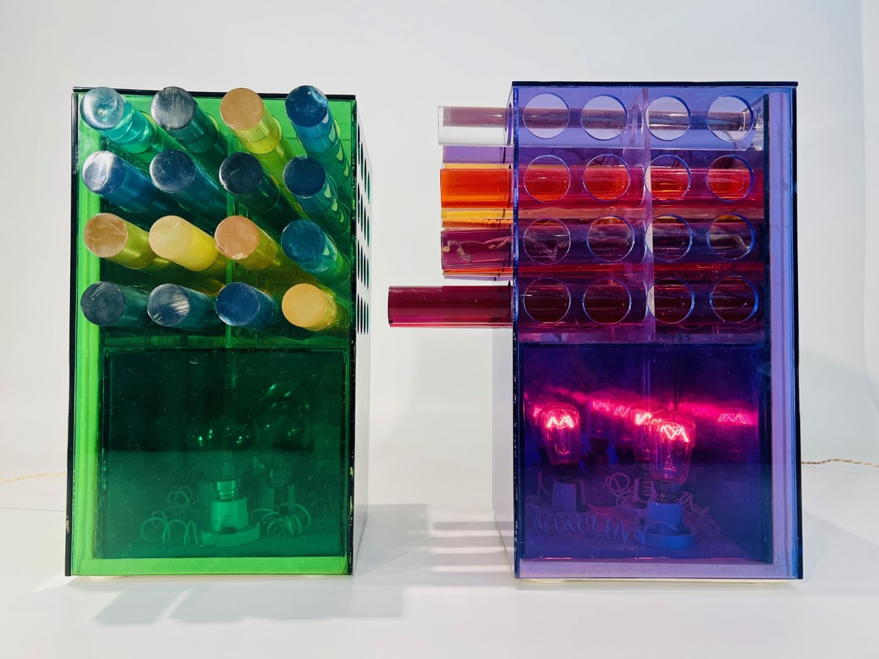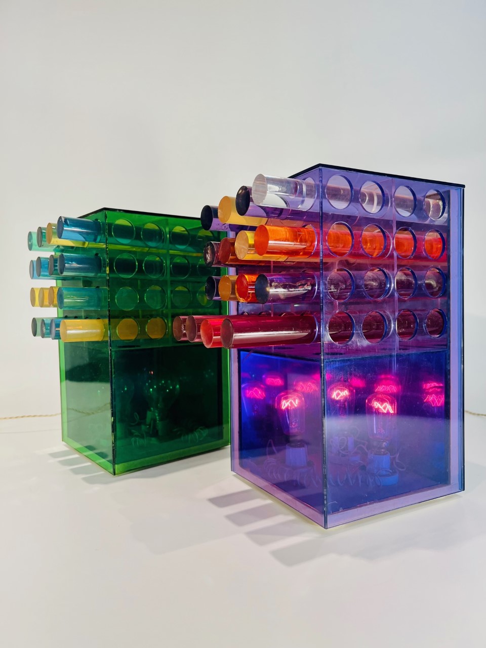 Par de luminárias em acrílico e neon assinada por Victor Gehard 1973.