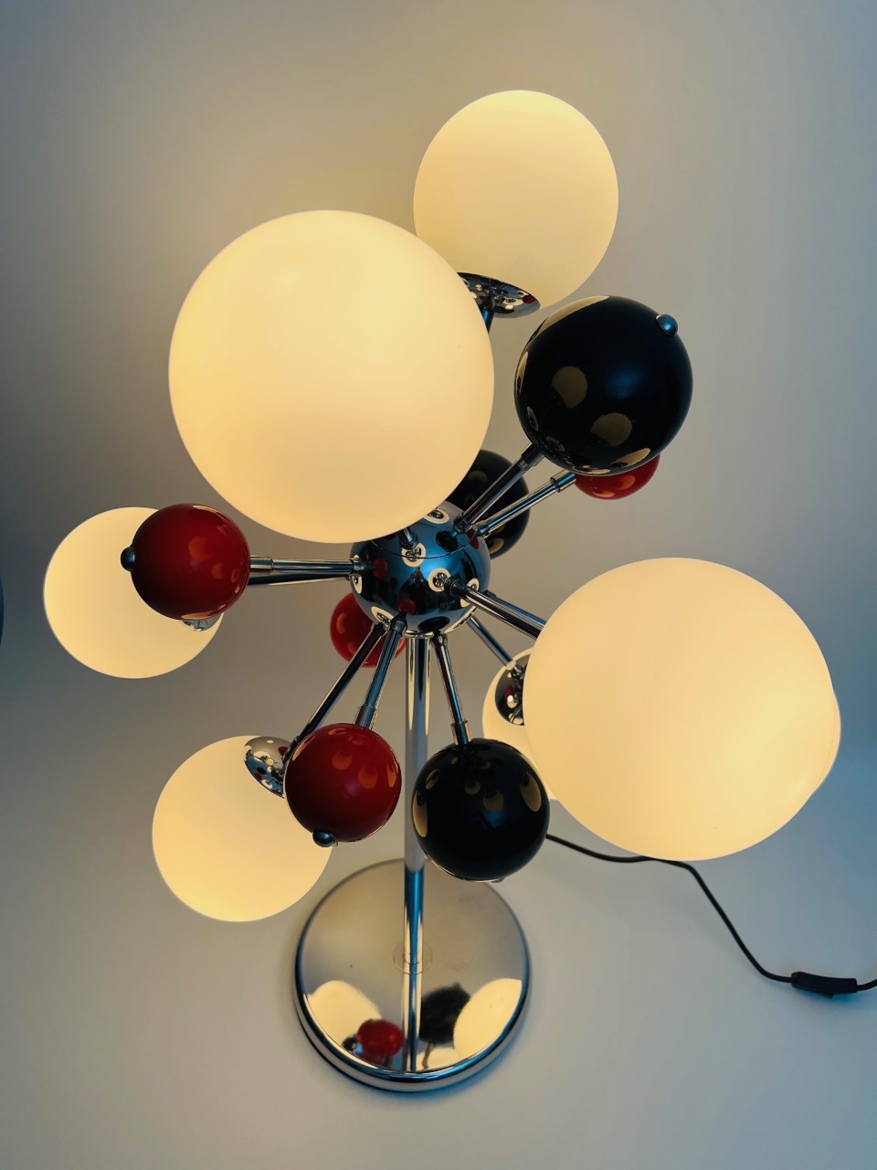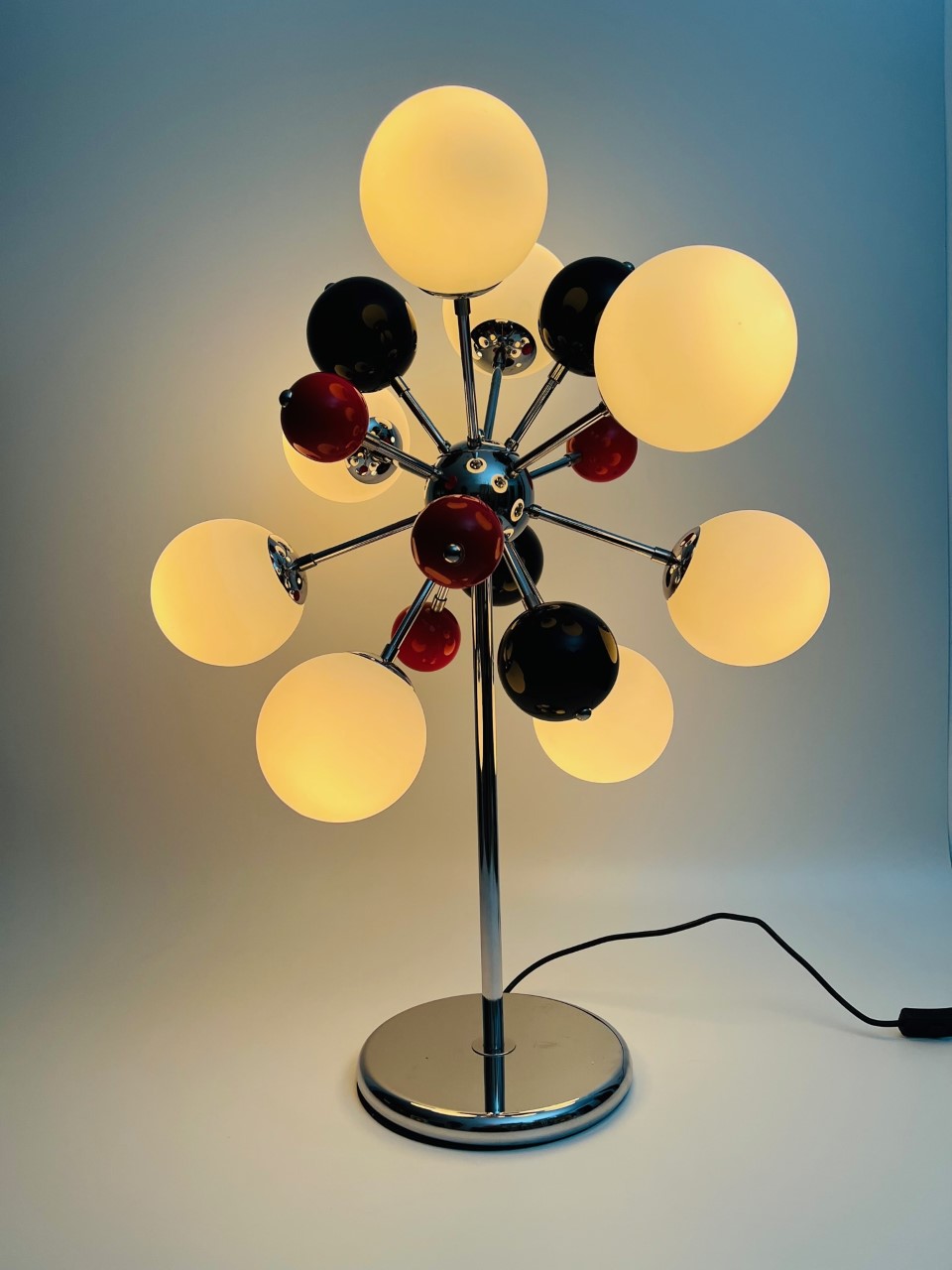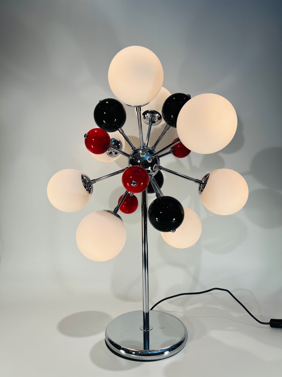 Luminária de mesa em vidro, metal, acrílico circa 1970 atribuído a Angelo LELLI Itália
