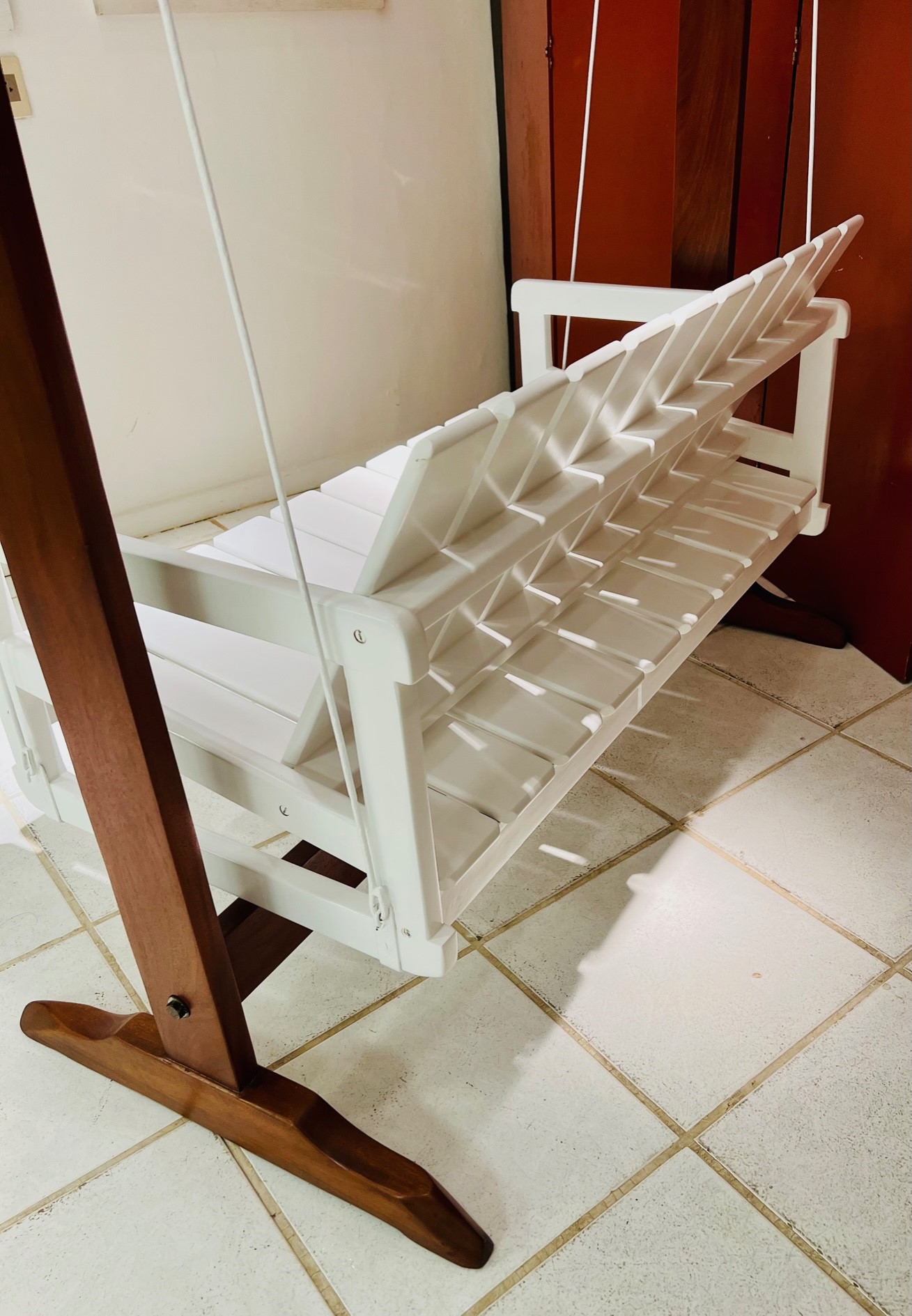 Balanço em madeira nobre e metal de dois lugares atribuído a Sergio Rodrigues circa 1960.