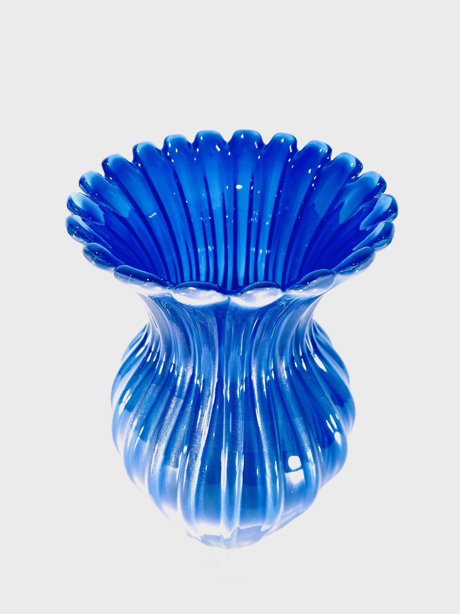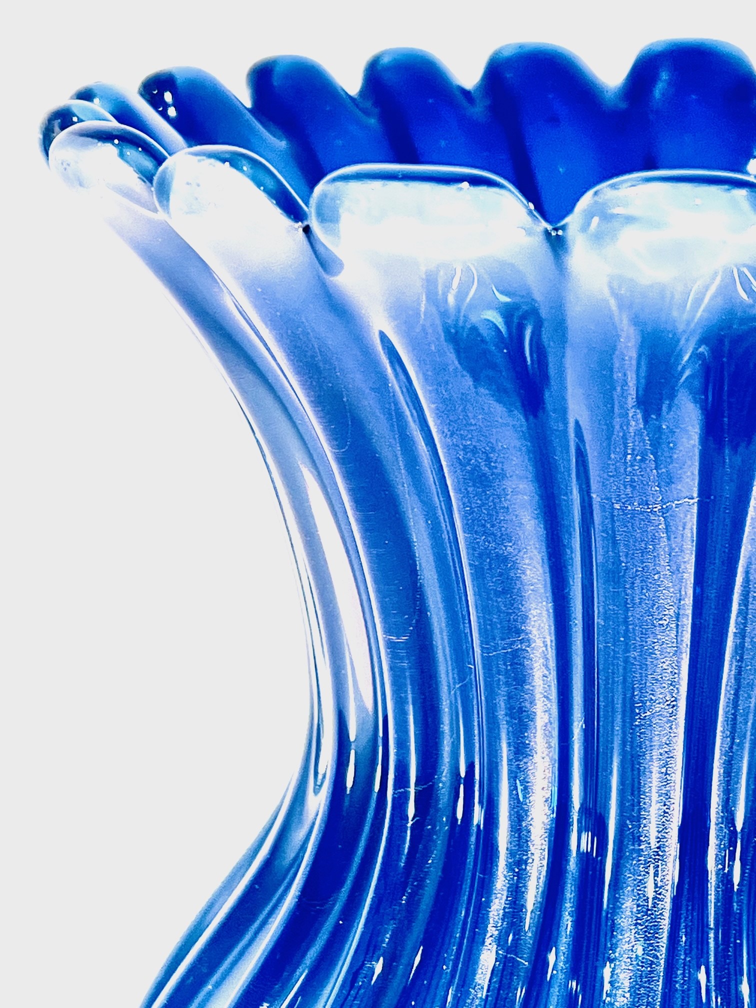 Grande vaso em vidro artístico soprado de Murano produzido por Archimede Seguso 1950 “cordonato oro opalino”