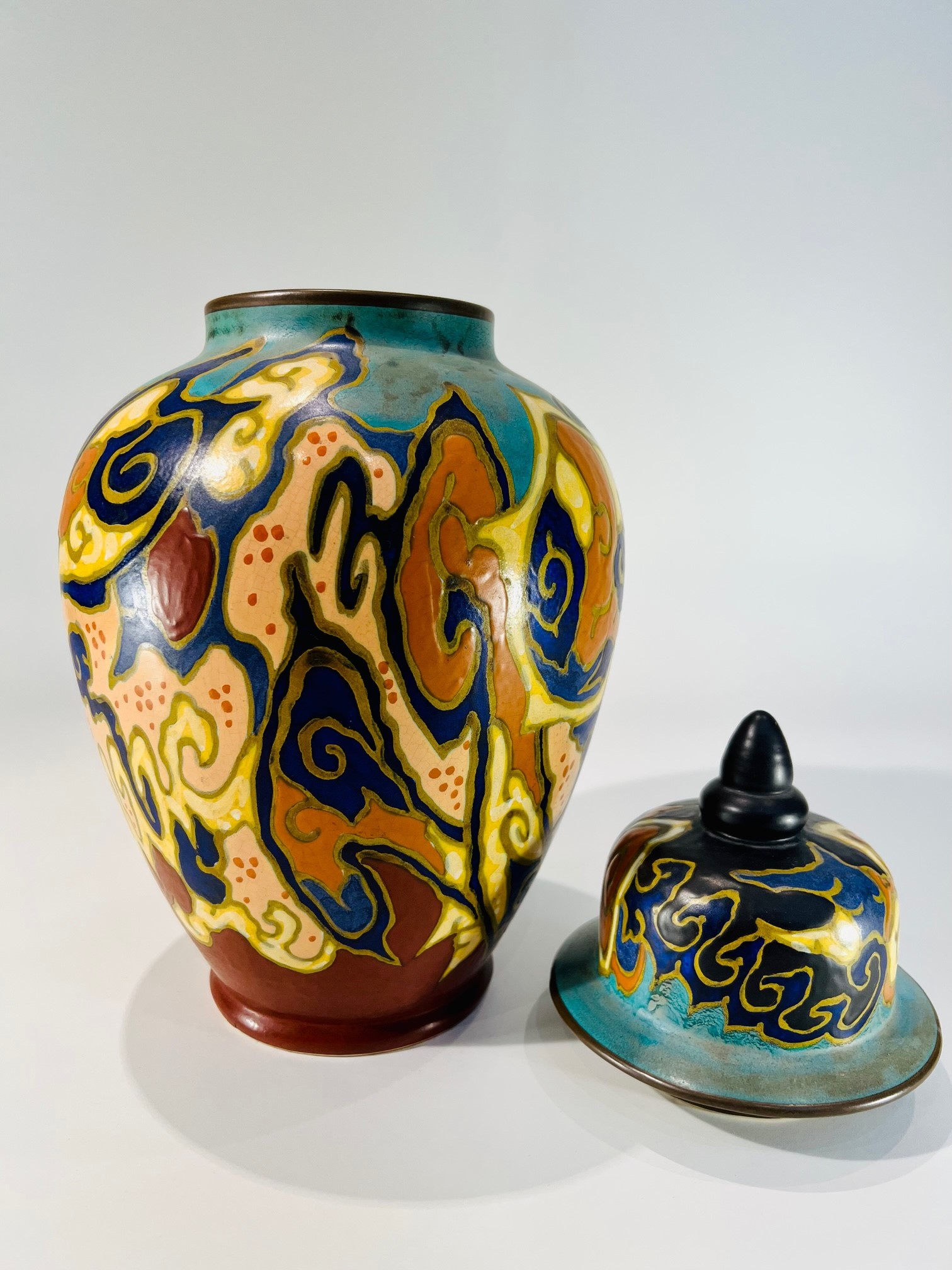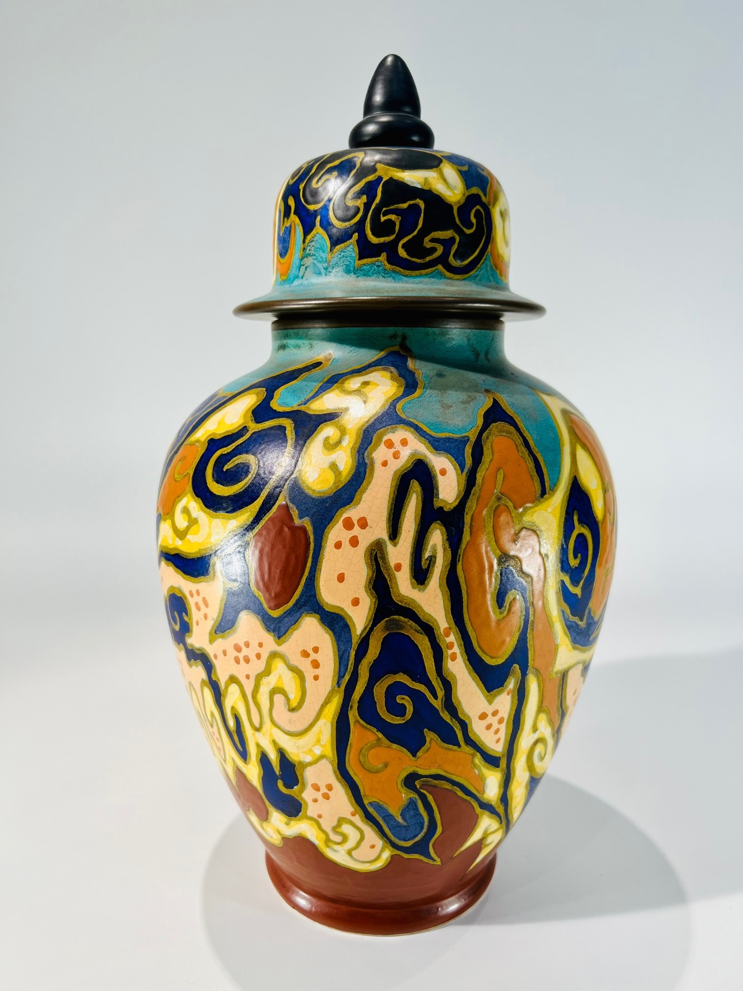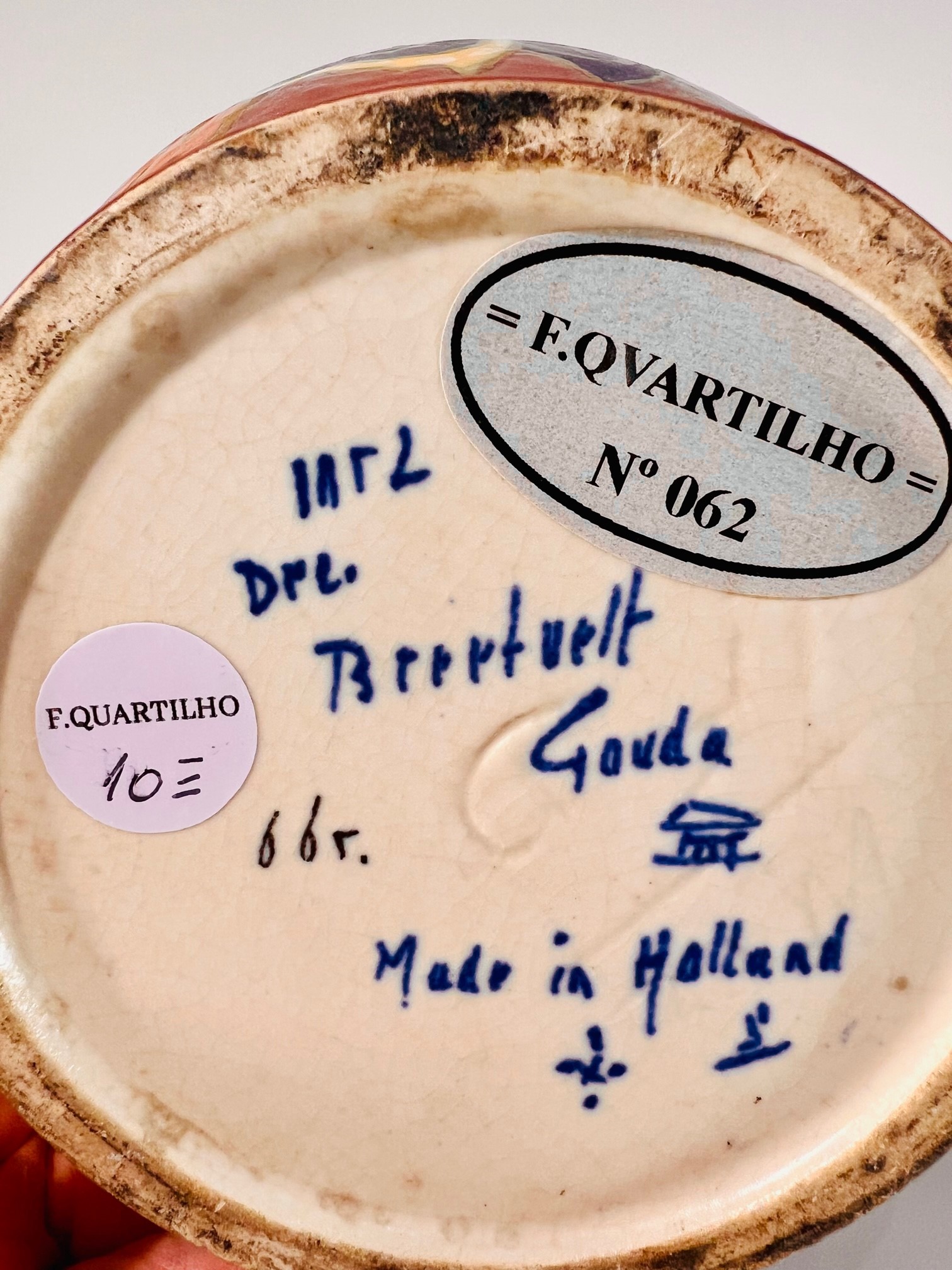 Potiche em porcelana holandesa Art Nouveau assinado, timbrado e numerado GOUDA HOLLAND circa 1900