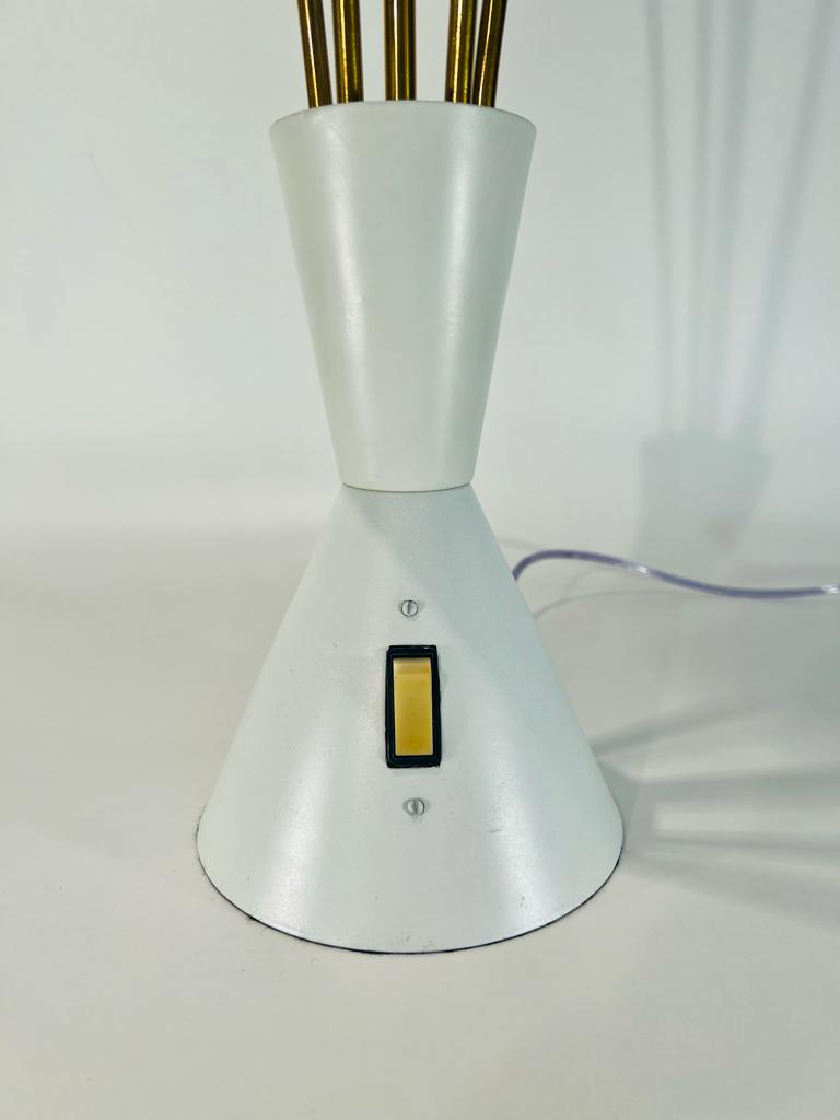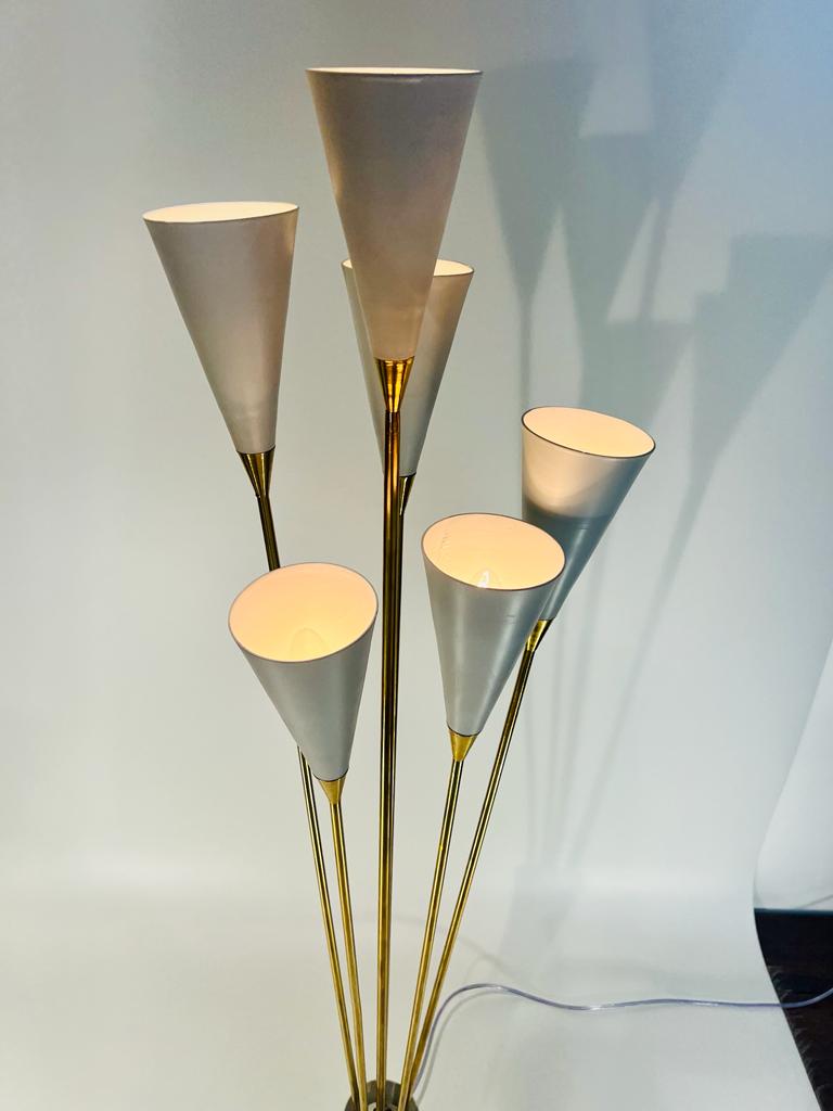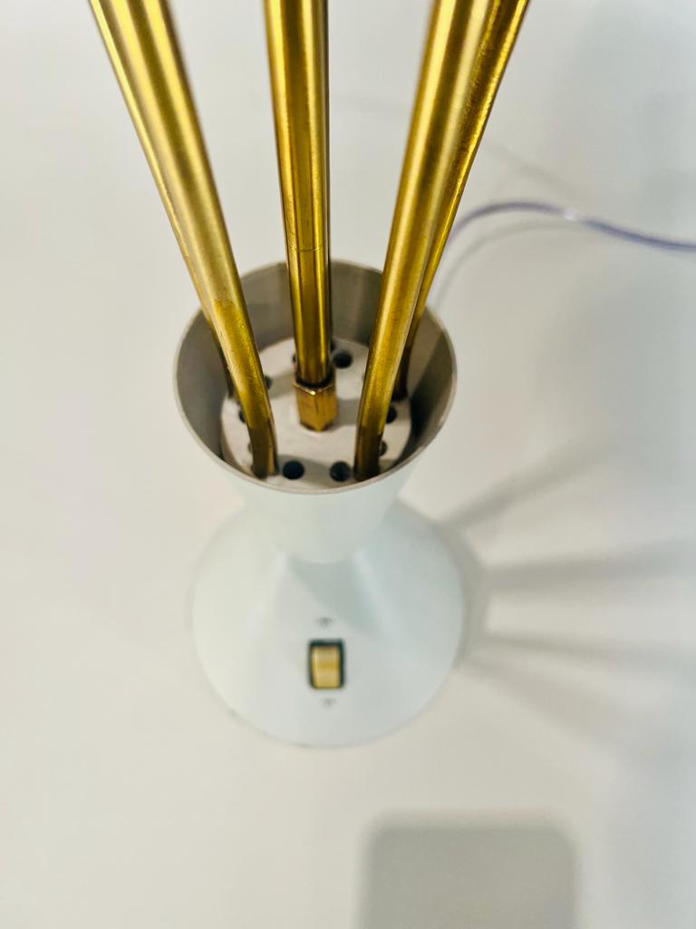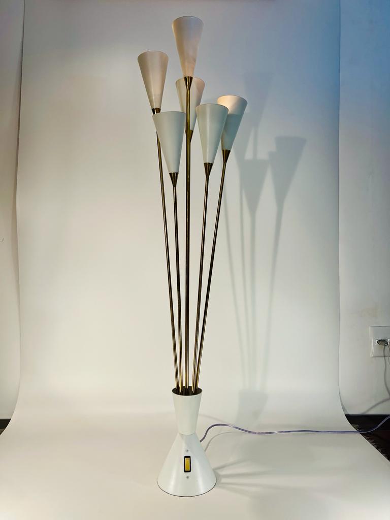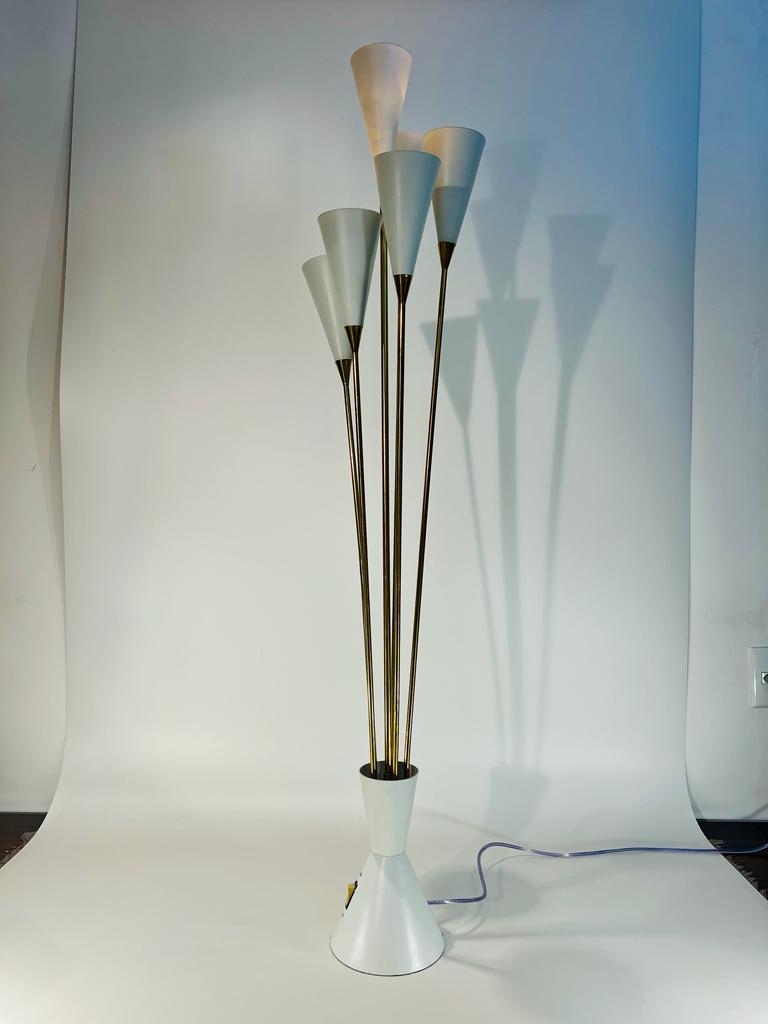 Luminária de mesa ou chão em metal dourado e pintado de branco para seis luzes. Produzida pela OCA, circa 1960.