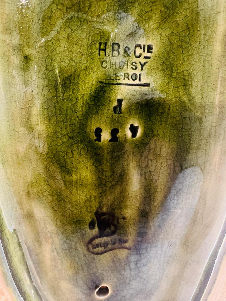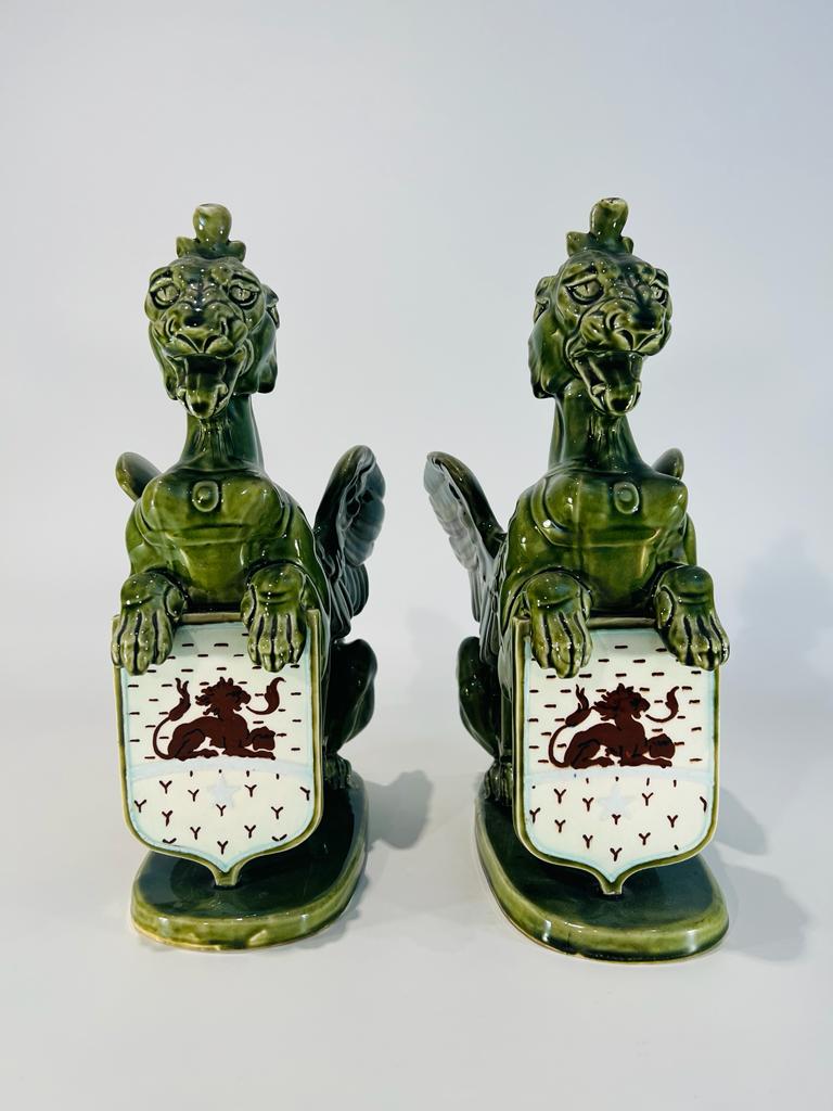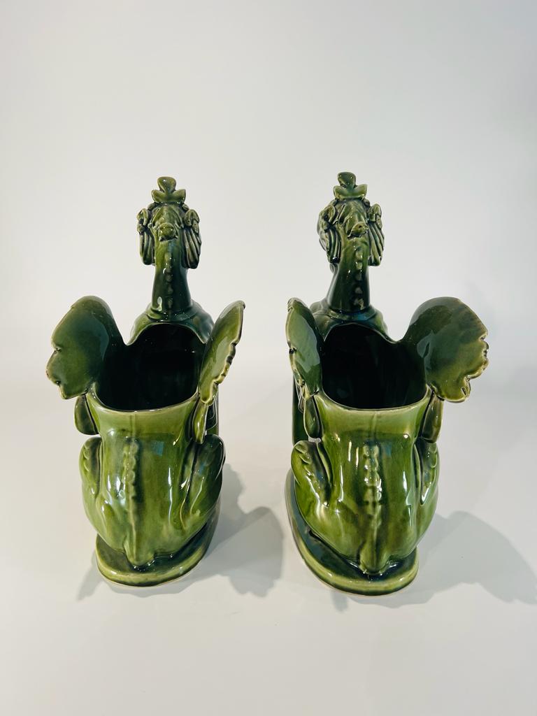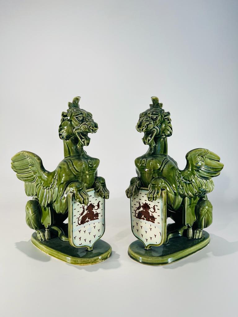 Par de floreiras em porcelana francesa assinada no fundo H.B & Cie Choisy le Roi circa 1870 representando “Quimeras aladas”