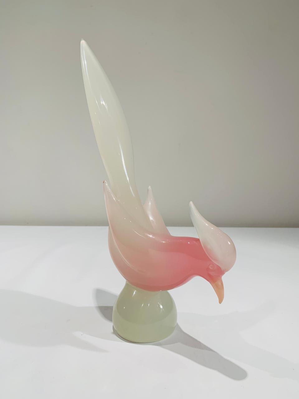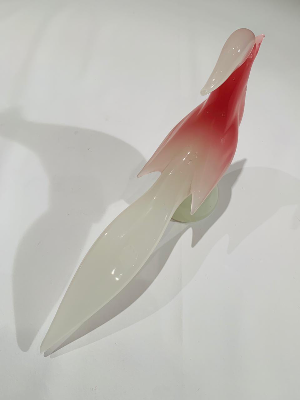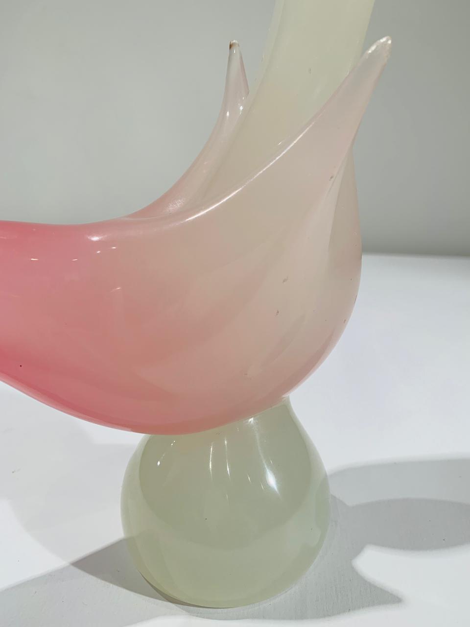 Escultura em vidro artístico soprado de Murano em “opalino” com partes aplicadas. Peça única.