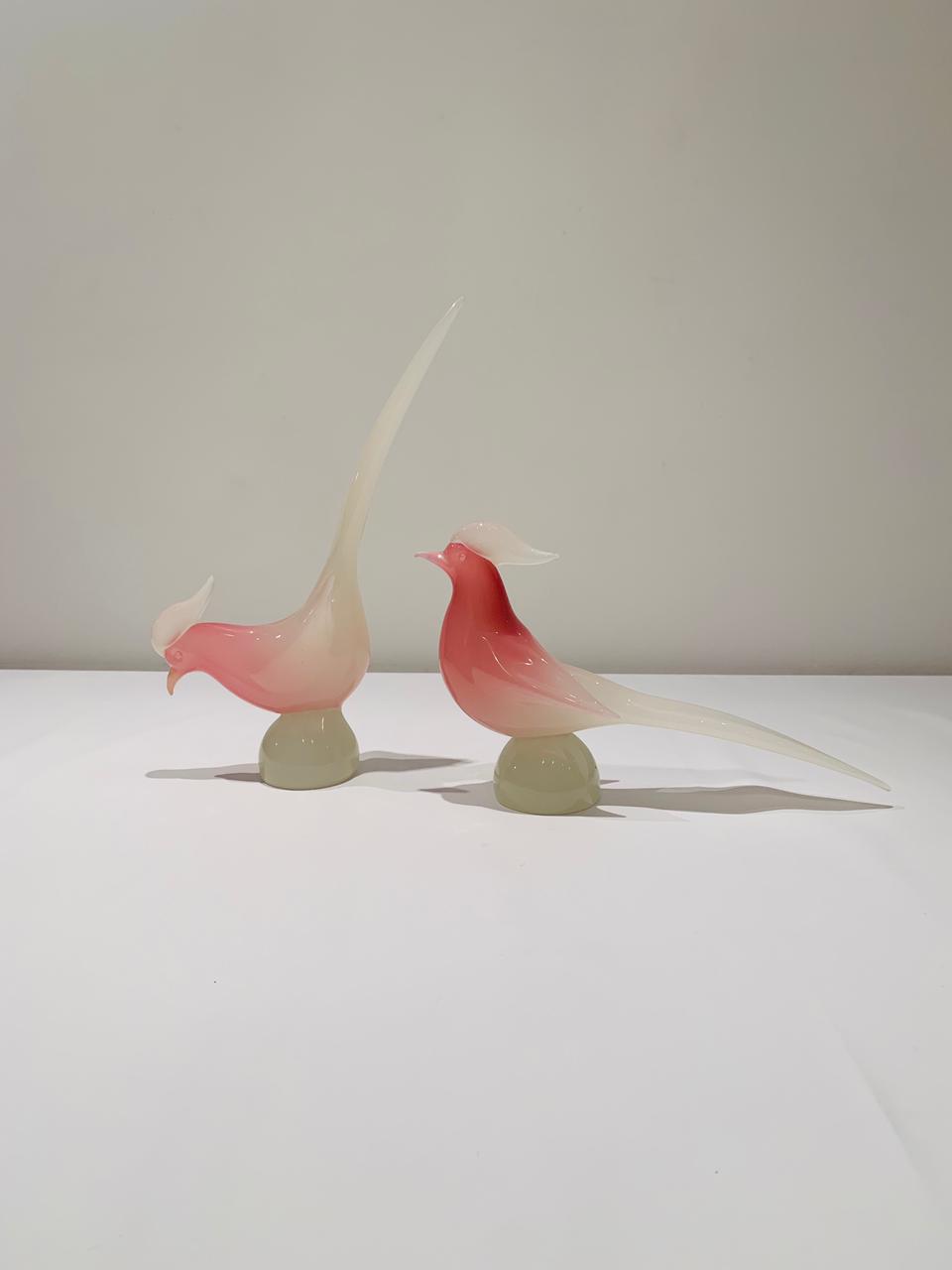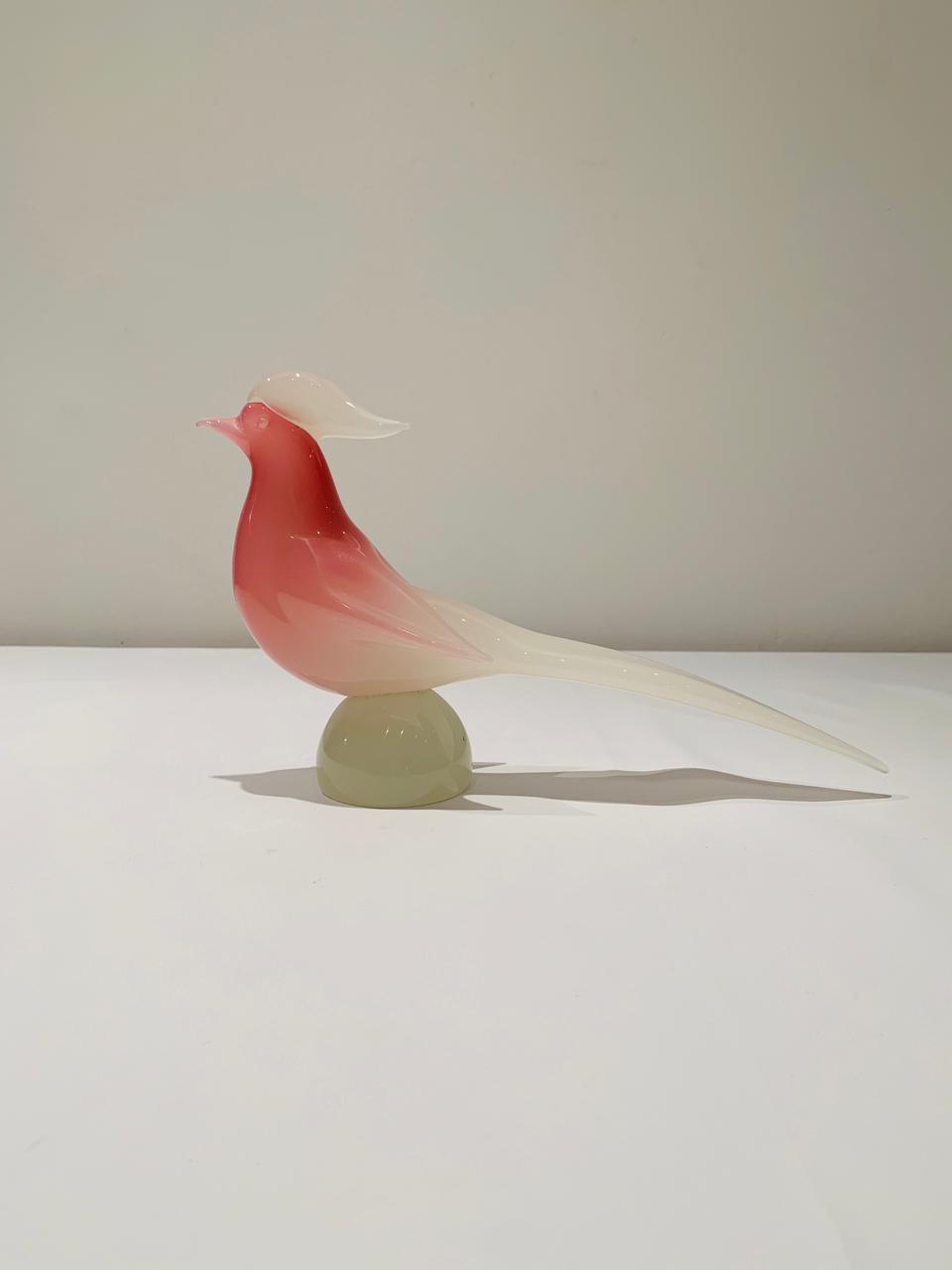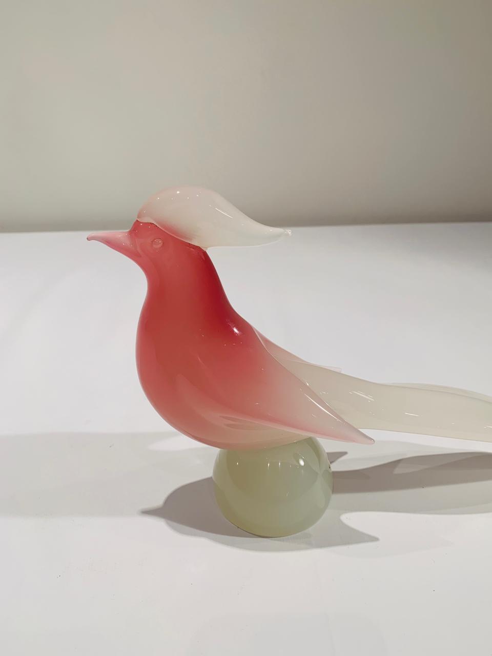 Escultura em vidro artístico soprado de Murano em “opalino” com partes aplicadas. Peça única.