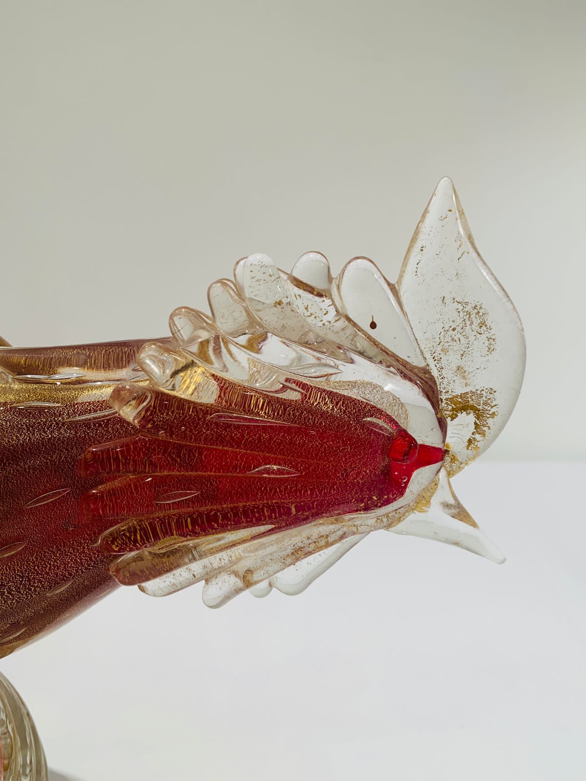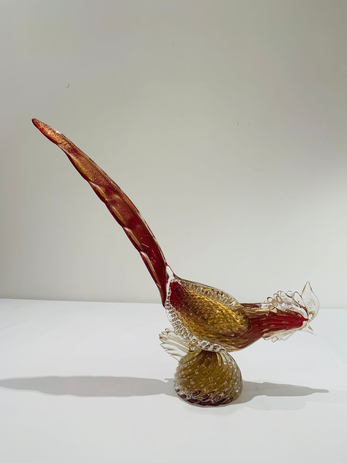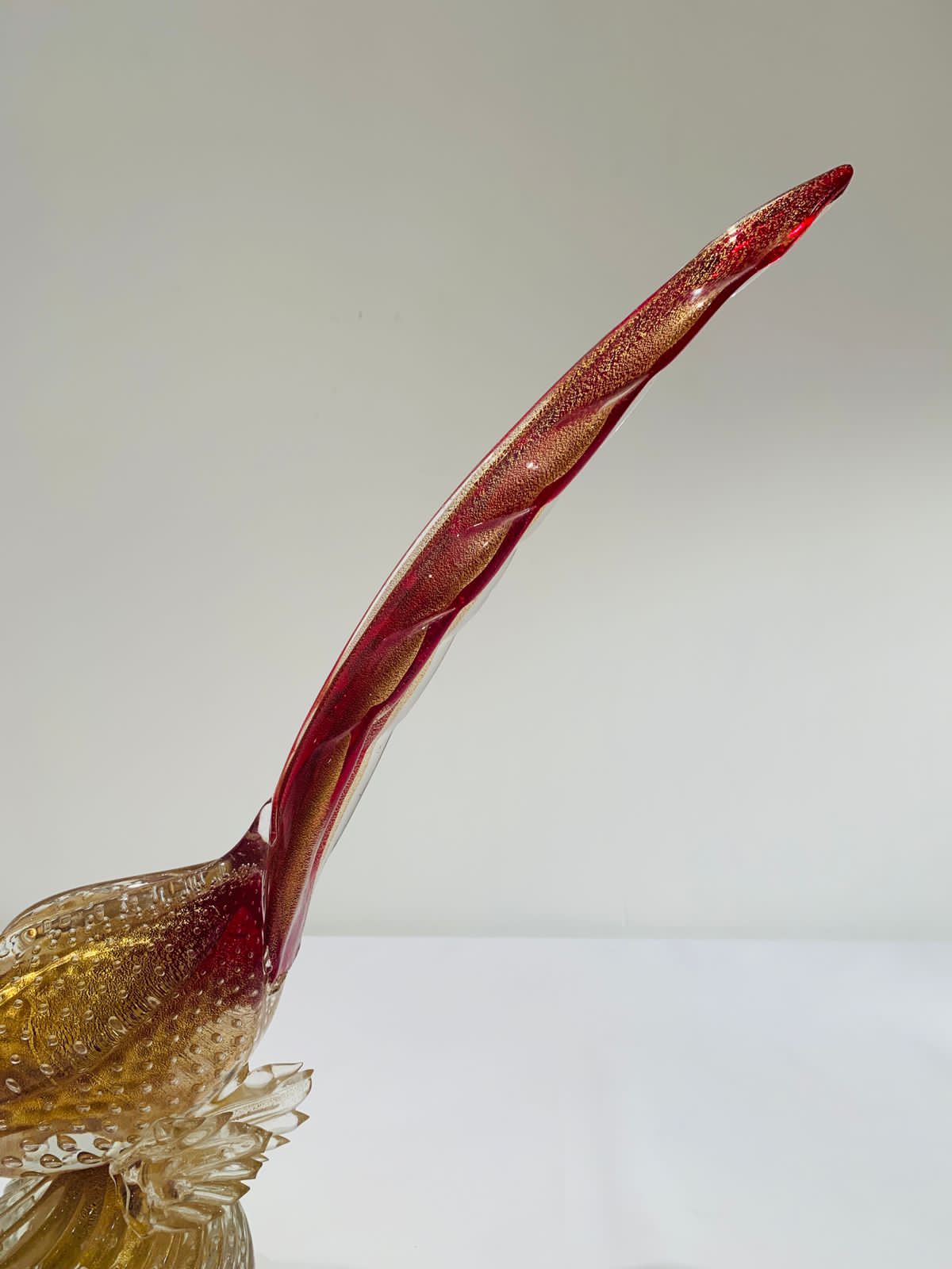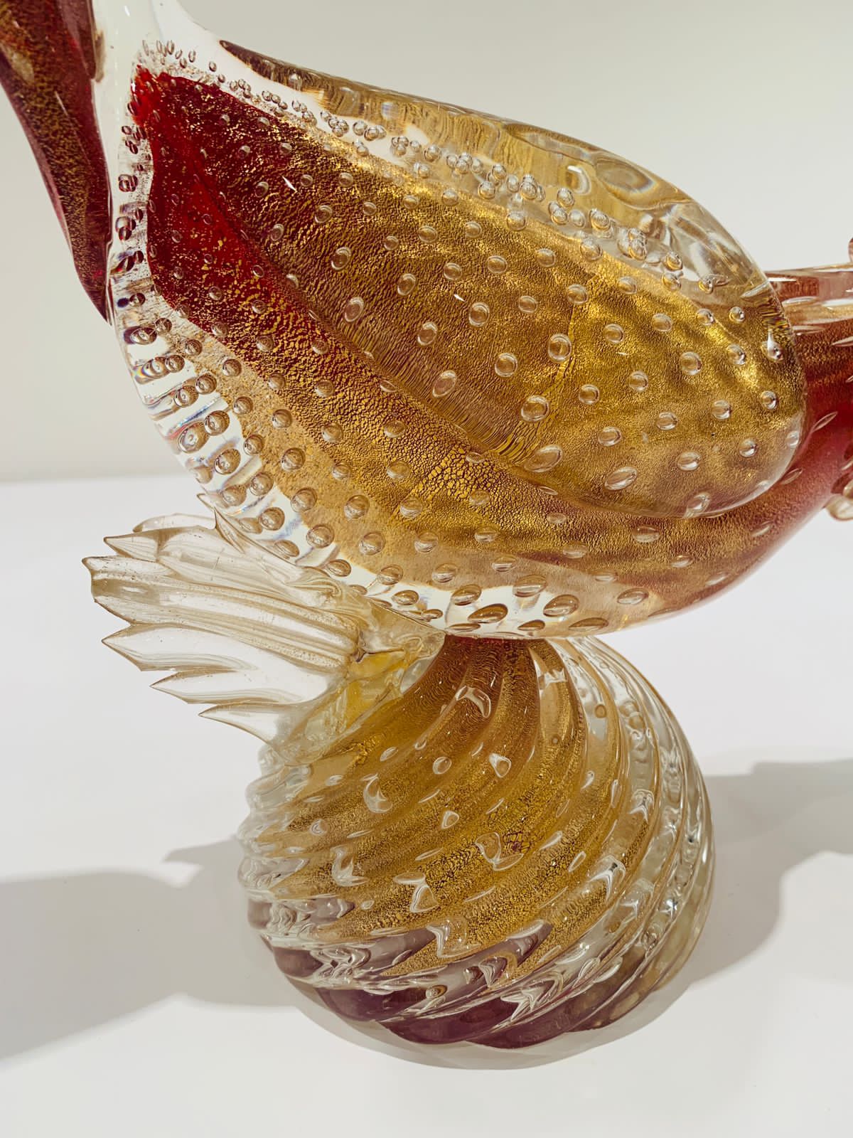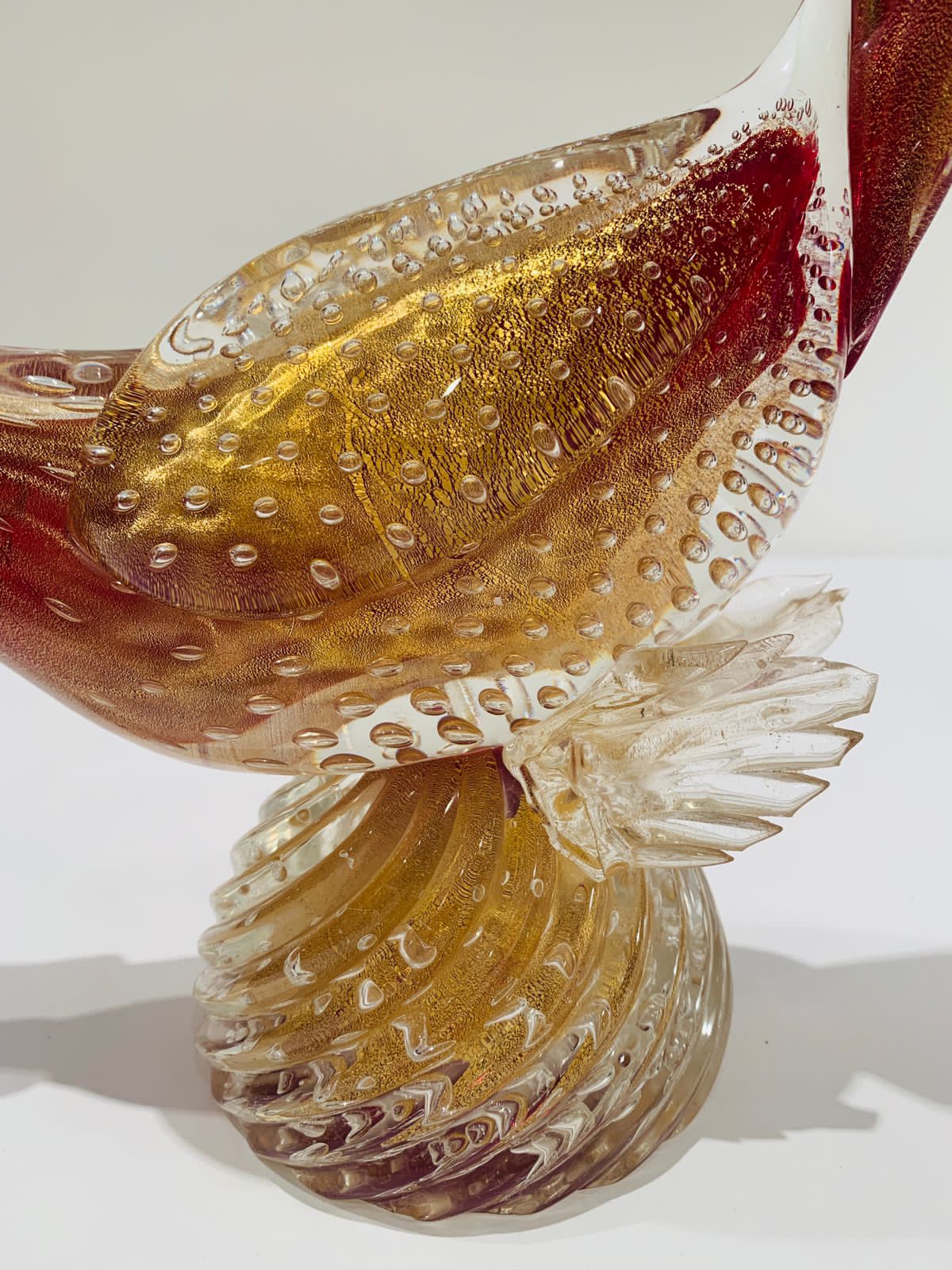 Murano Archimede Seguso 1950 escultura em vidro artístico soprado de Murano com partes aplicadas, bolhas de ar e folha de ouro. Peça única.