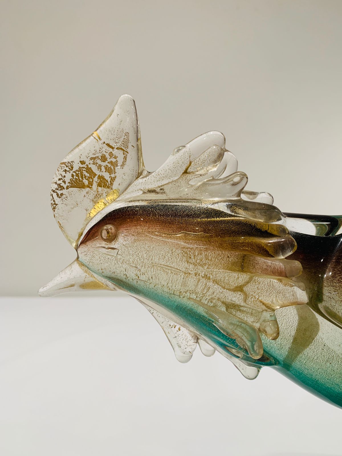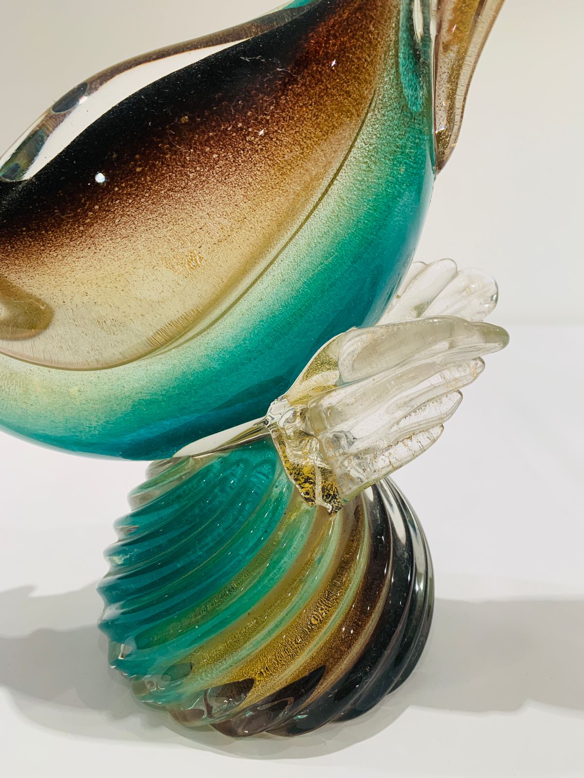 Murano Archimede Seguso 1950 escultura em vidro artístico soprado de Murano com partes aplicadas na série “sfumato oro”. Peça única.