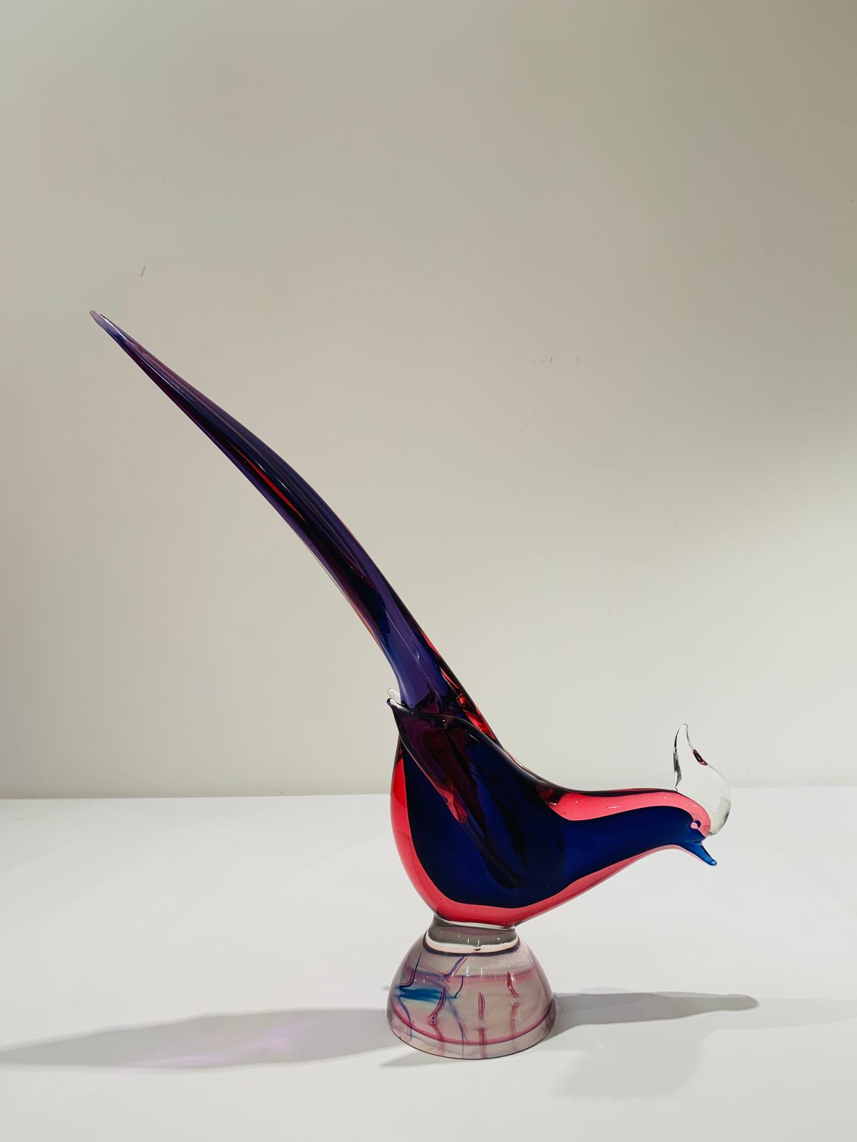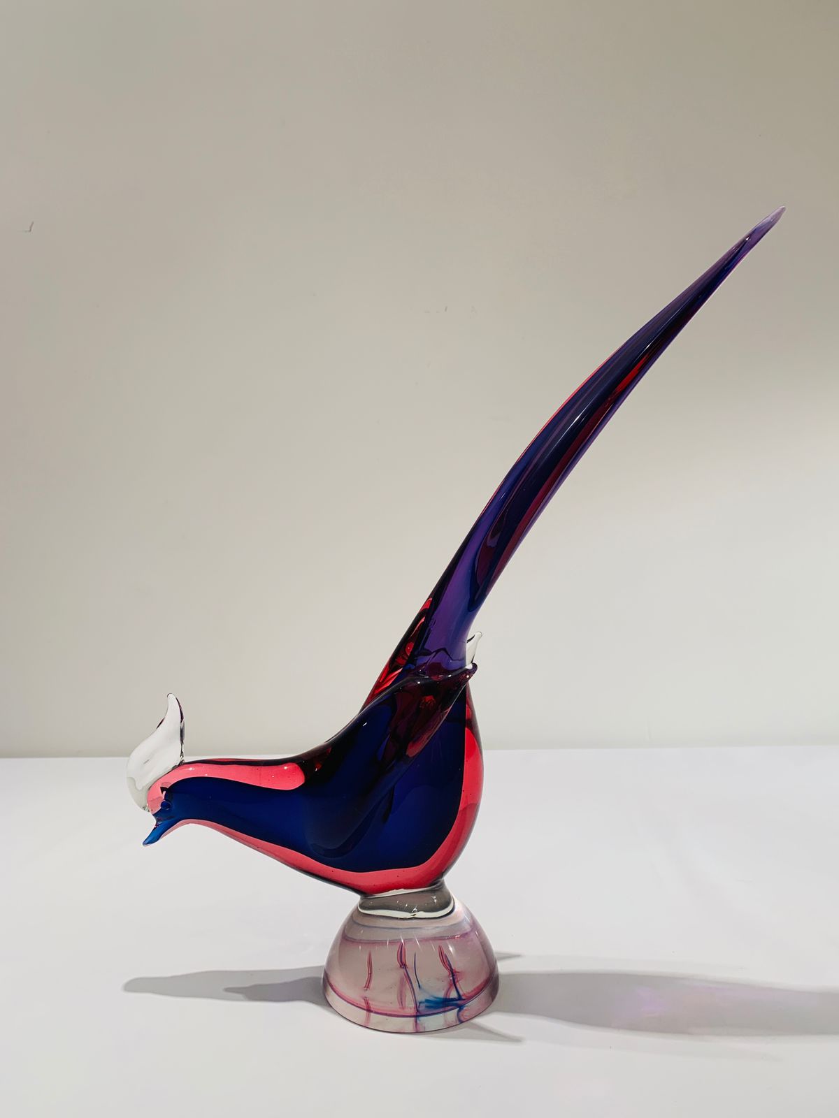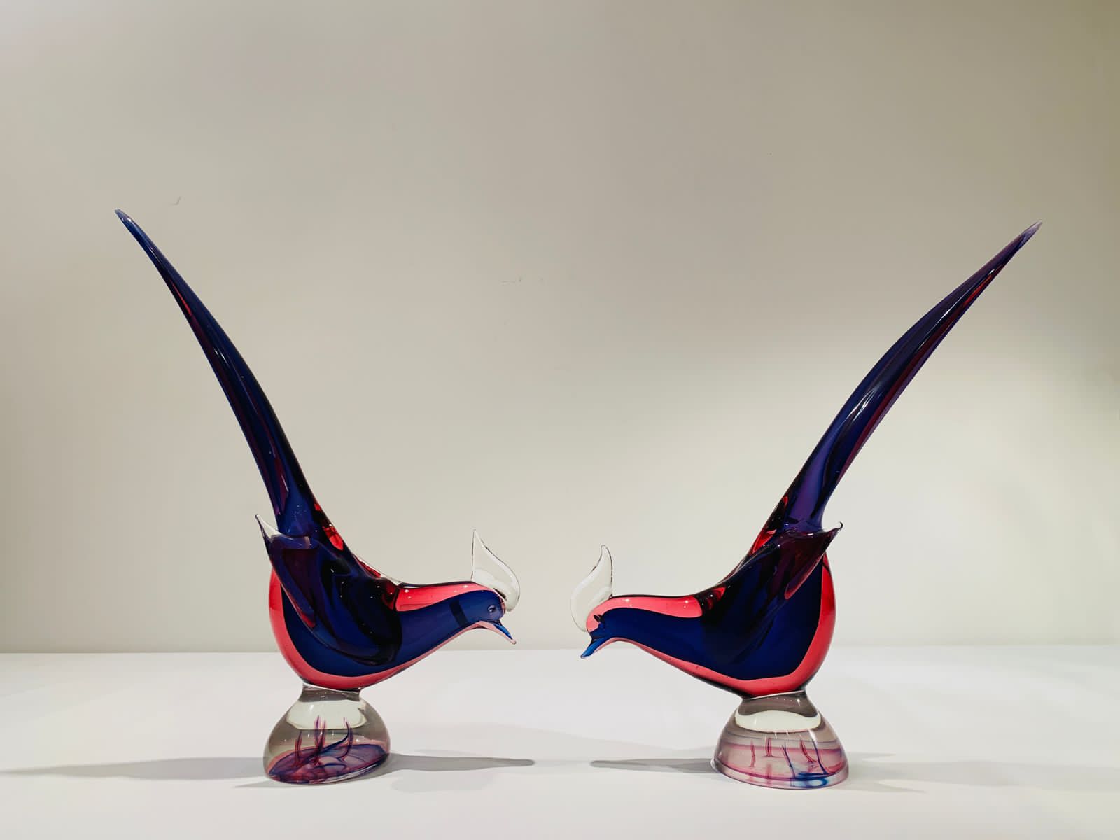 Murano Archimede Seguso 1950 escultura em vidro artístico soprado de Murano com partes aplicadas e pigmentação na série “blue rubino” possibilidade de ter o par (2). Peça única.