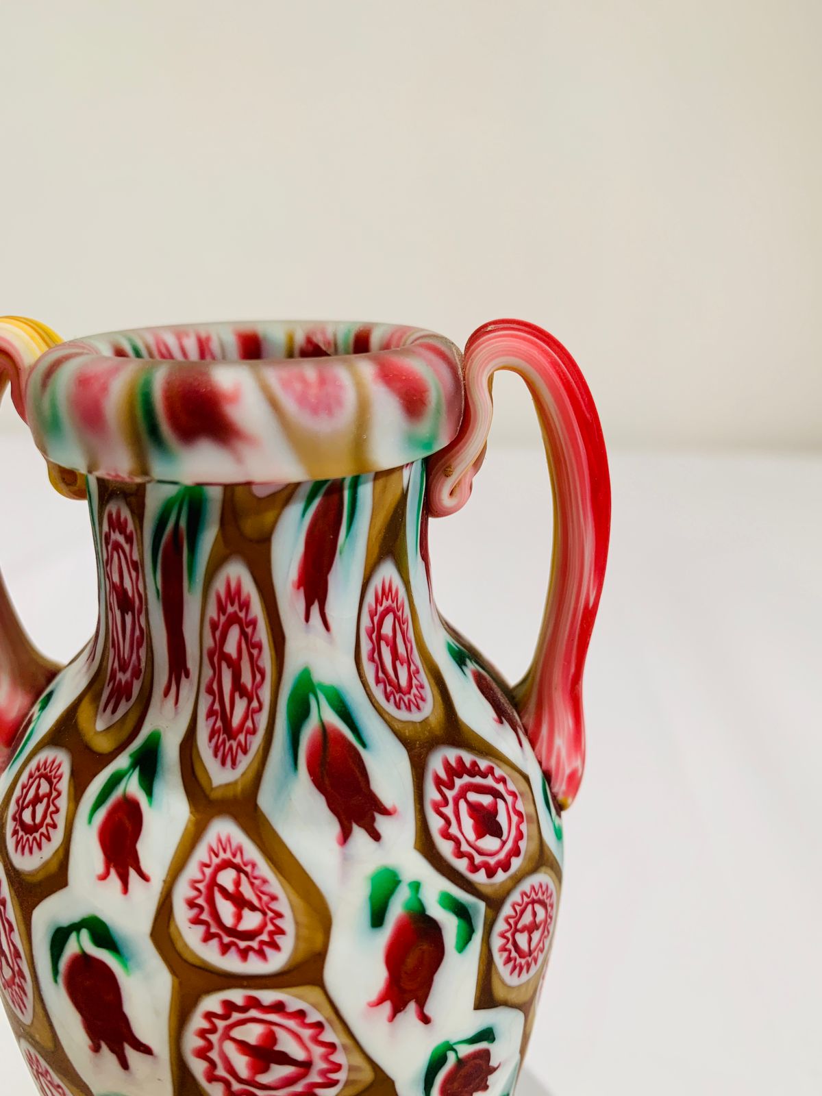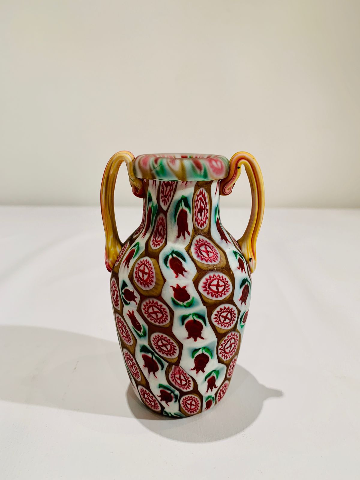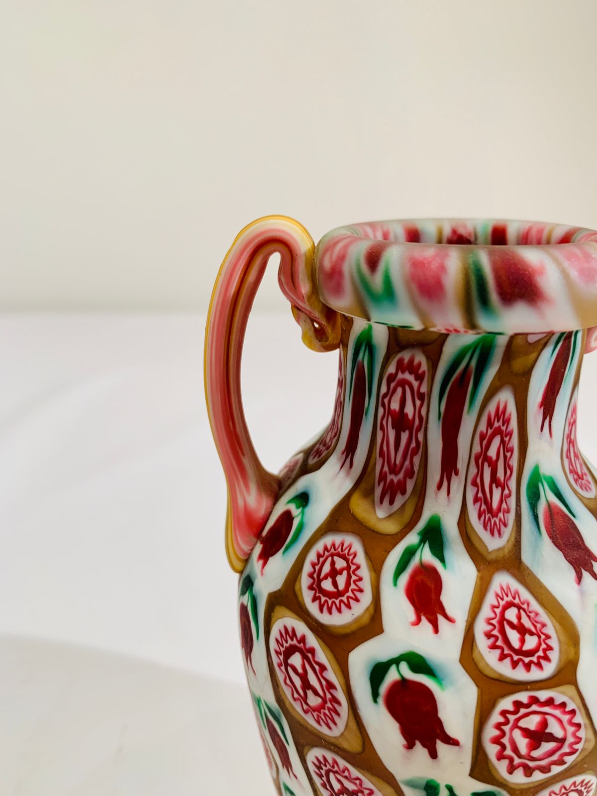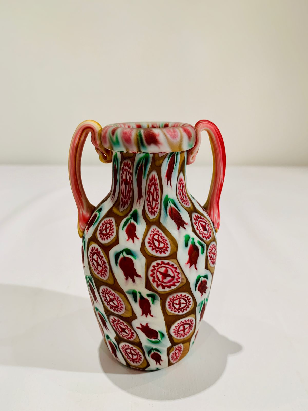 Murano FRATELLI TOSO 1930 vaso compartes aplicadas em vidro artístico soprado de Murano e técnica de “murrine”. Peça única.