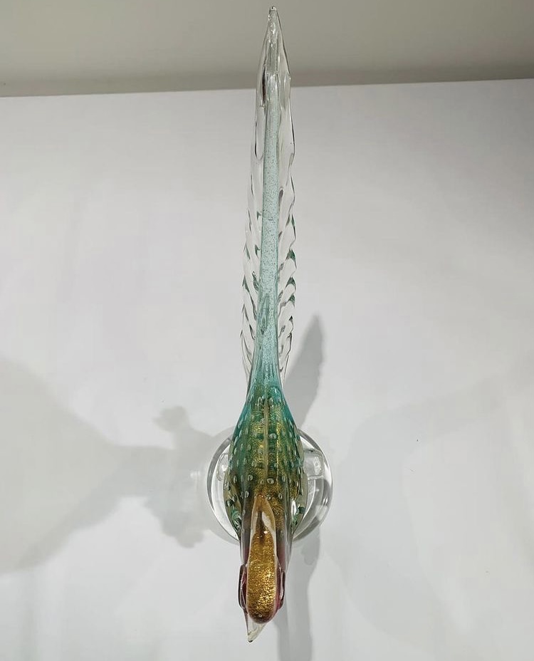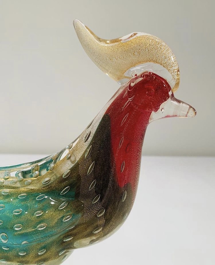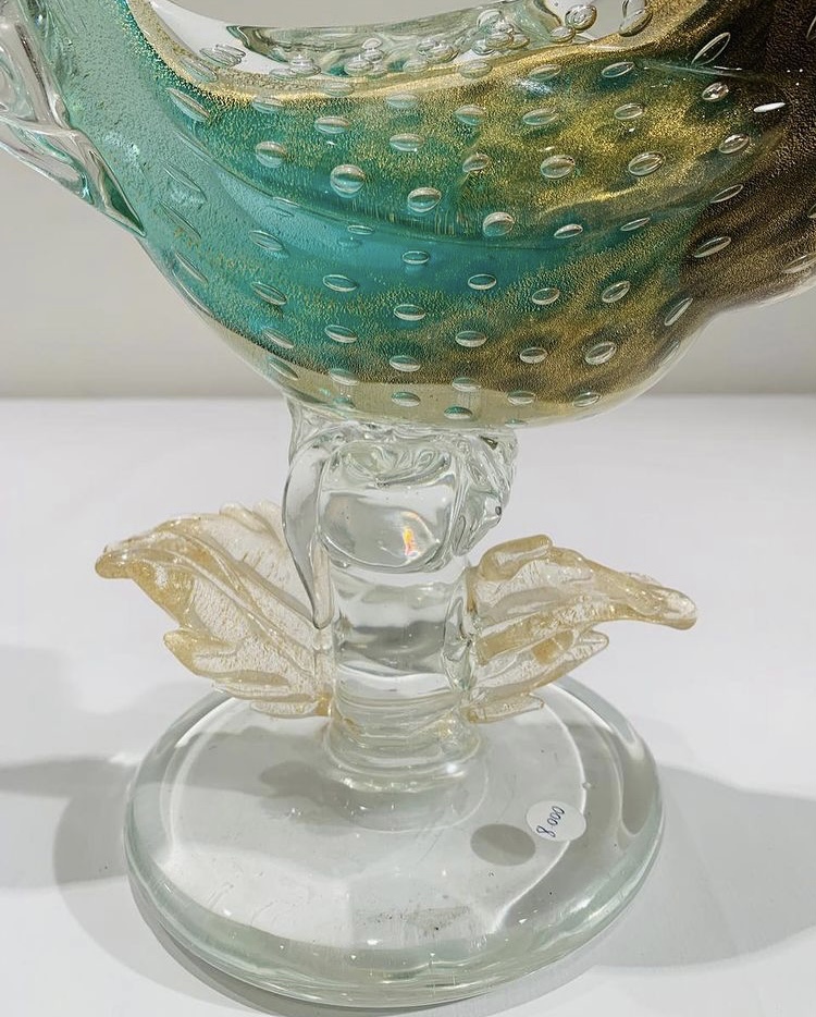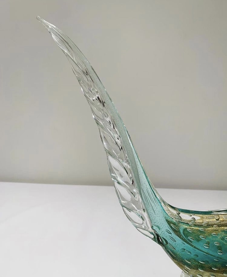 Murano Archimede Seguso 1950 escultura em vidro artístico soprado de Murano com partes aplicadas, bolhas de ar e folha de ouro. Peça única.