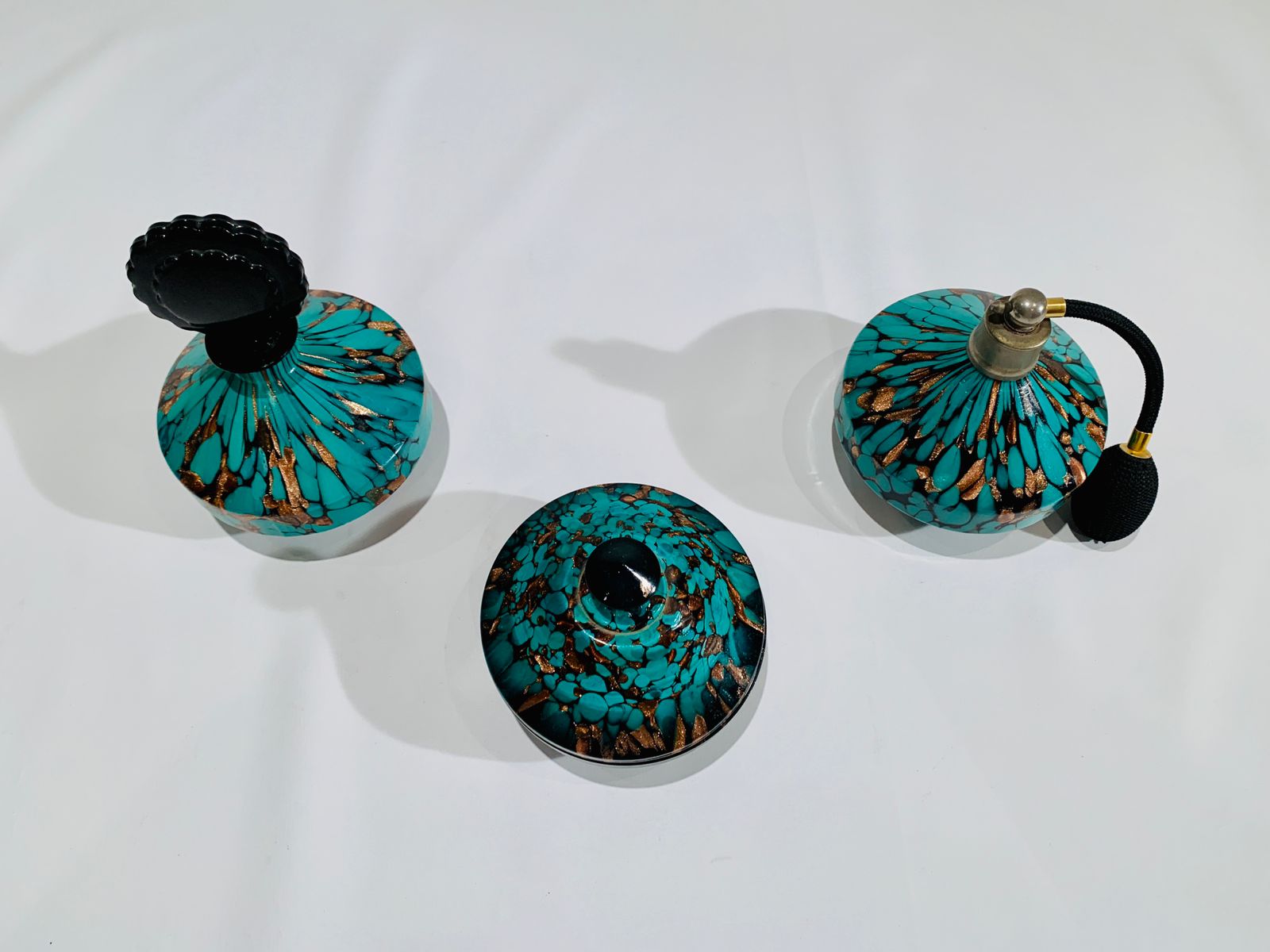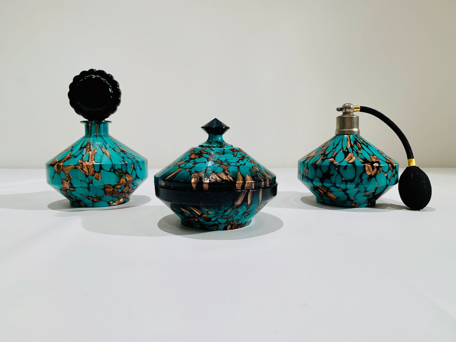Murano Dino Martens 1950 por Fratelli Toso prensado e moldado conjunto de três peças tocador em vidro artístico soprado de Murano.