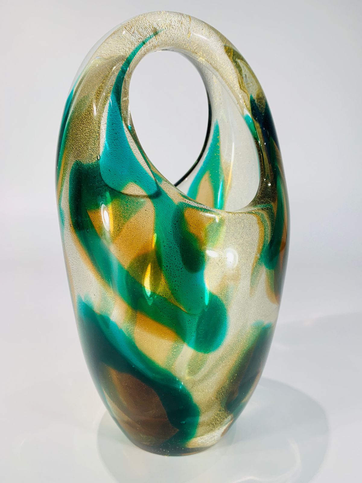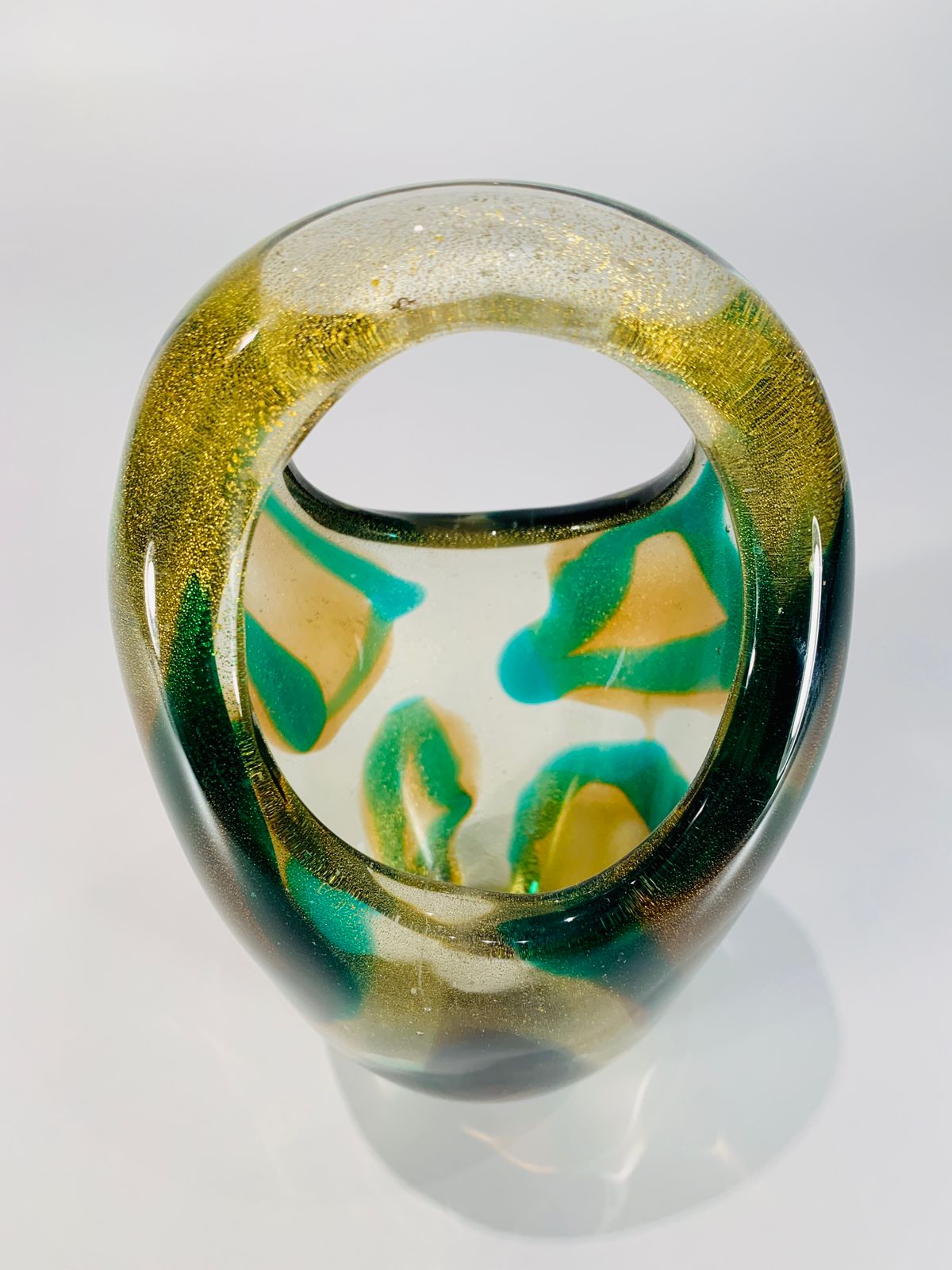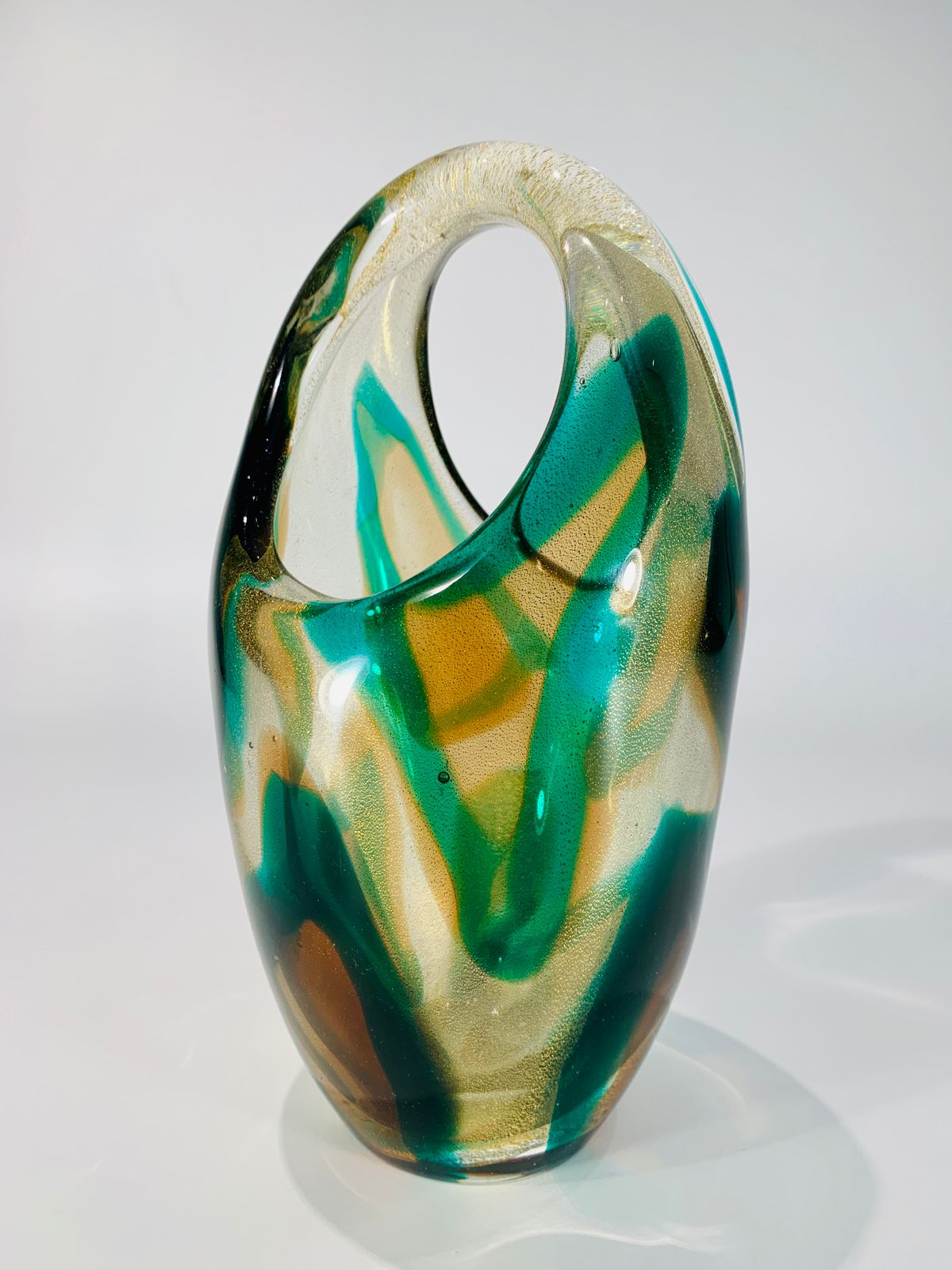 Murano ARCHIMEDE SEGUSO 1952 vaso “macchia ambra verde”. Peça única