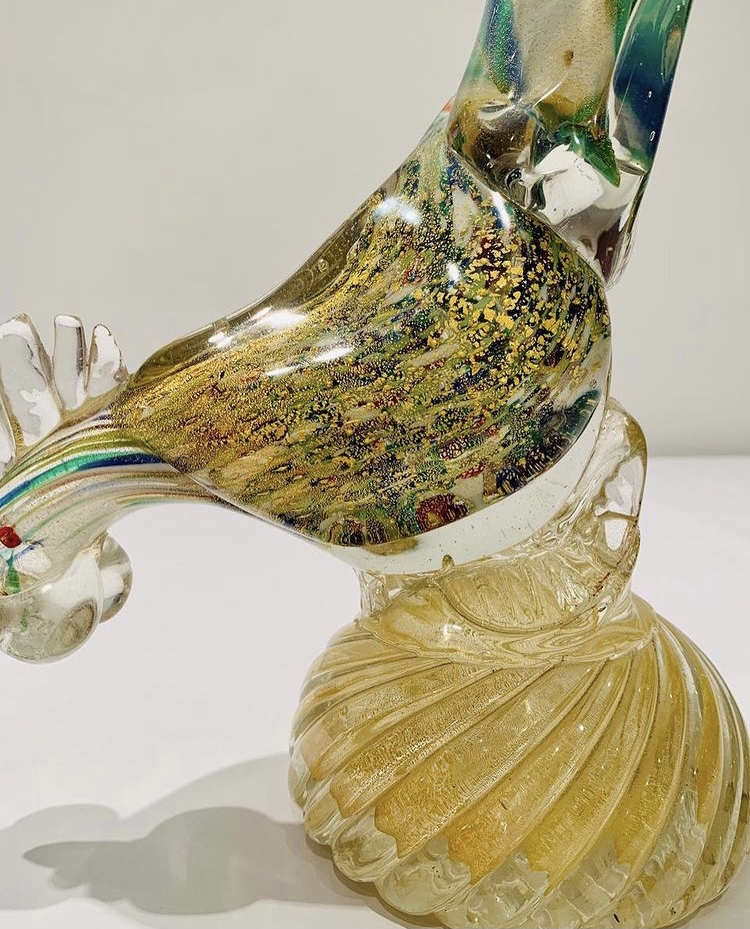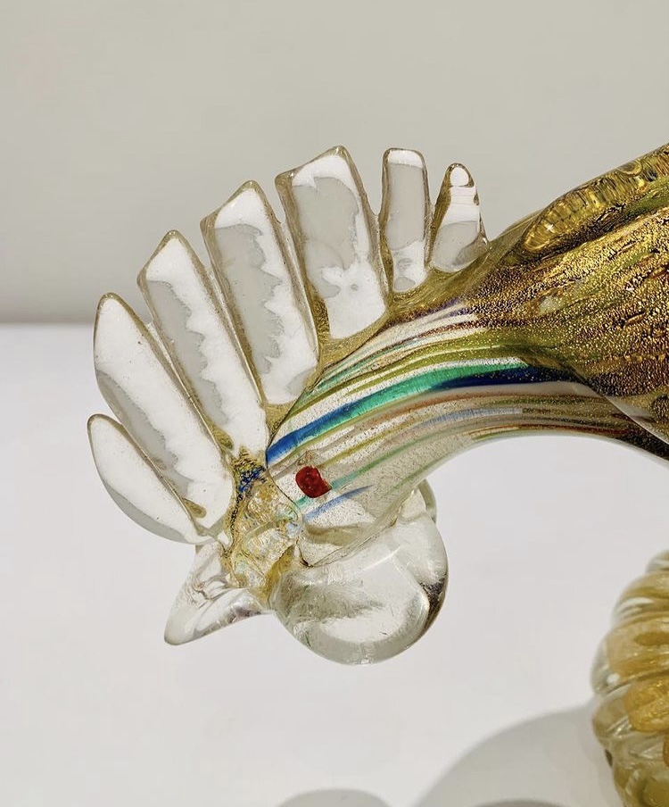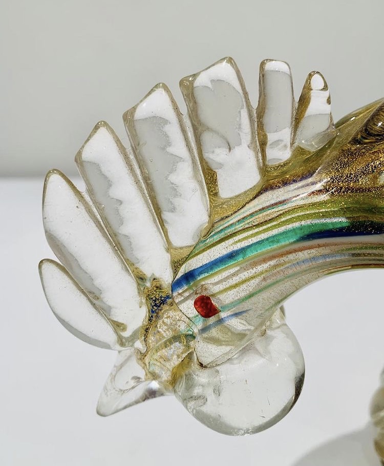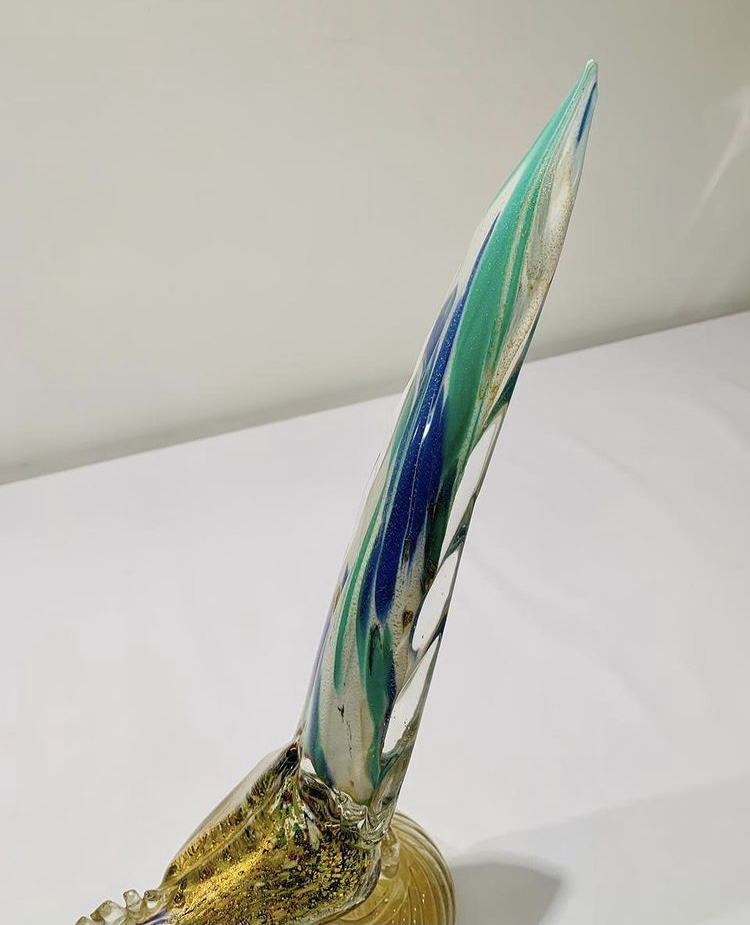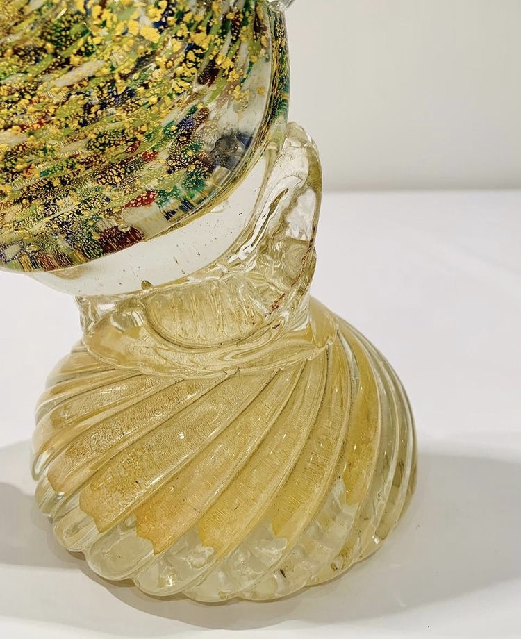 Murano A.BARBINI 1950 Escultura em vidro artístico soprado de Murano com partes aplicadas, bolhas de ar e folha de ouro. Peça única.